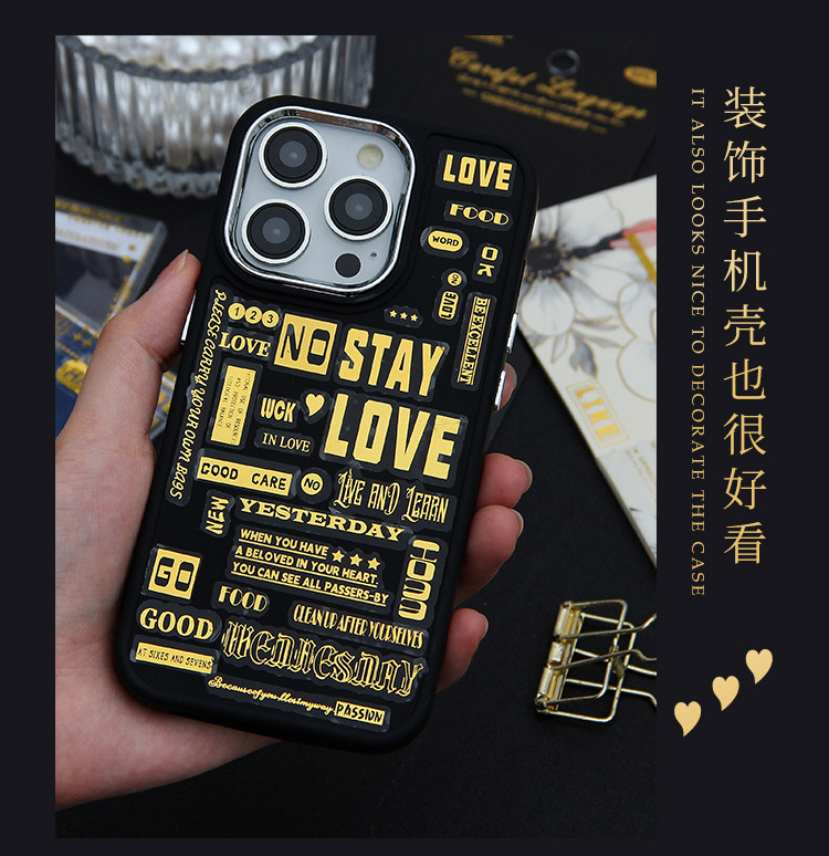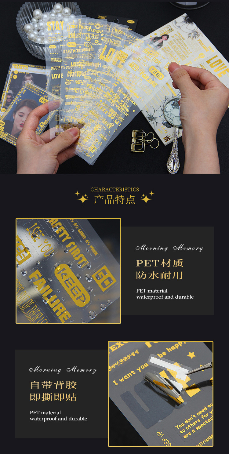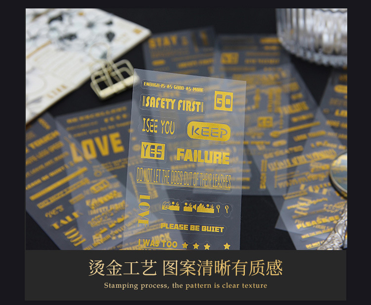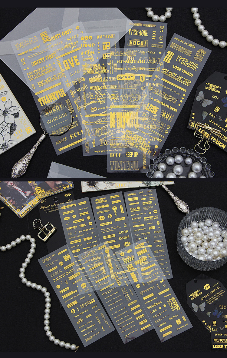 레트로 도금 영어 문구 손 계정 스티커 PET 자체 접착 방수 장식 손 계정 DIY 휴대 전화 케이스 소재 스티커