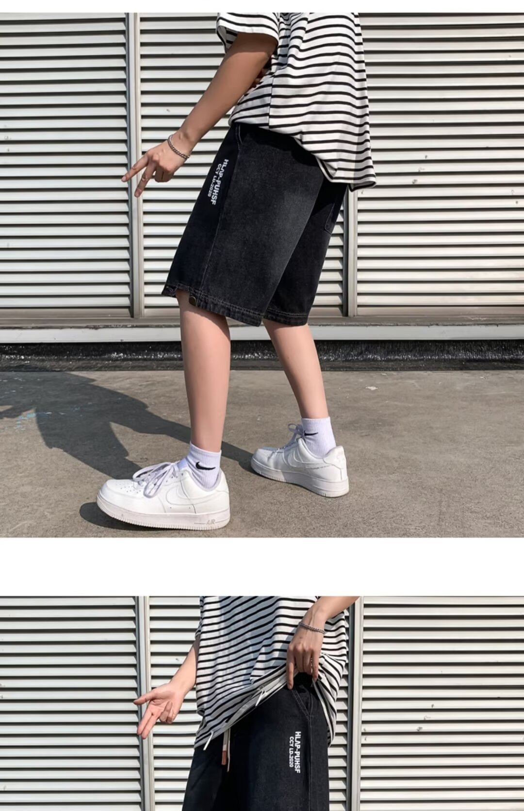 디자인 센스 데님 반바지 남성 여름 얇은 올매치 트렌디 브랜드 느슨한 대형 바지 하이 스트리트 캐주얼 아우터 바지스토어 가기