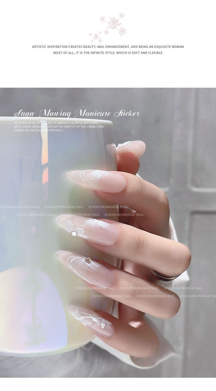 2024 눈 깎기 손으로 그린 흰 꽃 네일 아트 스티커 슈퍼 요정 목련 꽃 얇은 단단한 접착제 꽃잎 갑옷 무료 배송스토어 가기