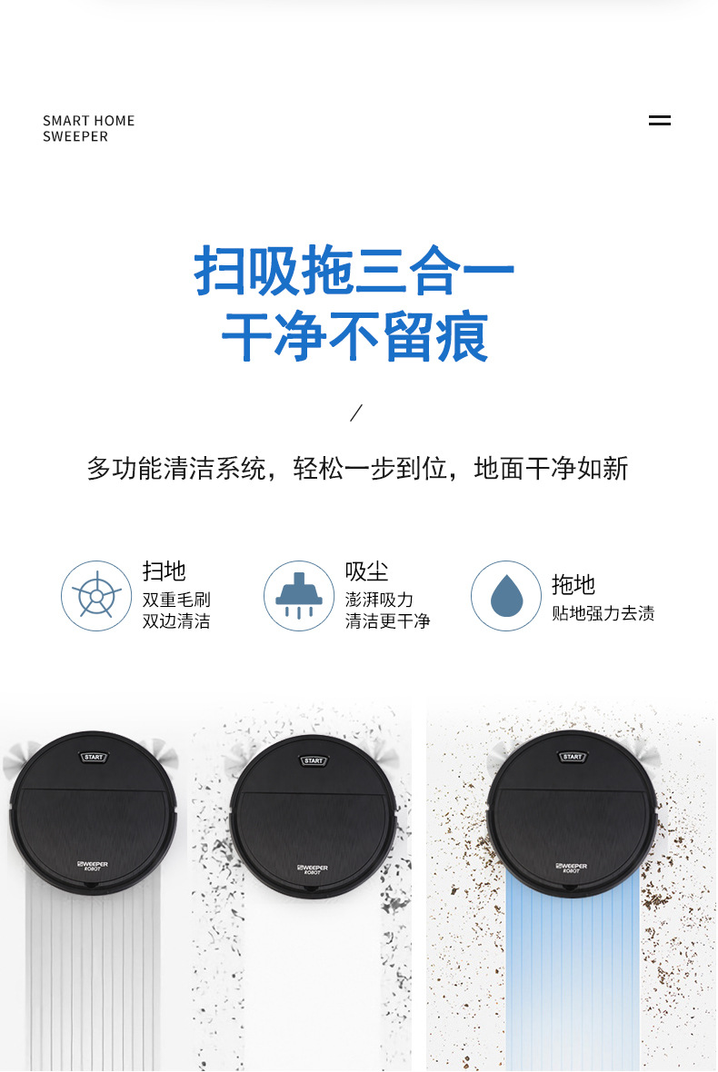 국경 간 지능형 스위핑 로봇 홈 사용 3 대 1 스위핑 흡입 클리너 USB 충전 대형 흡입 스위퍼스토어 가기