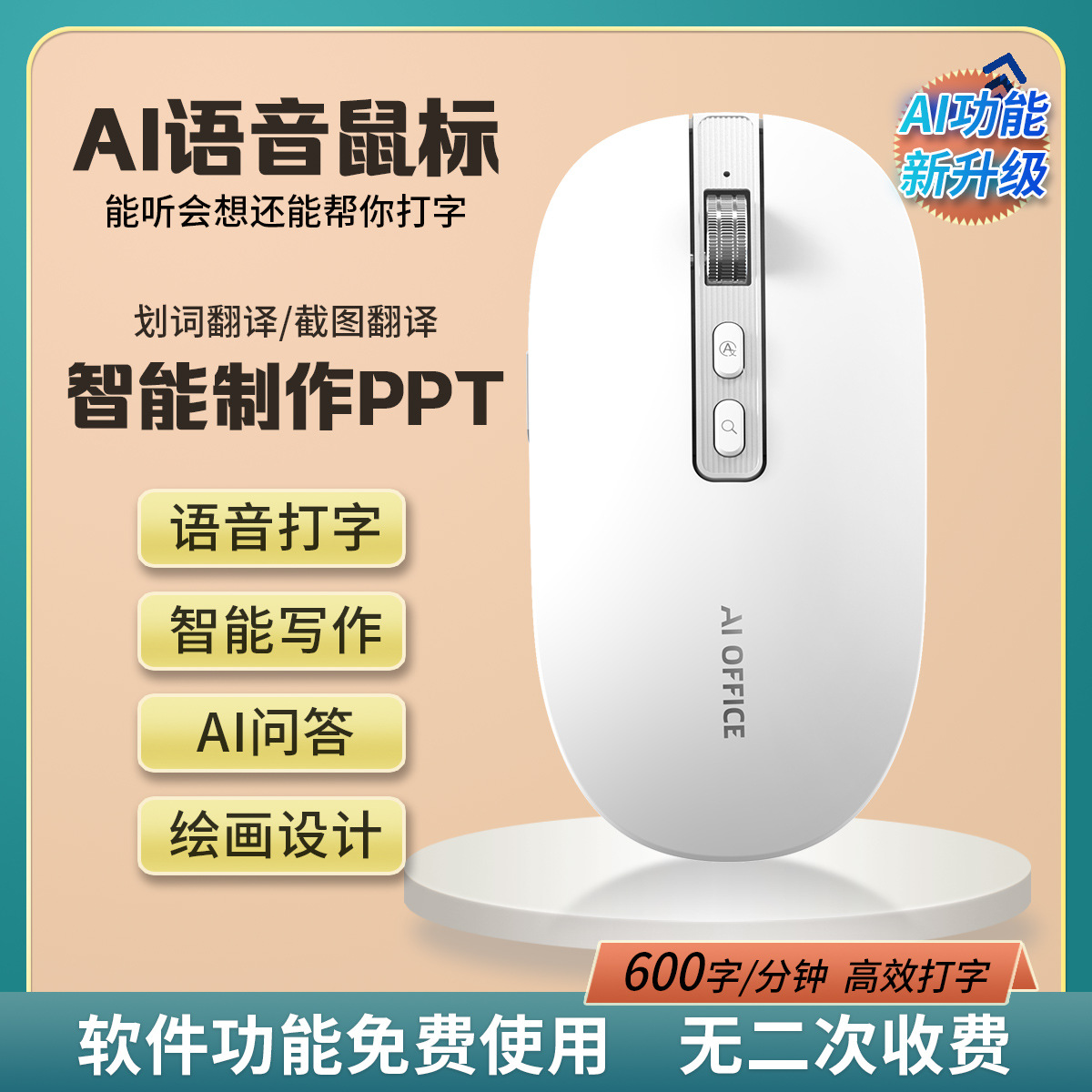AI 스마트 음성 마우스 MR09 무선 블루투스 충전 듀얼 모드 마우스 범용 번역 타이핑 쓰기 다국어스토어 가기