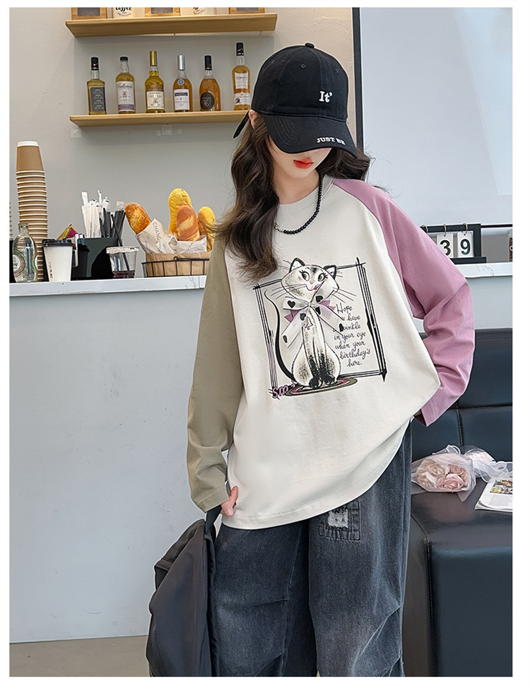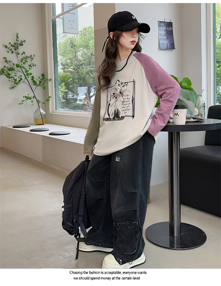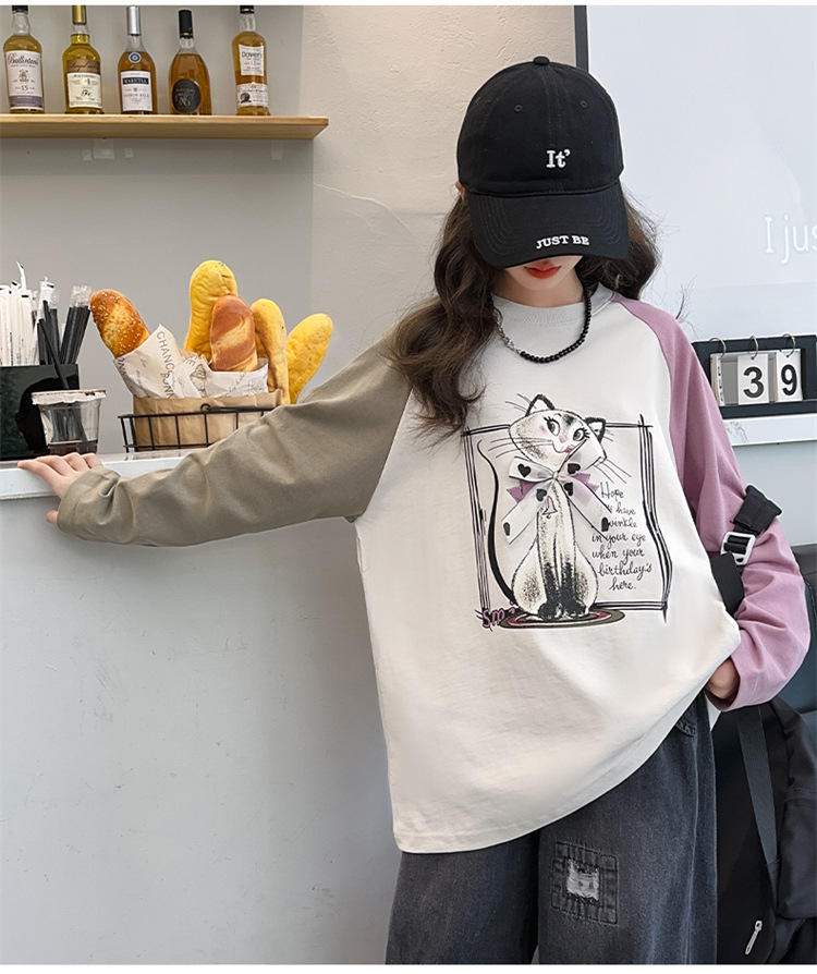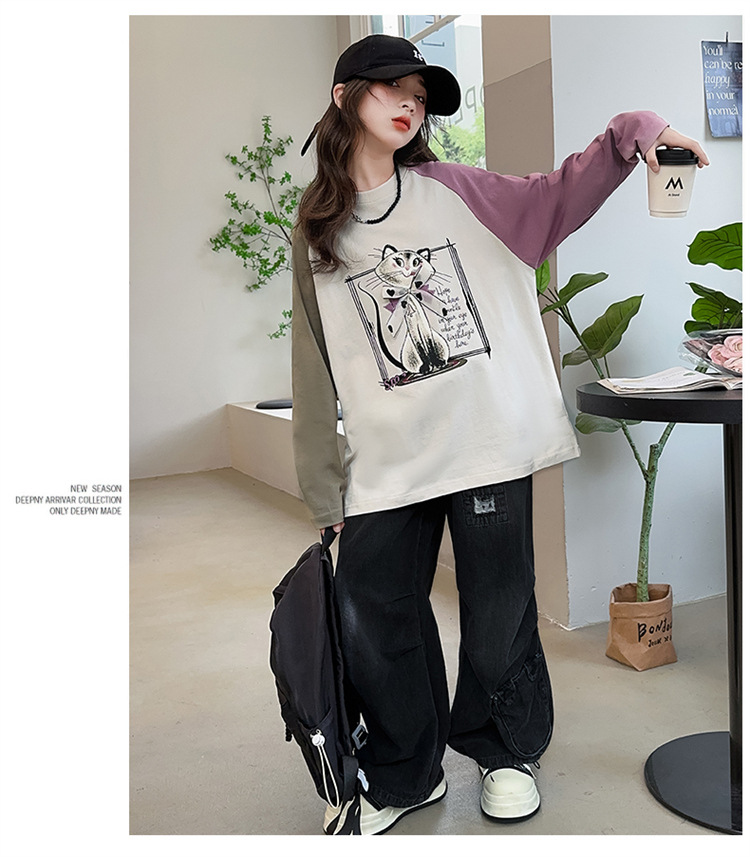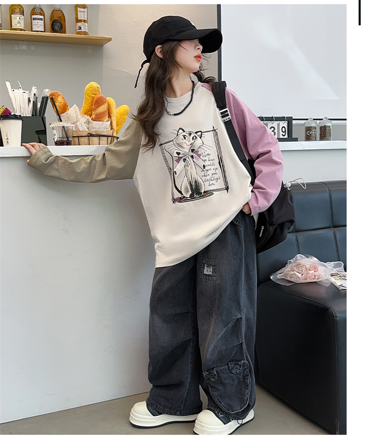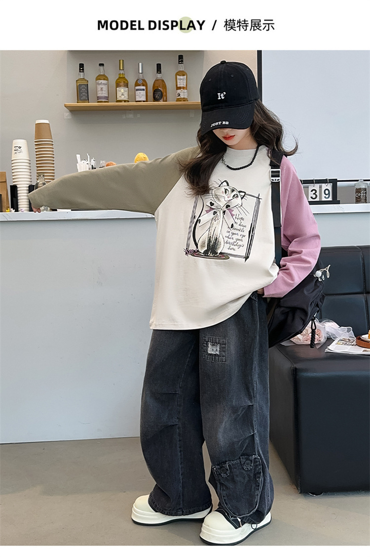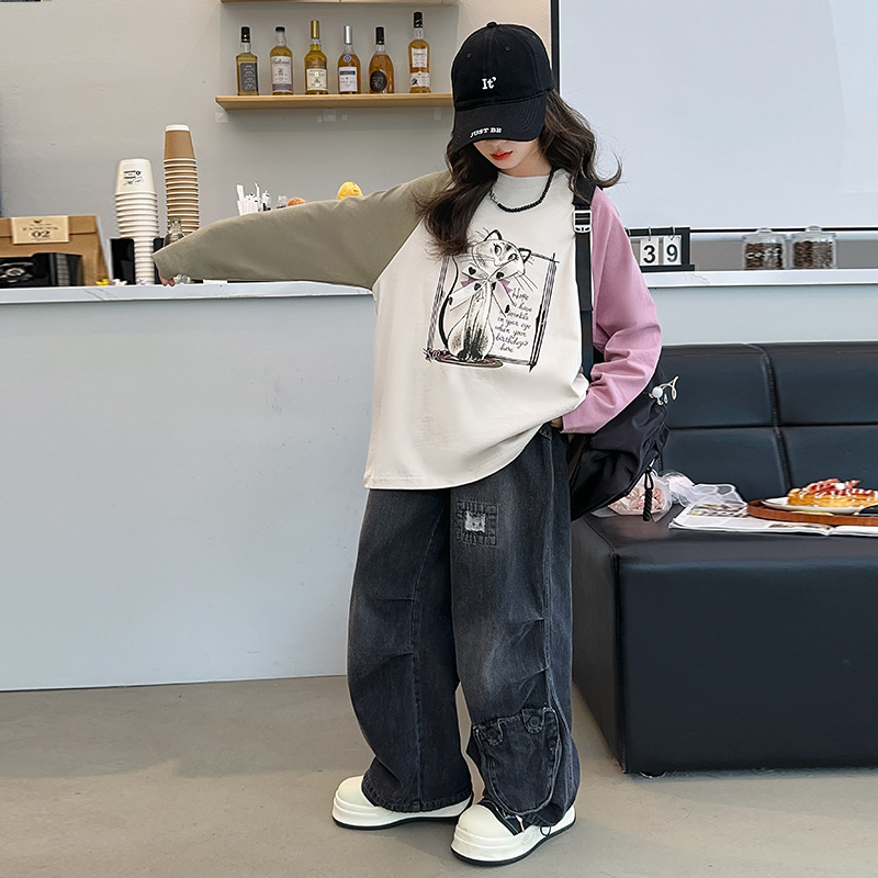 소녀의 봄과 가을베이스 셔츠 2024 새로운 세련된 어린이 패션 트렌디 화려한 컬러 애니메이션 프린트 투피스 세트스토어 가기