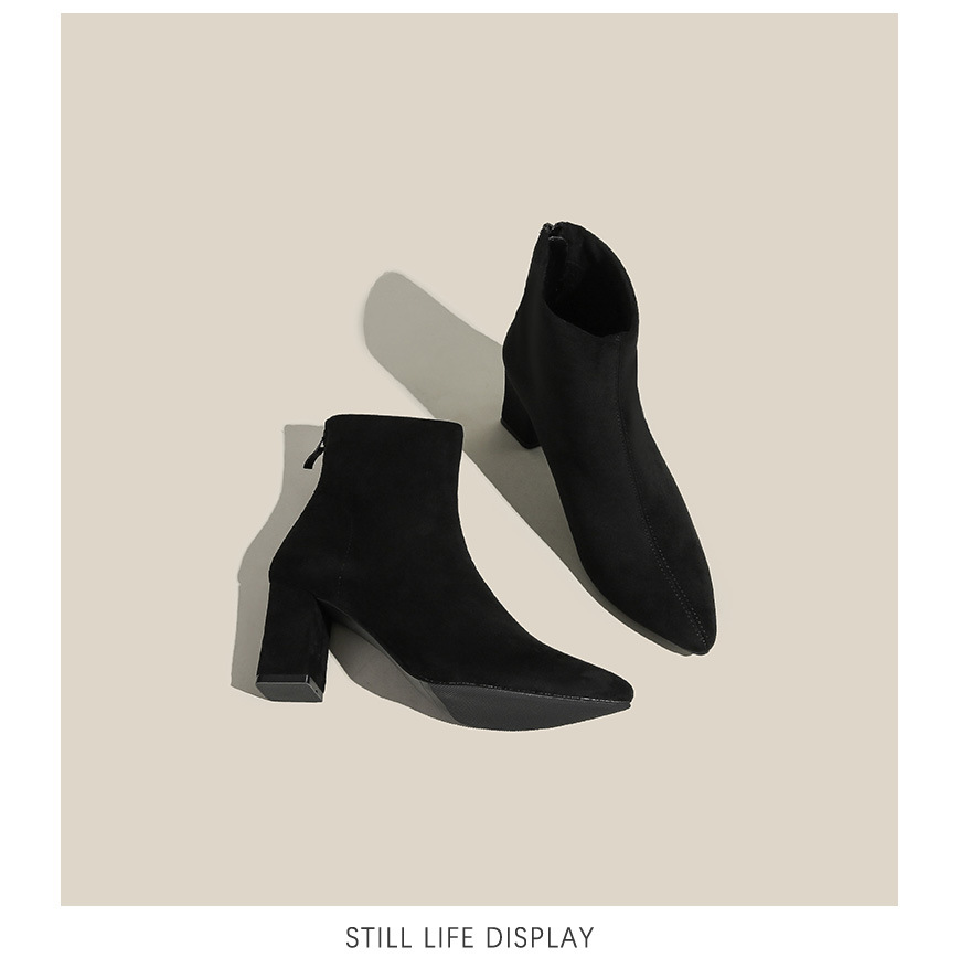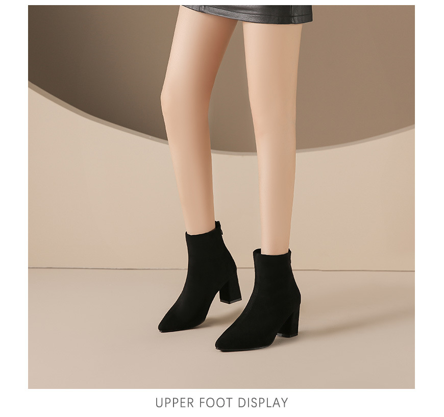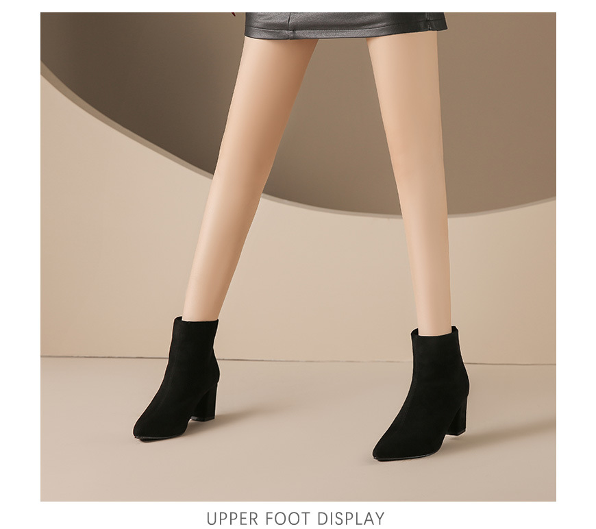 2024 새로운 뾰족한 두꺼운 힐 하이힐 플러스 사이즈 발목 부츠 알몸 부츠 싱글 부츠 통근 따뜻한 올 매치 겨울 와이드 팻 피트스토어 가기