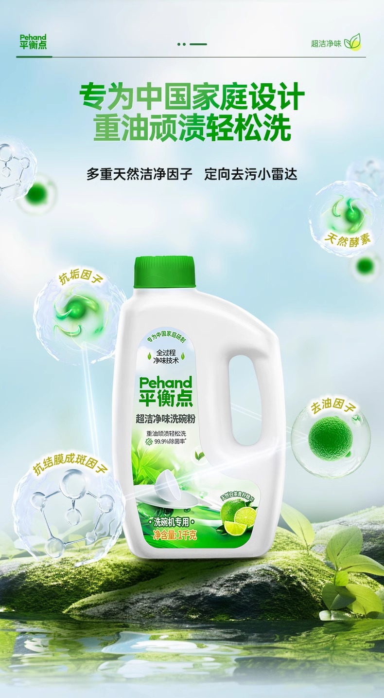 Libai 밸런스 포인트 슈퍼 클린 맛 세척 분말 1kg 병 식기 세척기 특수 가정용 정품 공장 도매