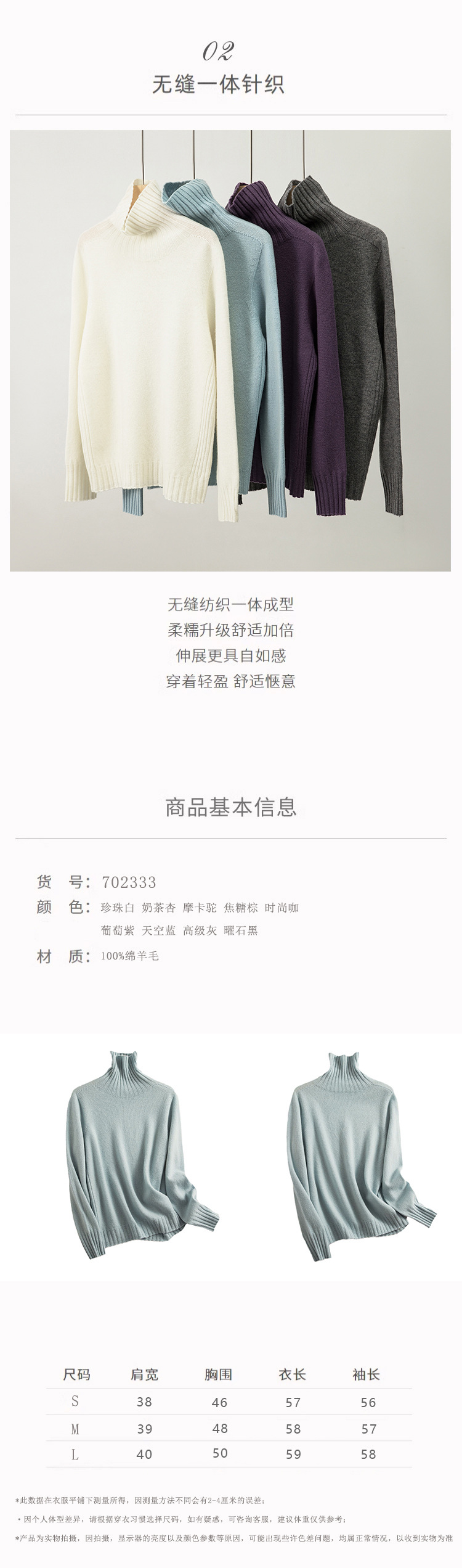 여성용 심리스 원피스 하이넥 울 스웨터 2025년 신상 가을 겨울 따뜻하고 루즈한 슬림핏 이너 니트 베이스 셔츠스토어 가기