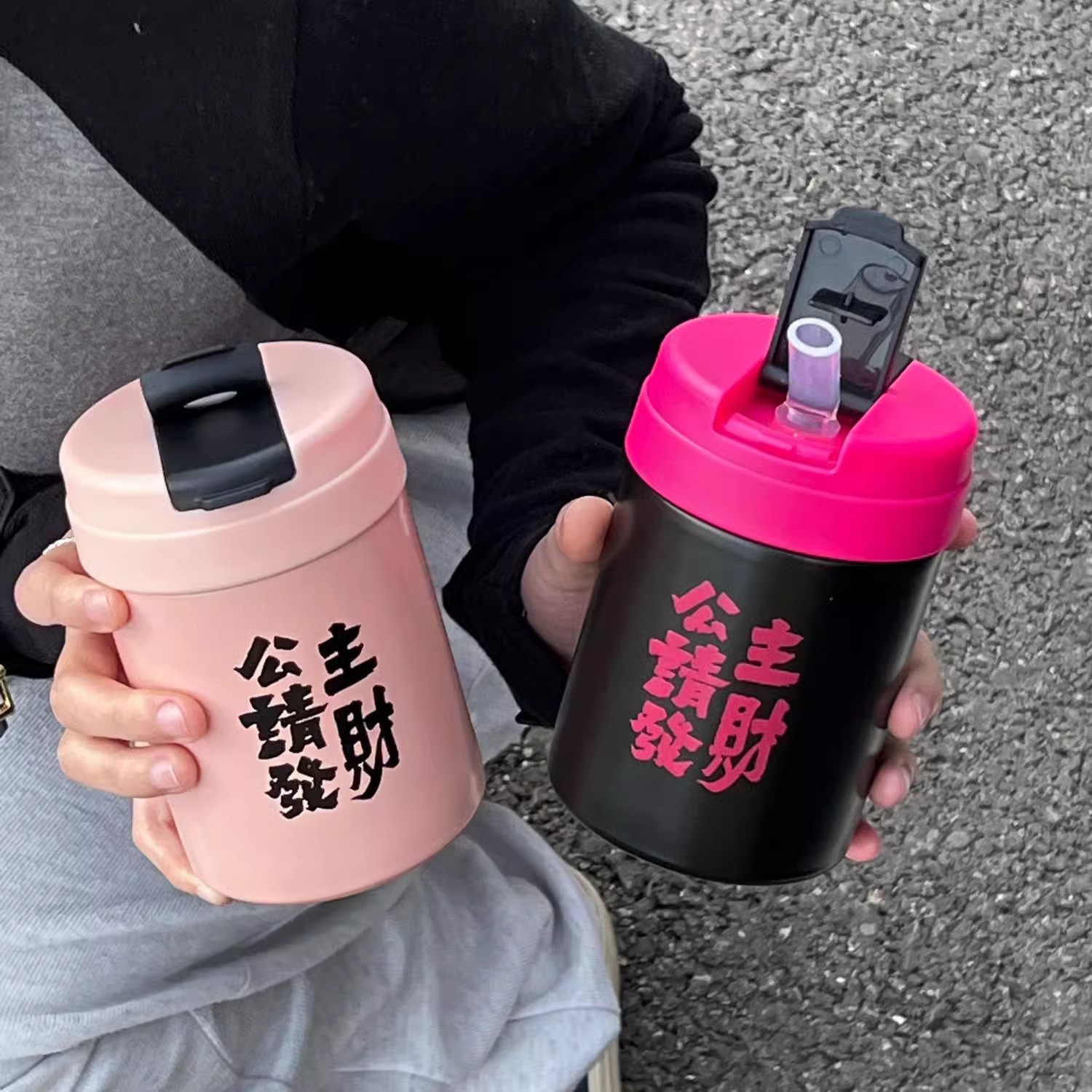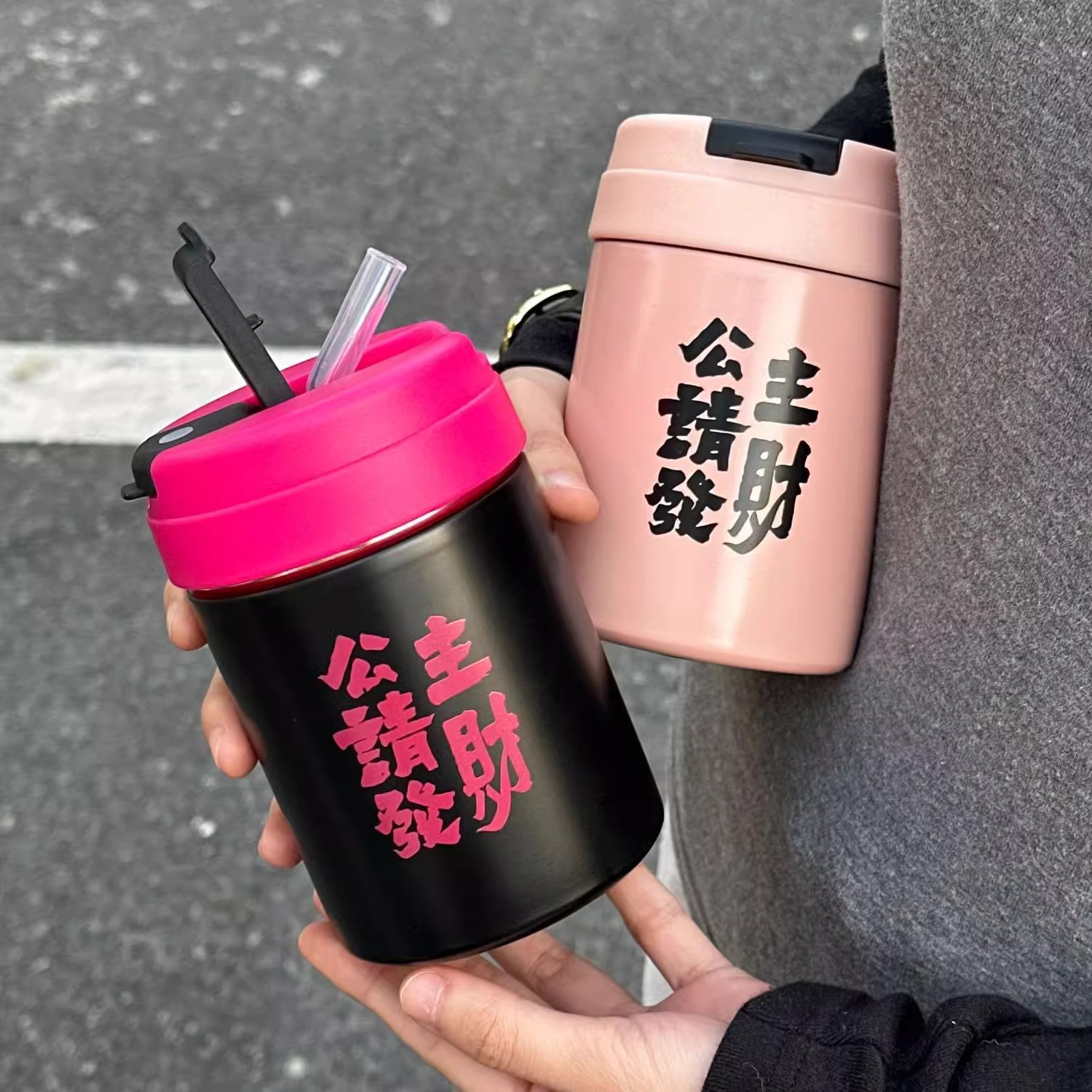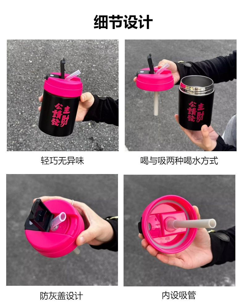 공주는 행운의 보온병 컵 높은 색상 가치 소녀 캐주얼 컵 미니 커피 스테인레스 스틸 절연 빨대 마시는 컵을 만드십시오.