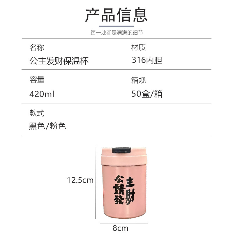 공주는 행운의 보온병 컵 높은 색상 가치 소녀 캐주얼 컵 미니 커피 스테인레스 스틸 절연 빨대 마시는 컵을 만드십시오.스토어 가기