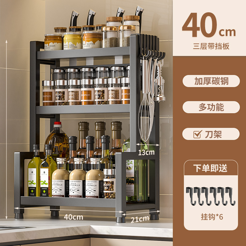 주방 조미료 랙 테이블 탑 다층 양념 랙 나이프 랙 젓가락 저장 랙 오일, 소금, 소스 및 식초 저장 랙스토어 가기