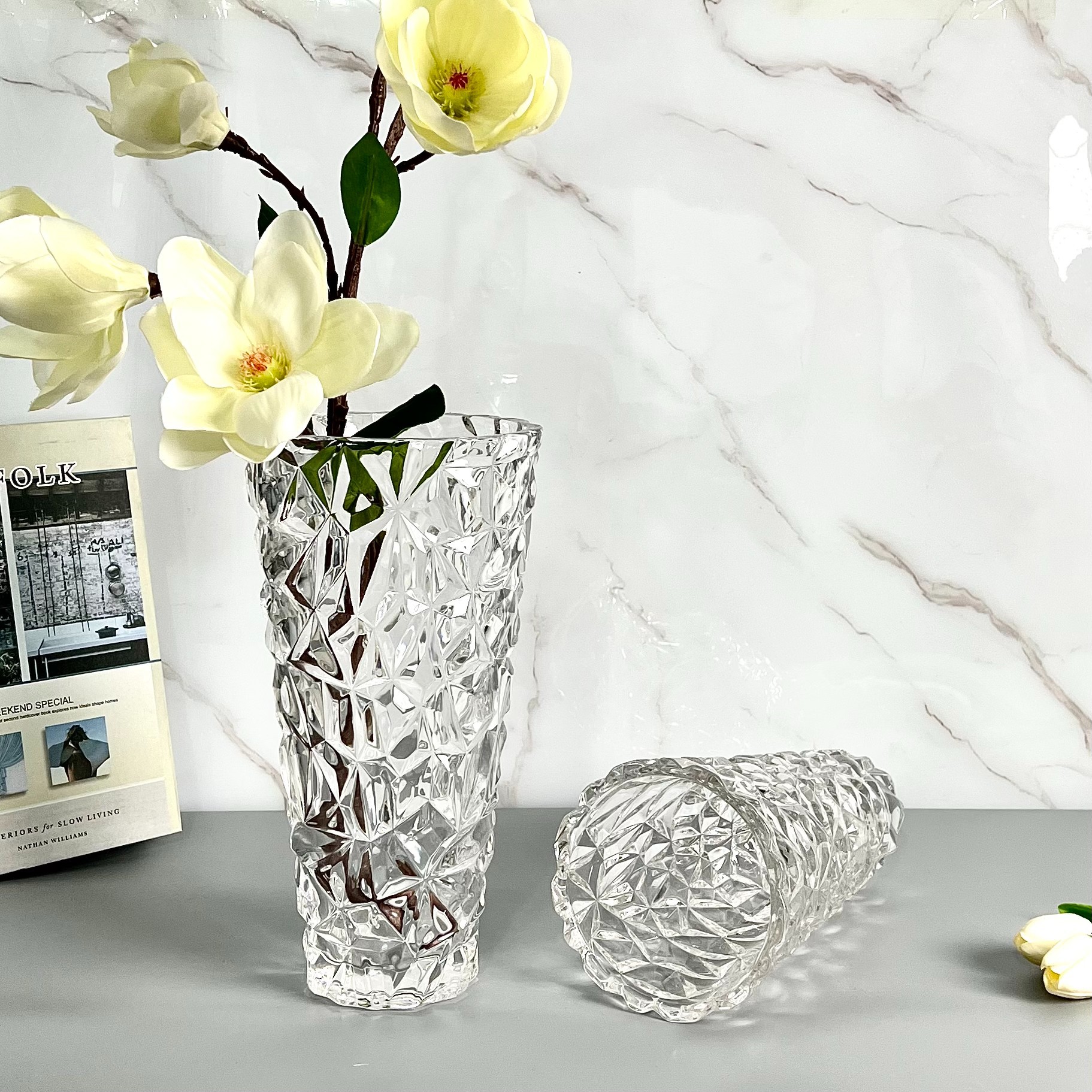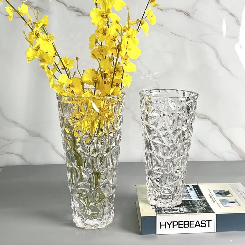 북유럽 빛 럭셔리 크리스탈 투명 유리 꽃병 거실 사무실 호텔 꽃 장식 장식 꽃 공예