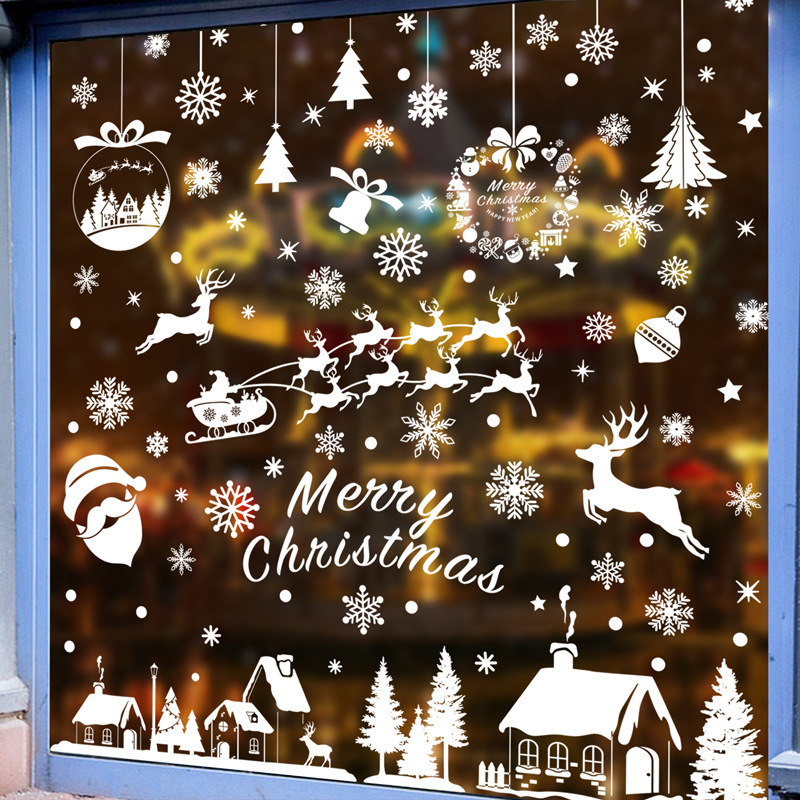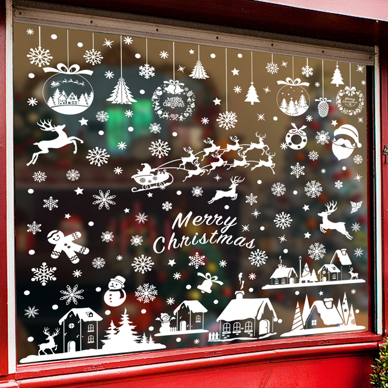 흰색 크리스마스 창 스티커 크리스마스 교수형 공 눈송이 정전기 스티커 엘크 썰매 유리 스티커 크리스마스 창 배열
