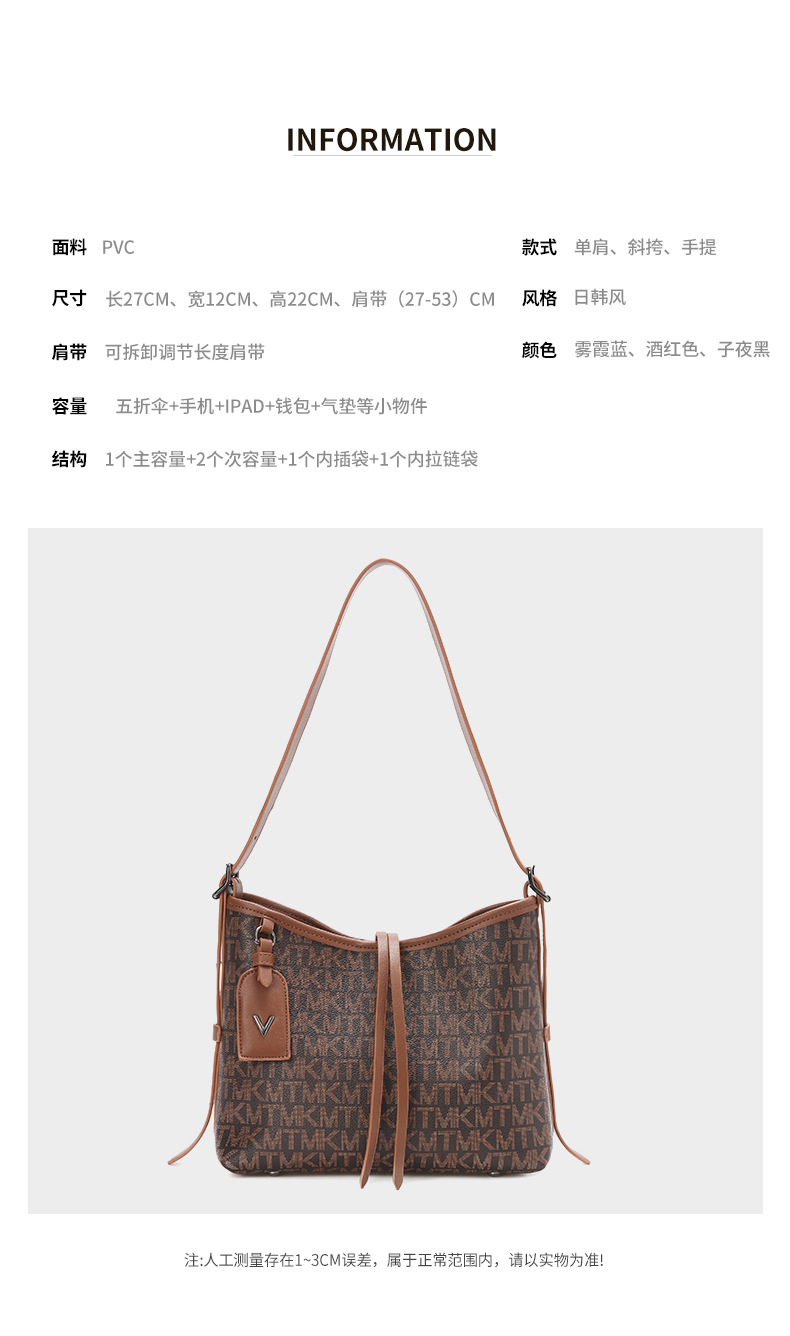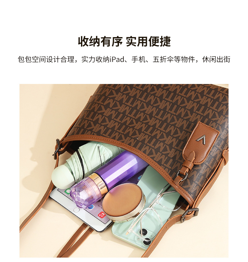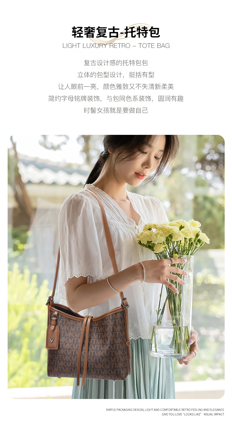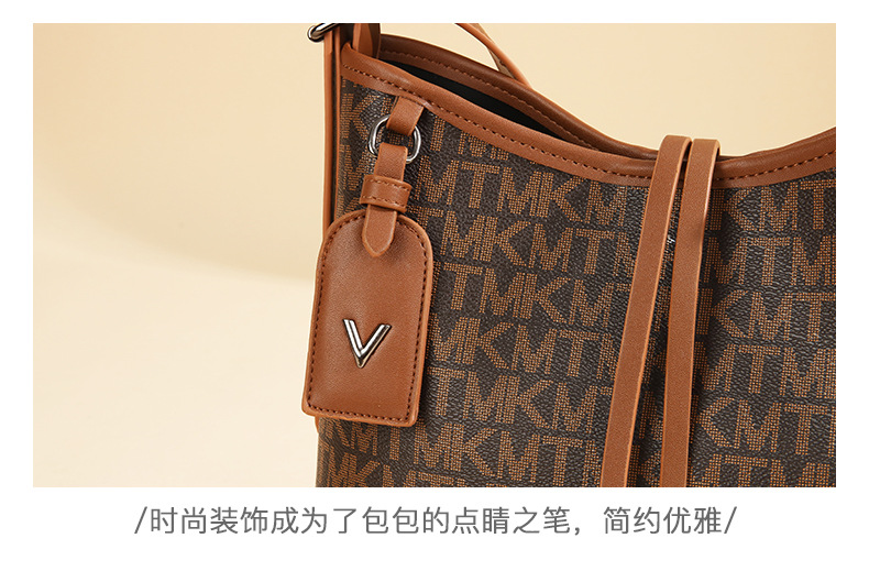 올해 인기있는 가방 여성 2024 새로운 대용량 인쇄 편지 넓은 어깨 끈 통근 어깨 크로스 바디 토트 백