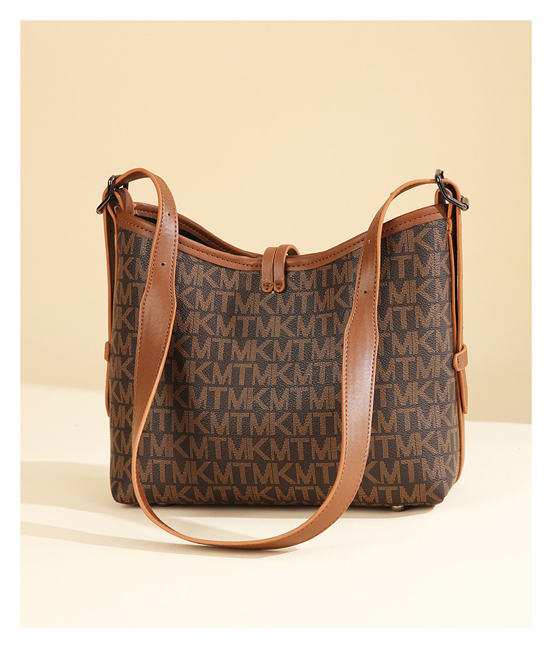 올해 인기있는 가방 여성 2024 새로운 대용량 인쇄 편지 넓은 어깨 끈 통근 어깨 크로스 바디 토트 백스토어 가기