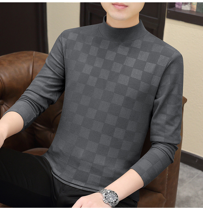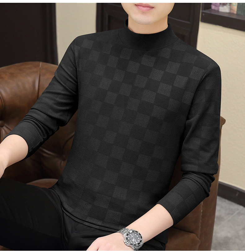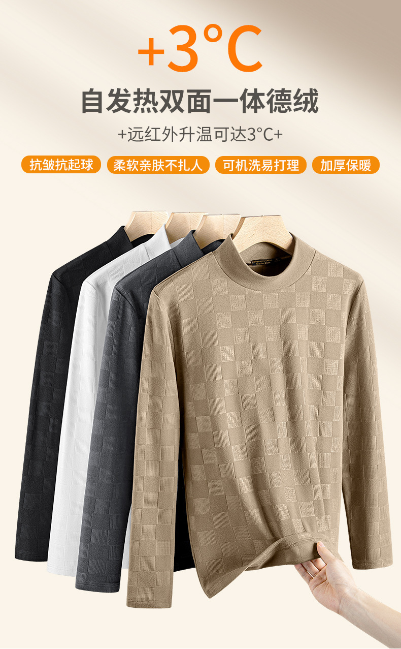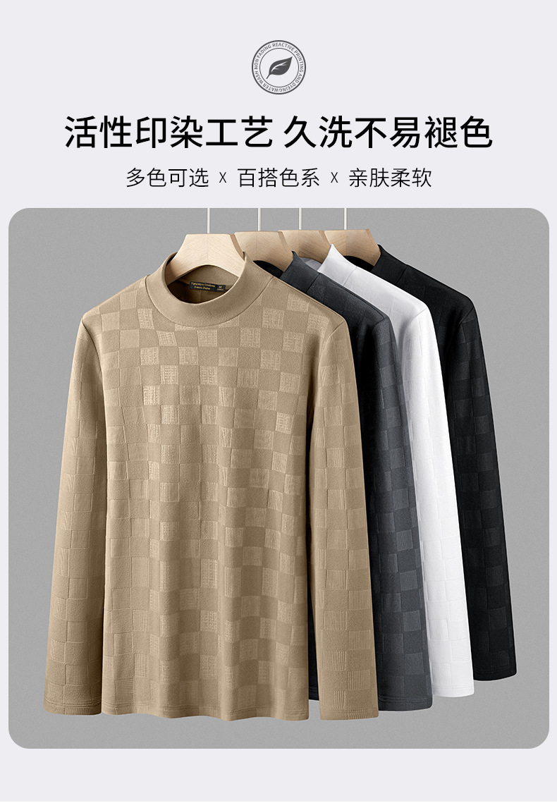 독일 벨벳 세미 하이 칼라 바닥 셔츠 남자의 2024 가을과 겨울 새로운 기모 두꺼운 따뜻한 칼라 긴 소매 티셔츠 가을 의류스토어 가기