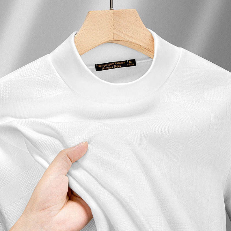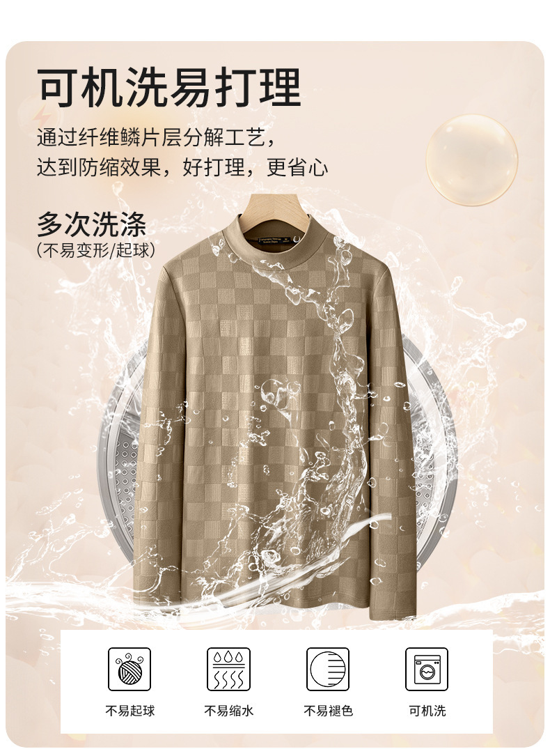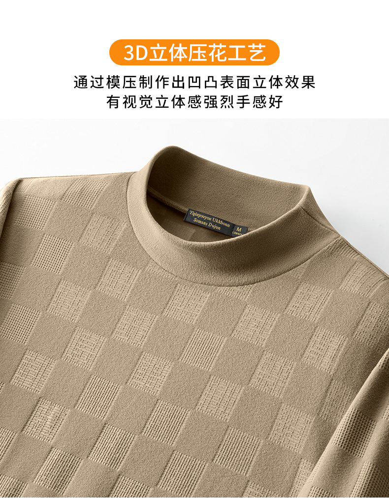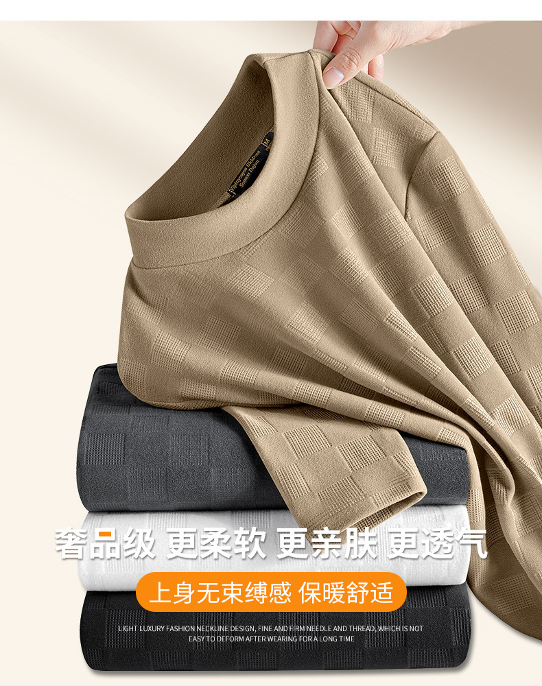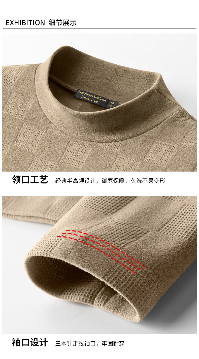 독일 벨벳 세미 하이 칼라 바닥 셔츠 남자의 2024 가을과 겨울 새로운 기모 두꺼운 따뜻한 칼라 긴 소매 티셔츠 가을 의류스토어 가기