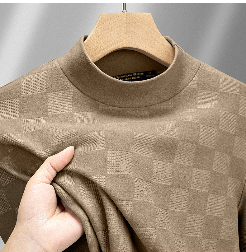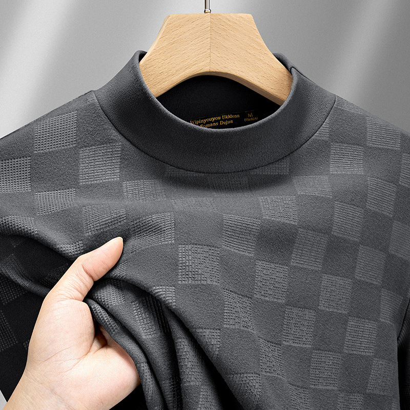 독일 벨벳 세미 하이 칼라 바닥 셔츠 남자의 2024 가을과 겨울 새로운 기모 두꺼운 따뜻한 칼라 긴 소매 티셔츠 가을 의류