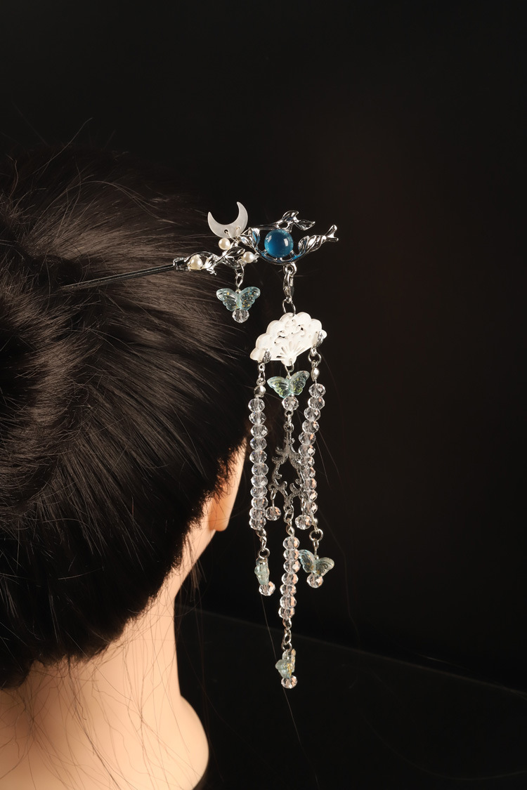 바람과 달 골동품 헤어 액세서리 Tassel 헤어 헤어핀 여성용 센스 고대 의류 헤어핀 헤어 빵 헤드 웨어 한푸 청삼 헤어 헤어핀 단계별 액세서리스토어 가기