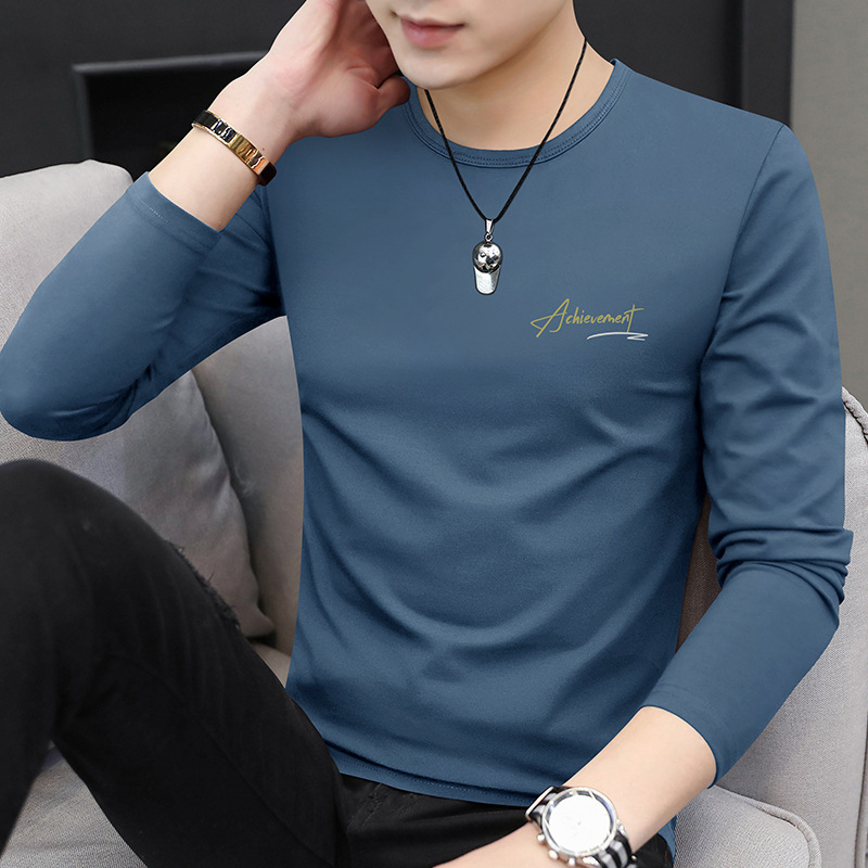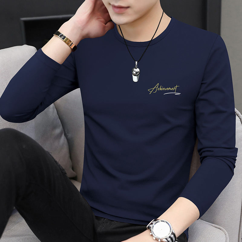 세련 된 모달 긴팔 티셔츠 남자 2024 봄과 가을 새로운 슬림베이스 셔츠 얇은 티셔츠 최고 남성스토어 가기