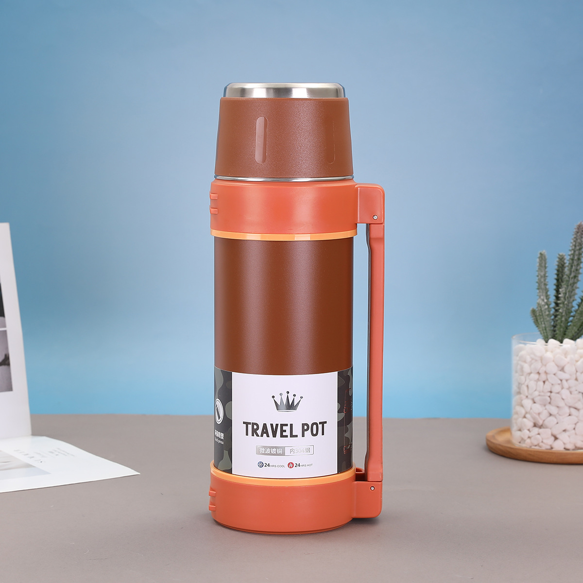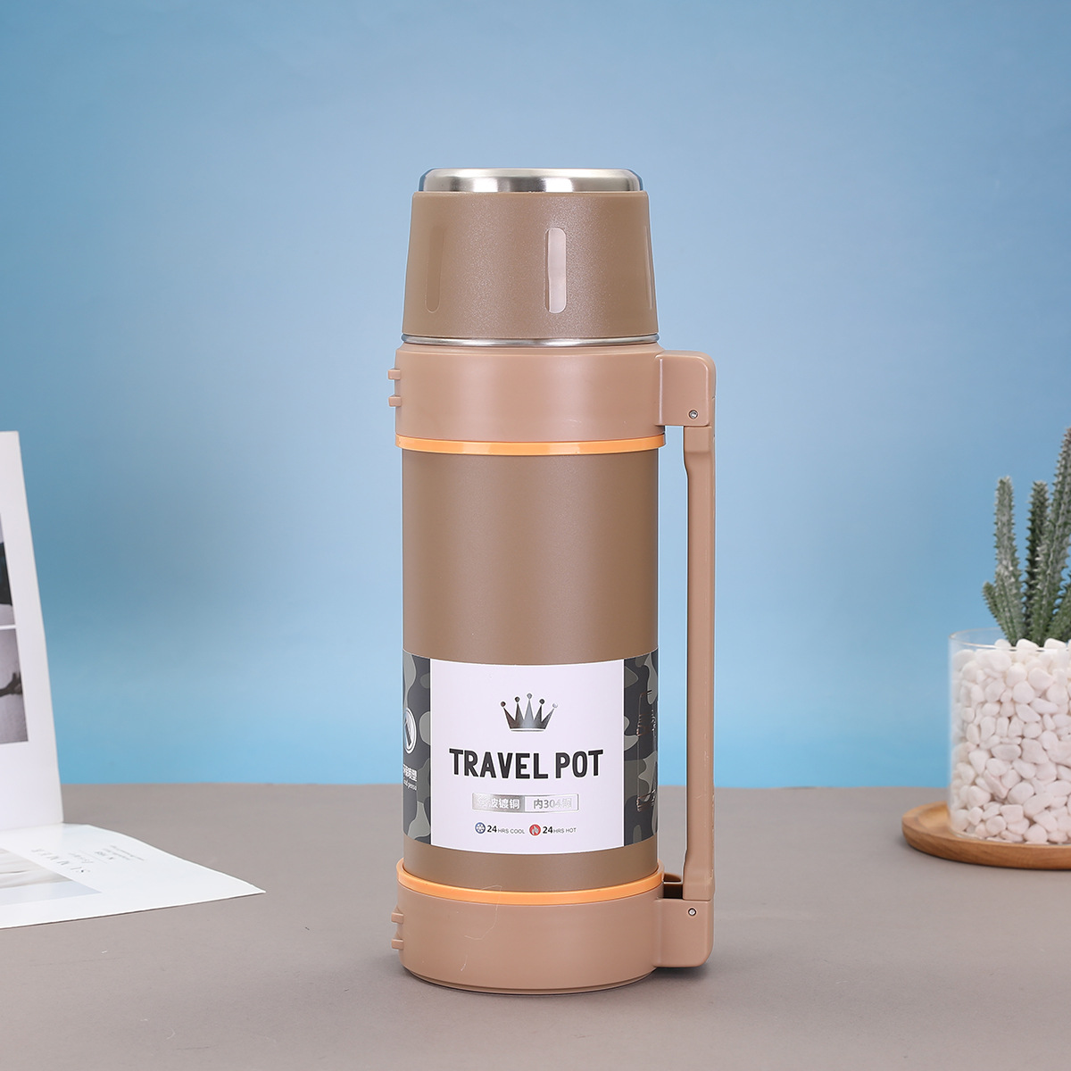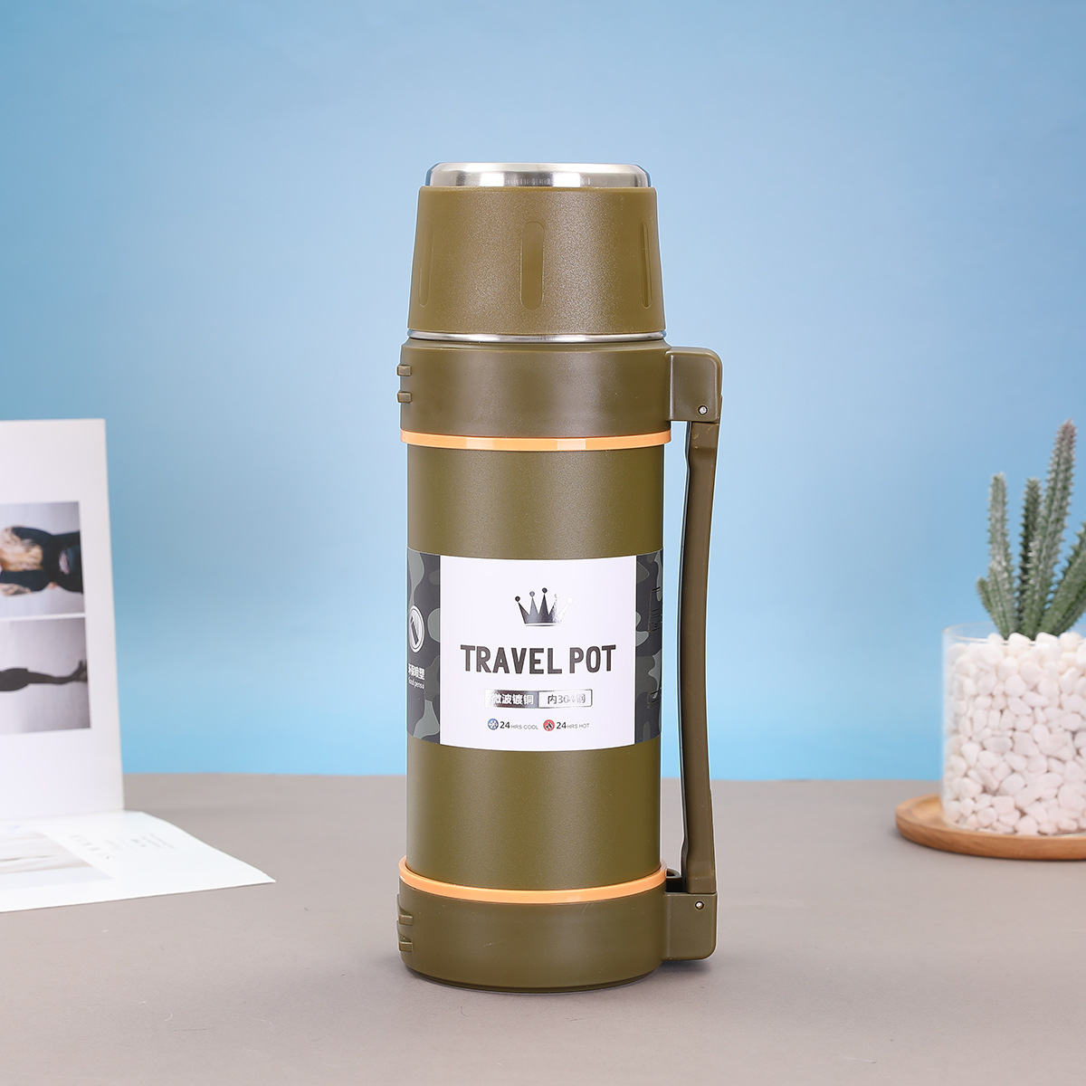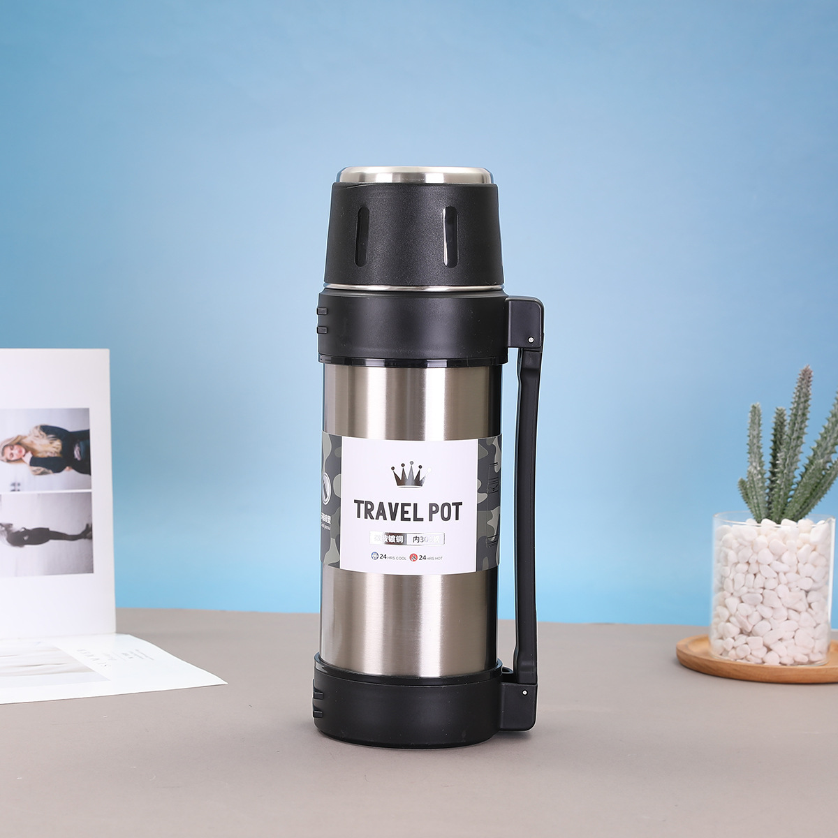 대용량 304 스테인레스 스틸 보온병 컵 한 뚜껑 이중 사용 야외 등산 여행 냄비 휴대용 스트랩 스포츠 워터 컵스토어 가기