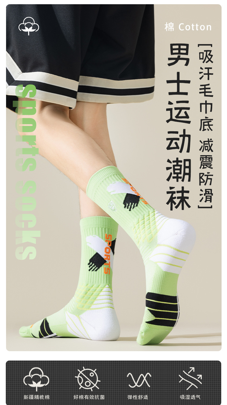 마라톤 양말 남자 미드 튜브 타월 바닥 땀 흡수성 미끄럼 방지 남자 특별 스포츠 농구 양말 Zhuji 도매