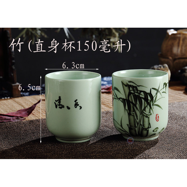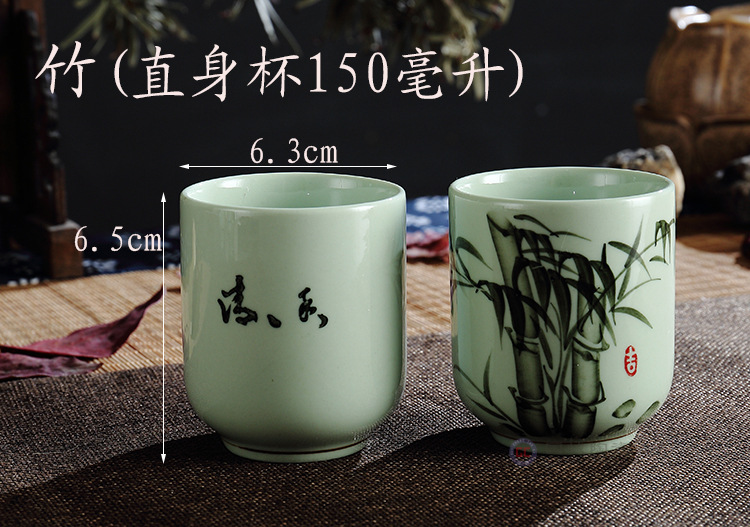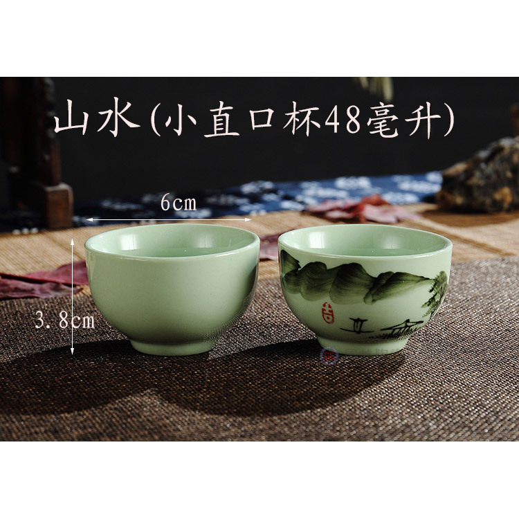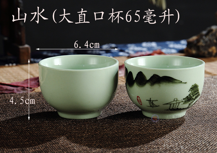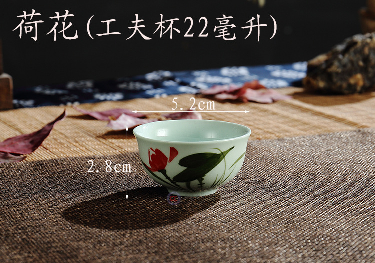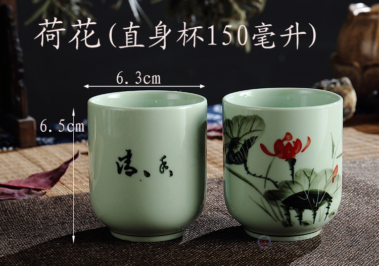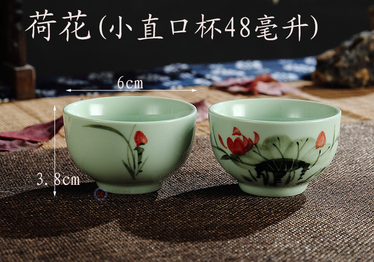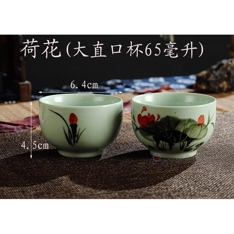 손으로 그린 연꽃 파란색과 흰색 도자기 10 녹색 유약 작은 찻집 찻집 연꽃 세라믹 찻잔 홈 마스터 컵스토어 가기