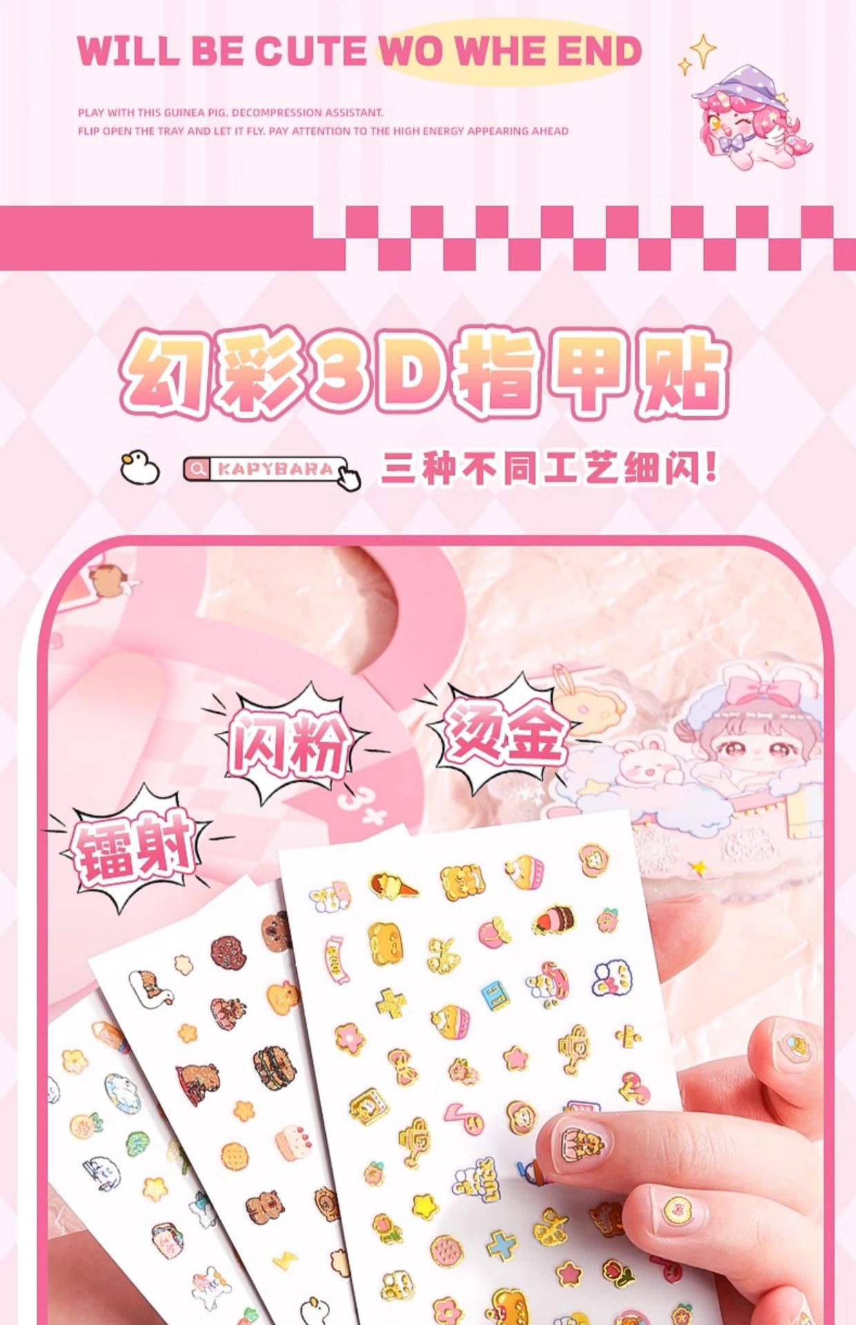 3D 스테레오 스티커 네일 페이스트 만화 스티커 소녀 패턴 어린이 귀여운 장식 손 계정 스티커 소녀 공주스토어 가기