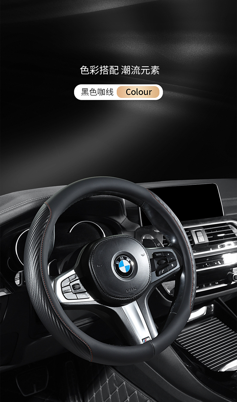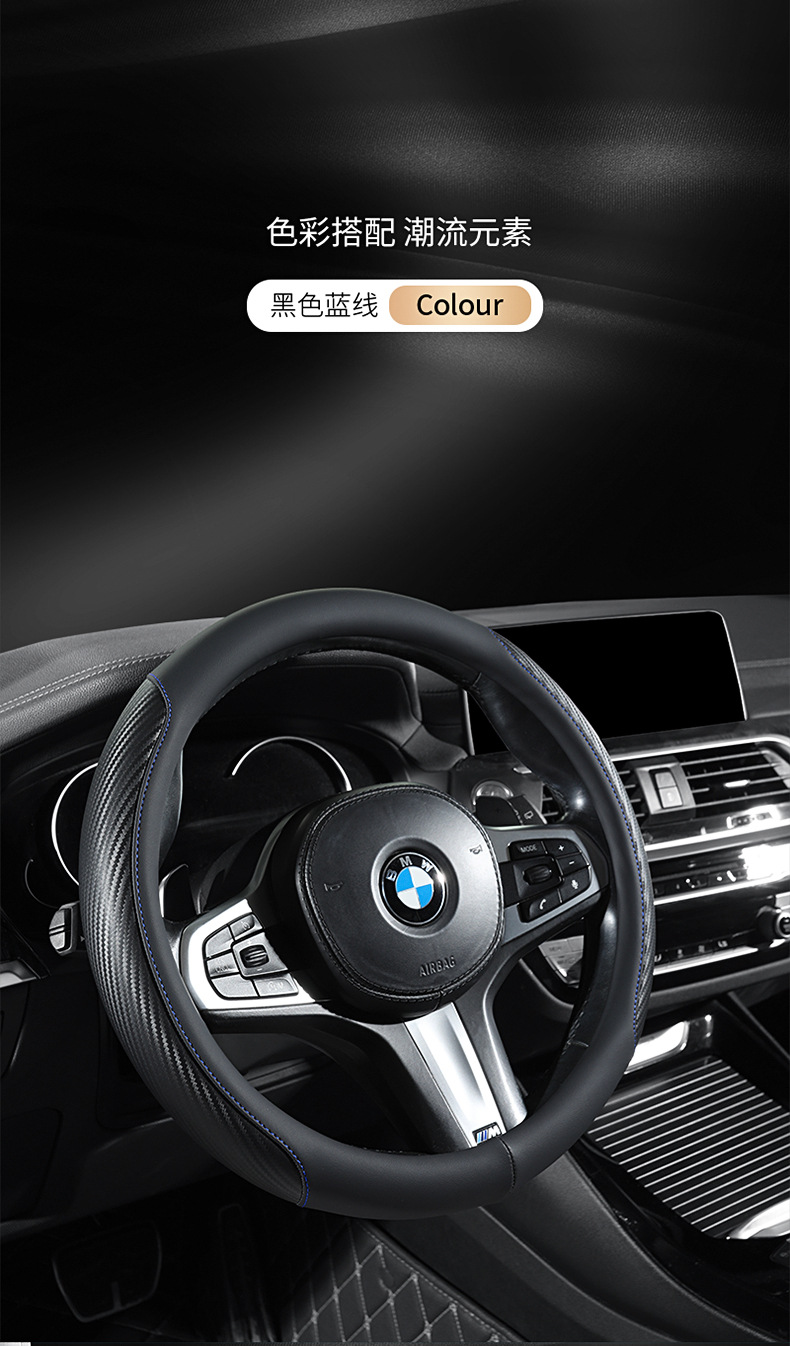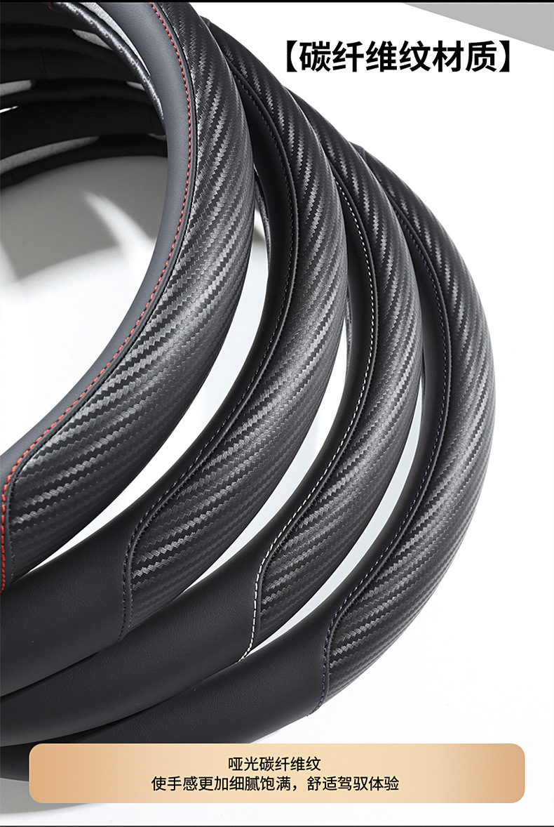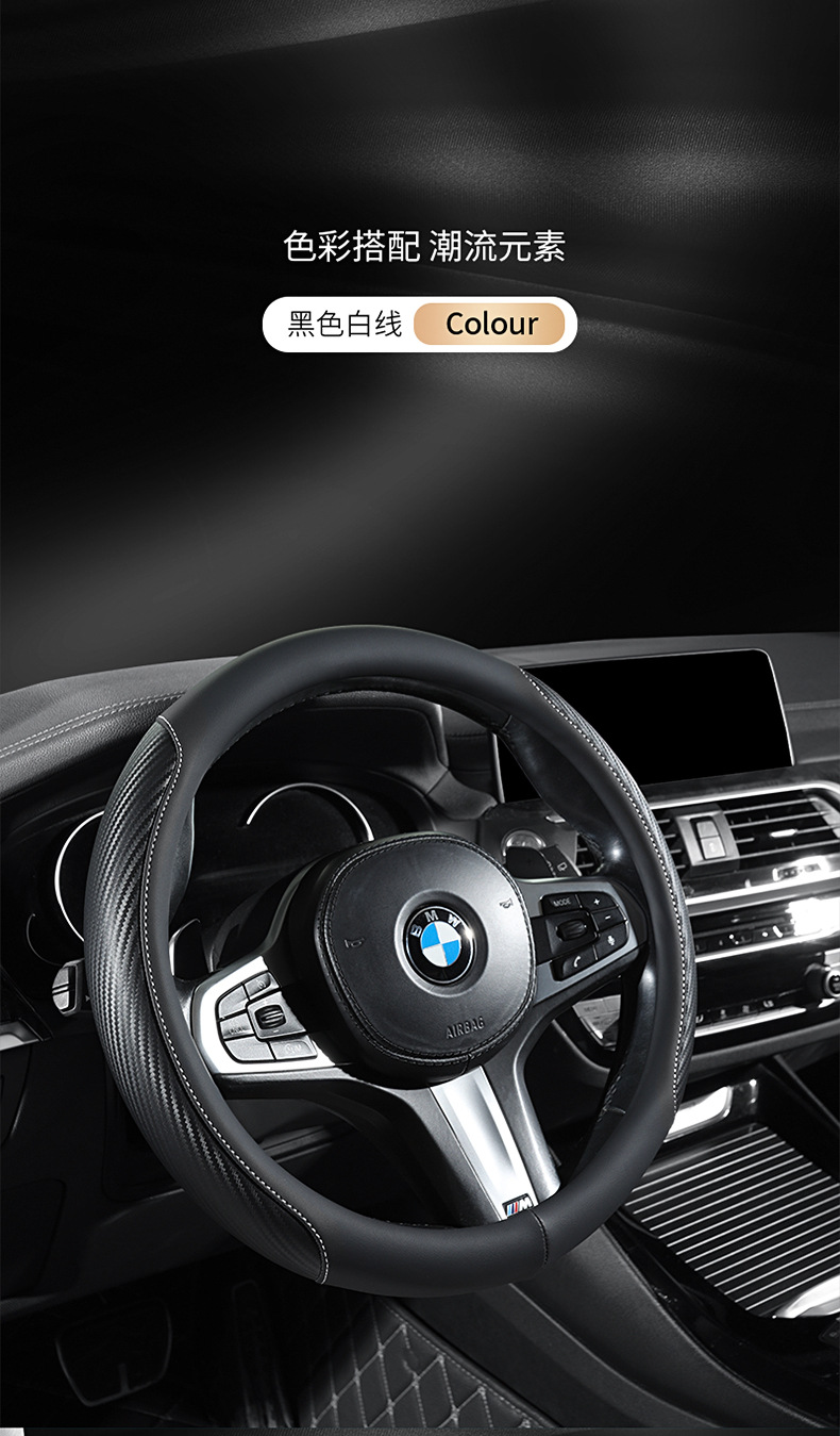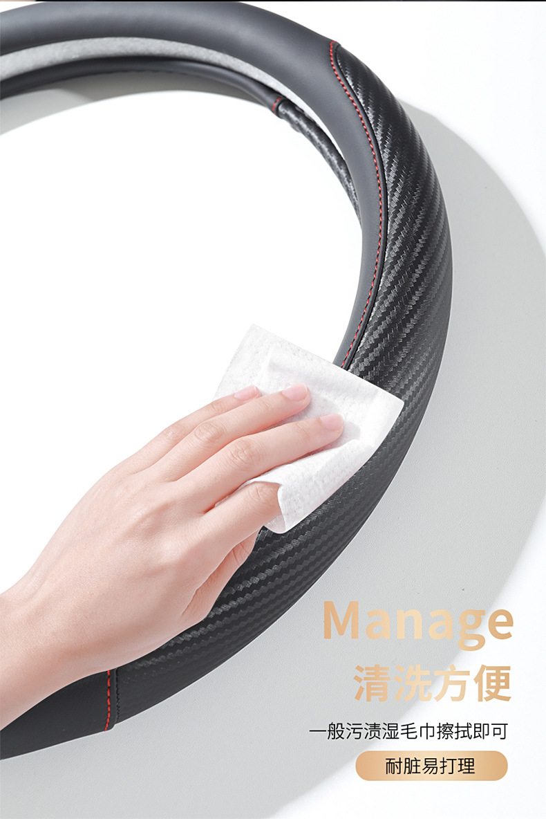 탄소 섬유 전체 가죽 자동차 핸들 커버 사계절 보편적 인 내마모성 먼지 방지 편안한 통기성 미끄럼 방지 자동차 스티어링 휠 커버