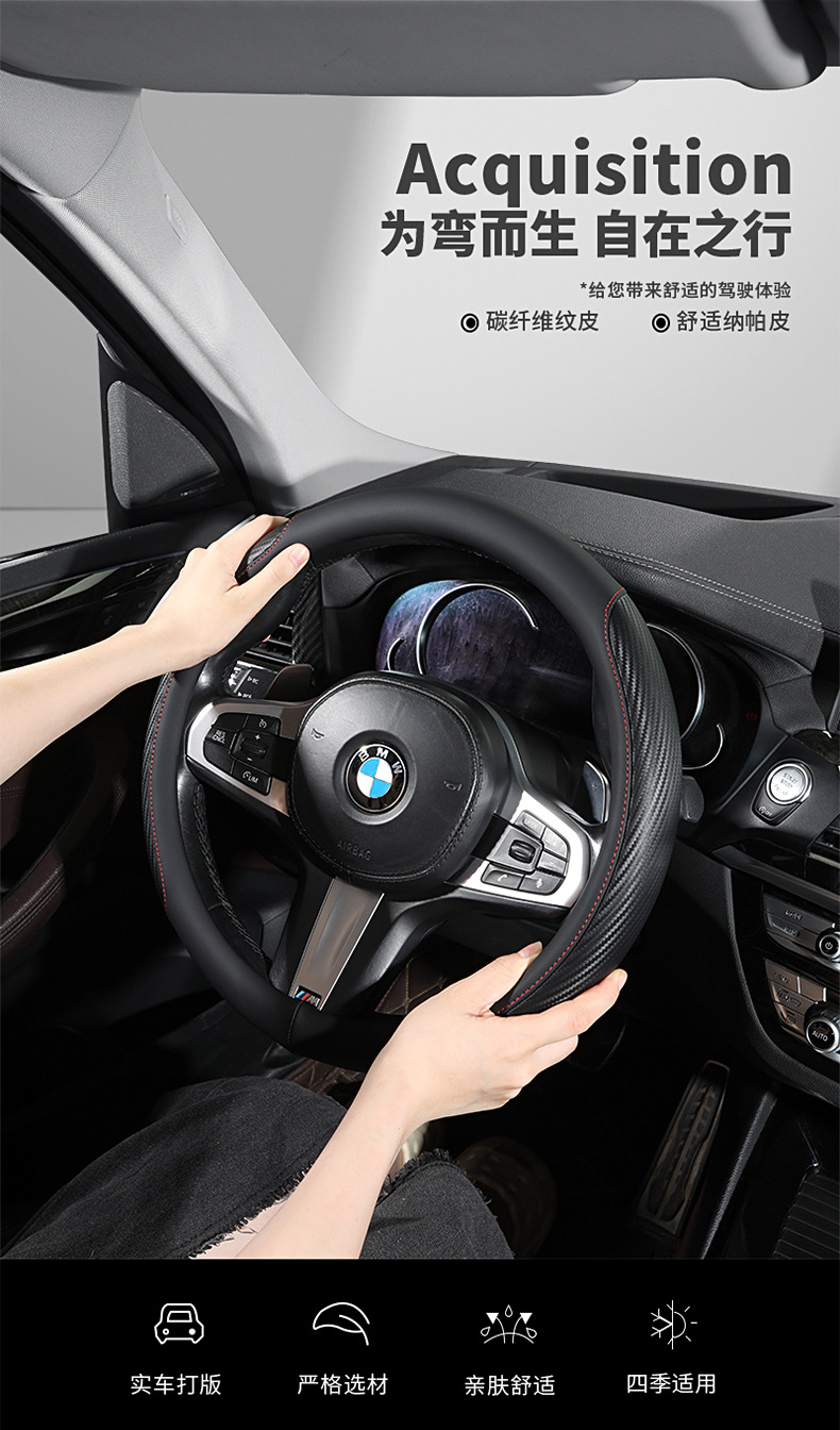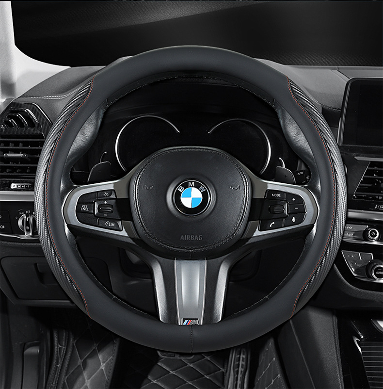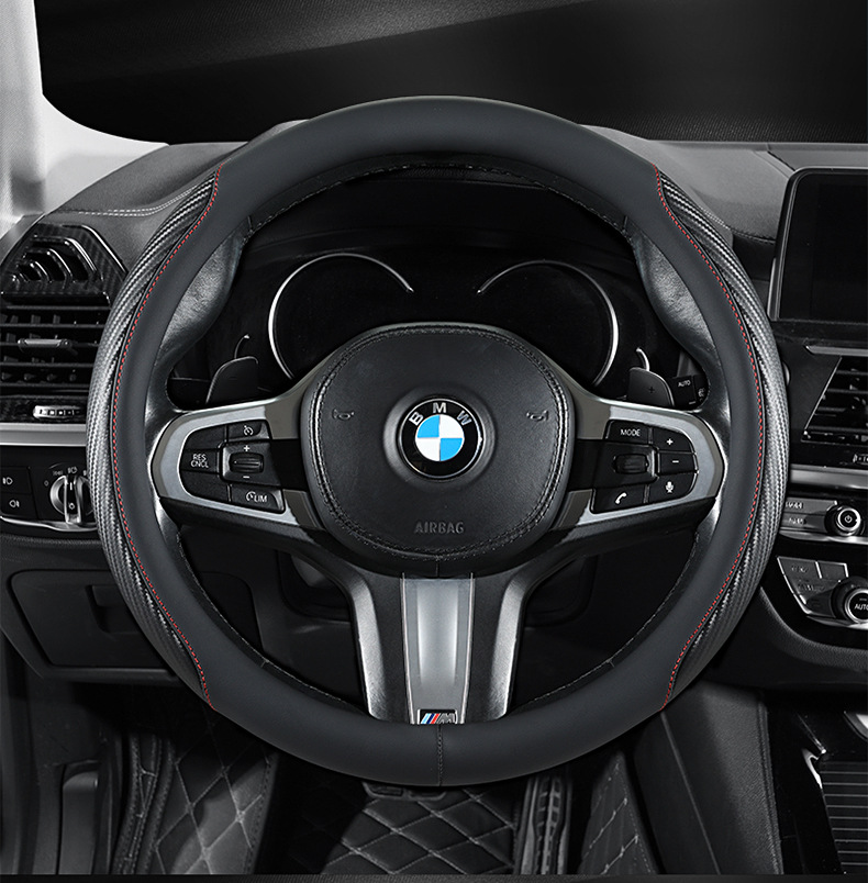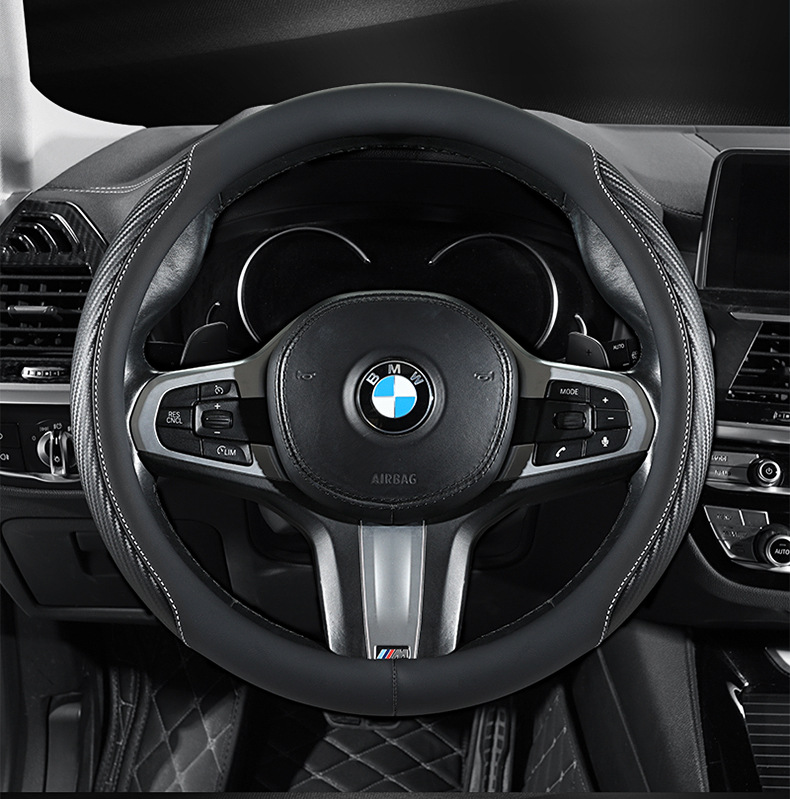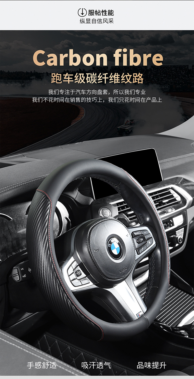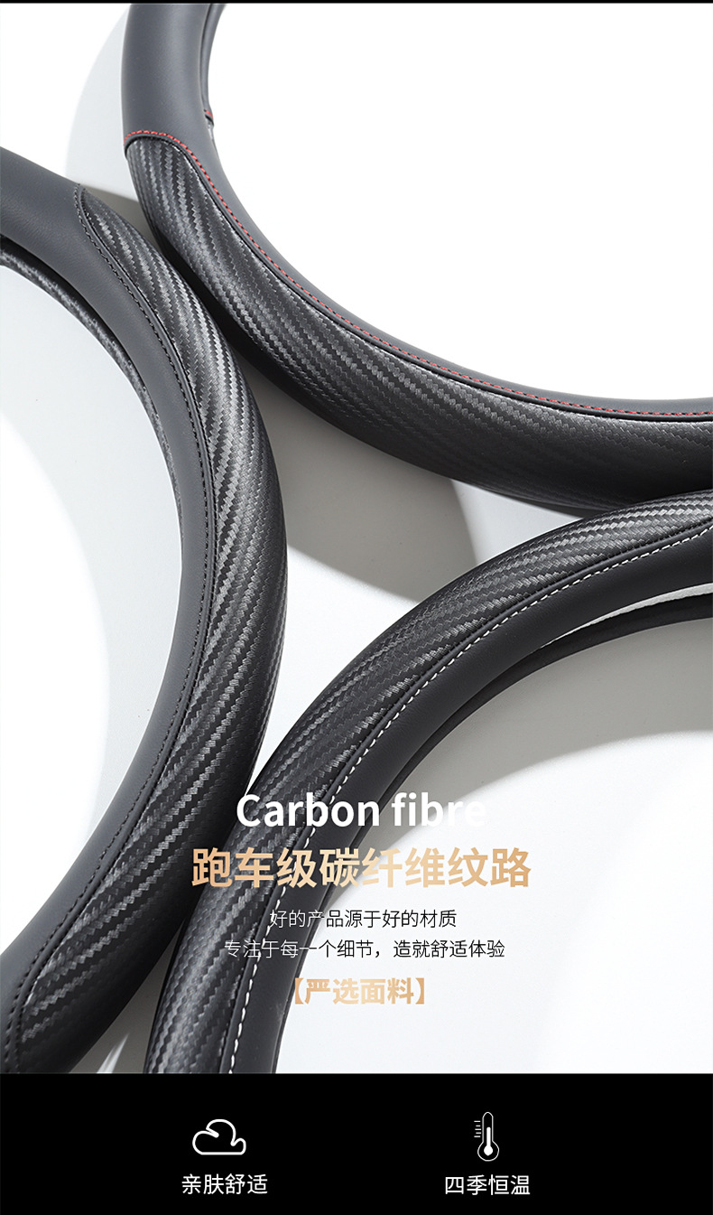 탄소 섬유 전체 가죽 자동차 핸들 커버 사계절 보편적 인 내마모성 먼지 방지 편안한 통기성 미끄럼 방지 자동차 스티어링 휠 커버