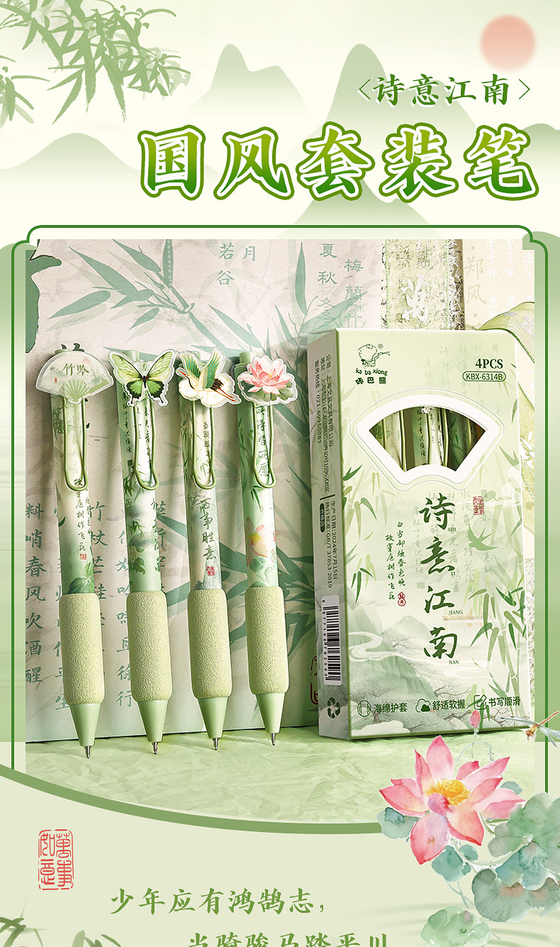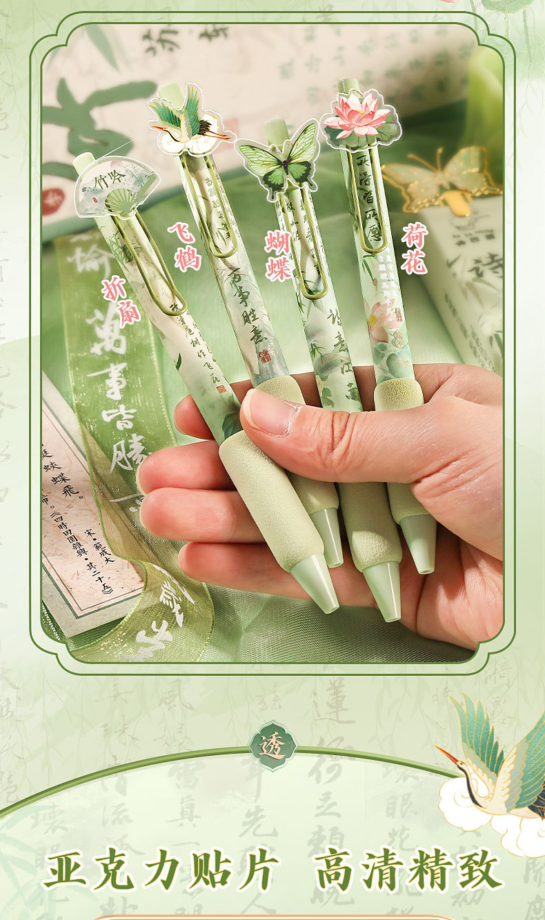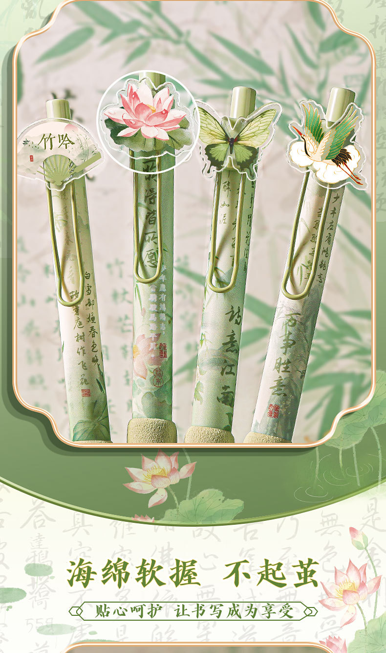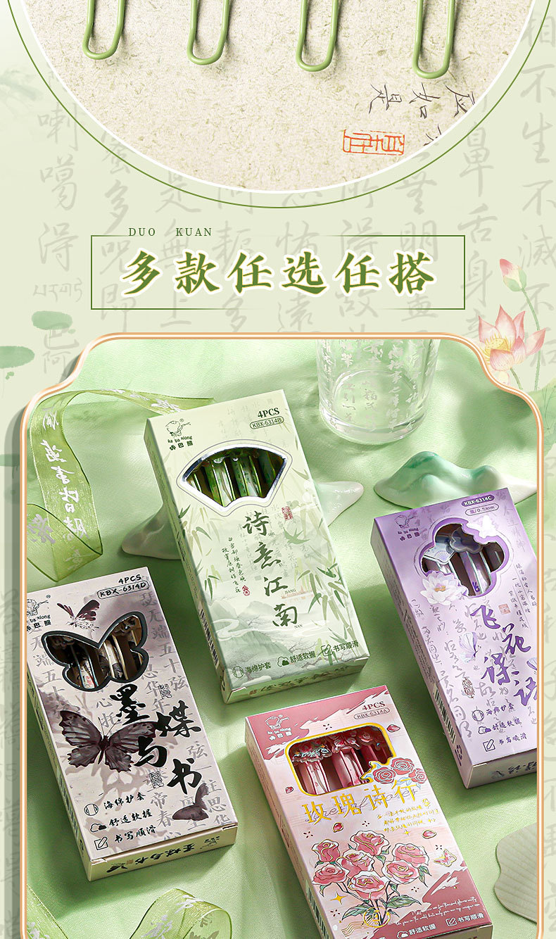 • 소프트 그립 젤 펜 4개 세트 - 잉크 나비와 책