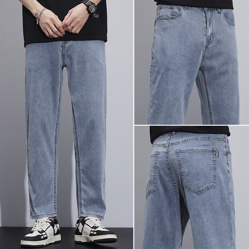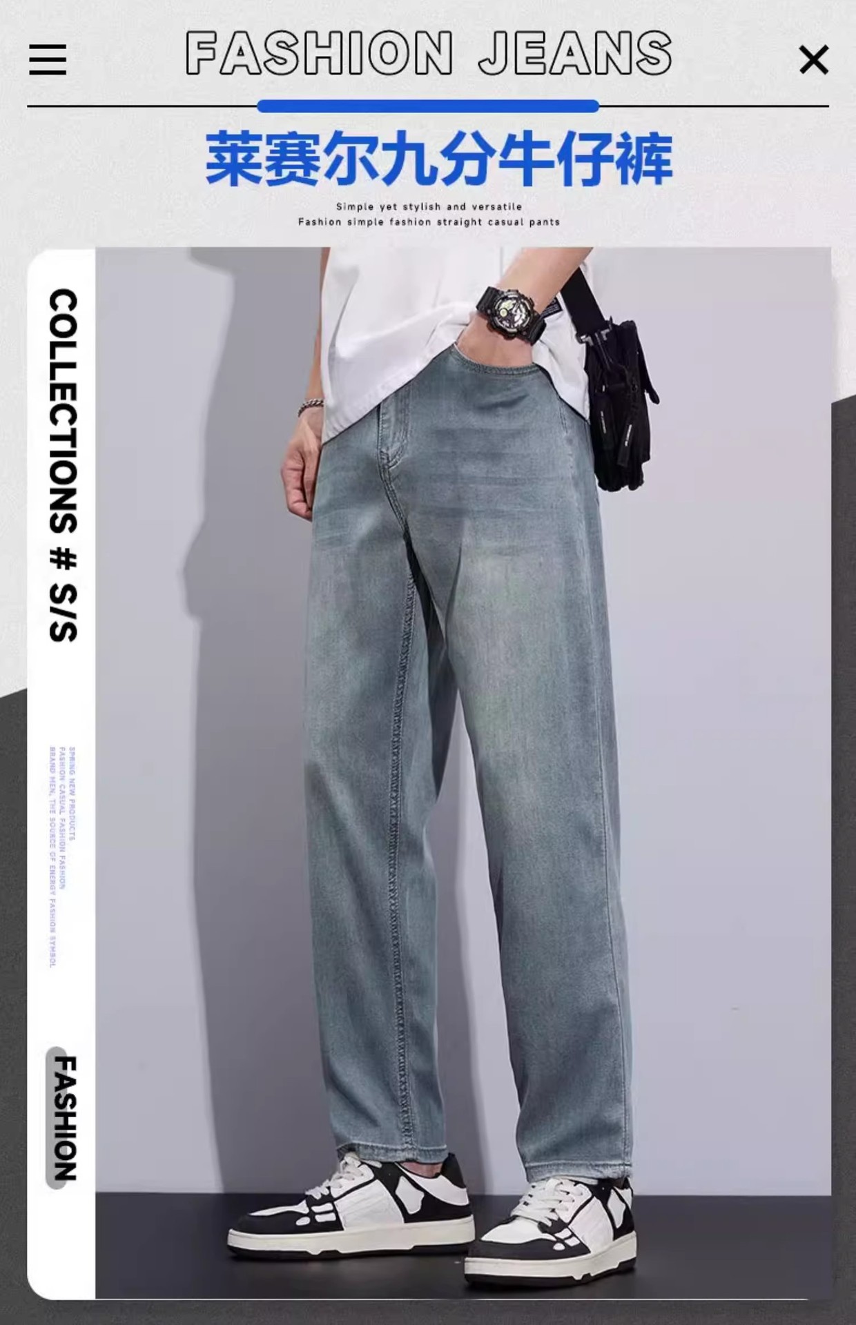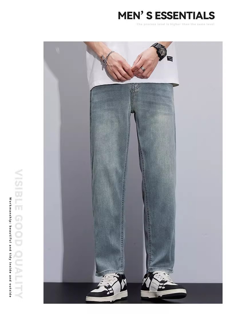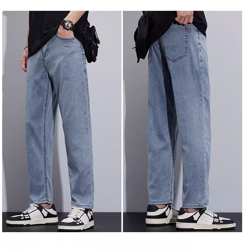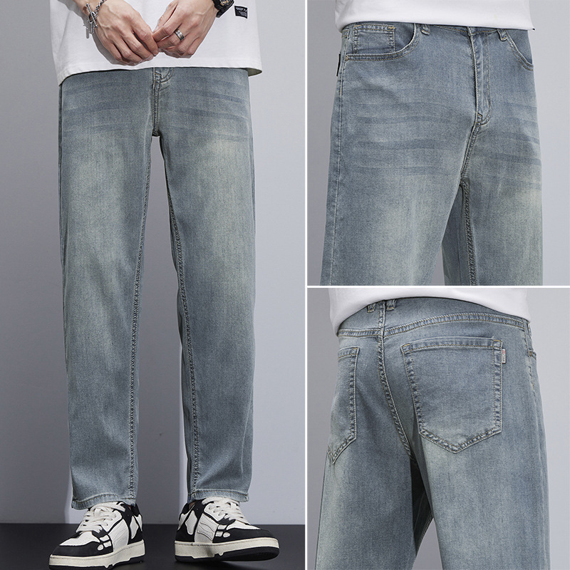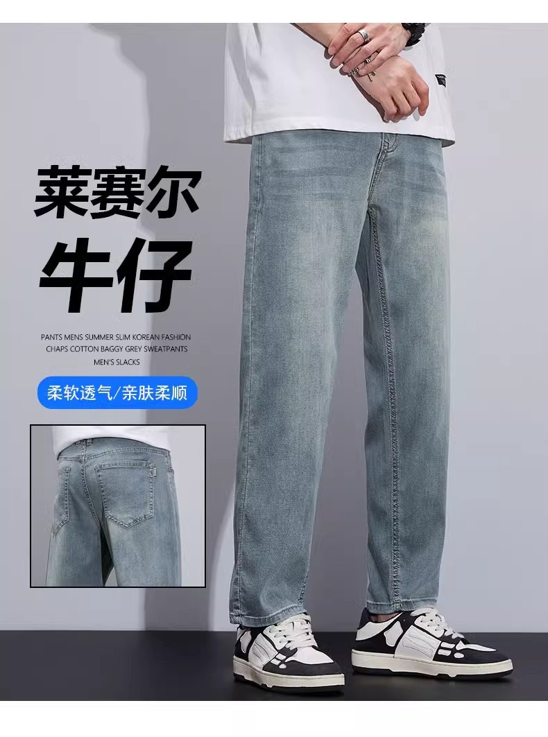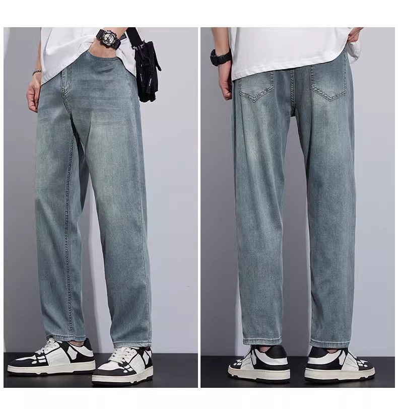 아이스 실크 청바지 남성용 아메리칸 스타일 스트레이트 느슨한 여름 얇은 텐셀 캐주얼 긴 바지 남자 2024 새로운 유행스토어 가기
