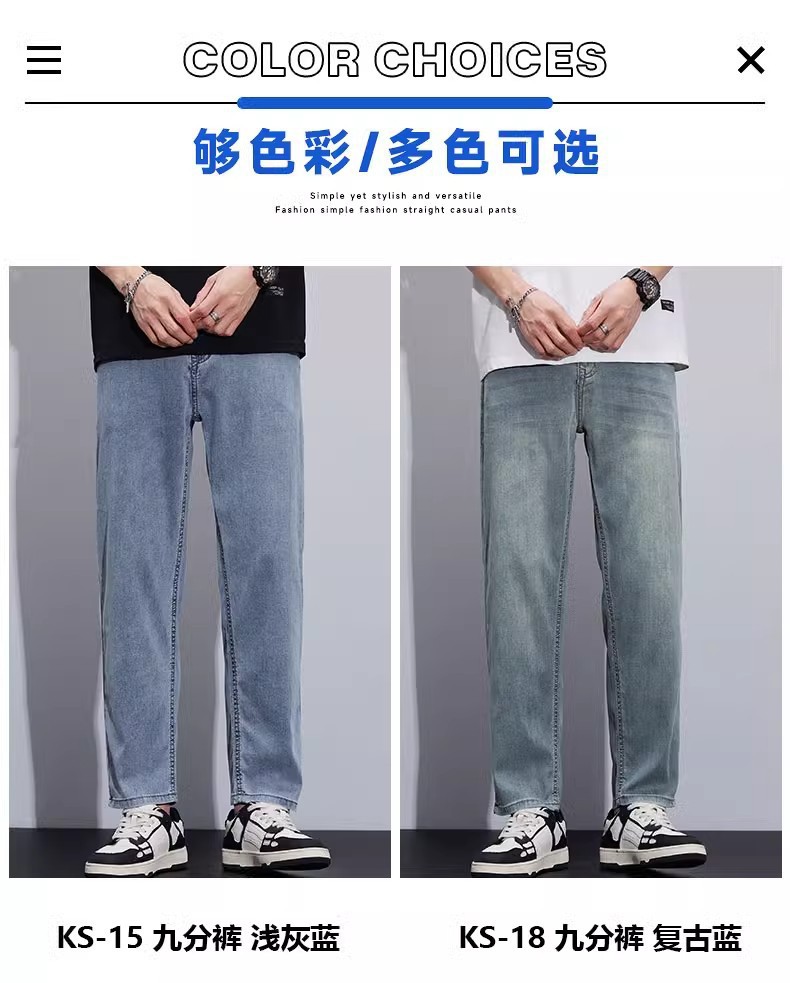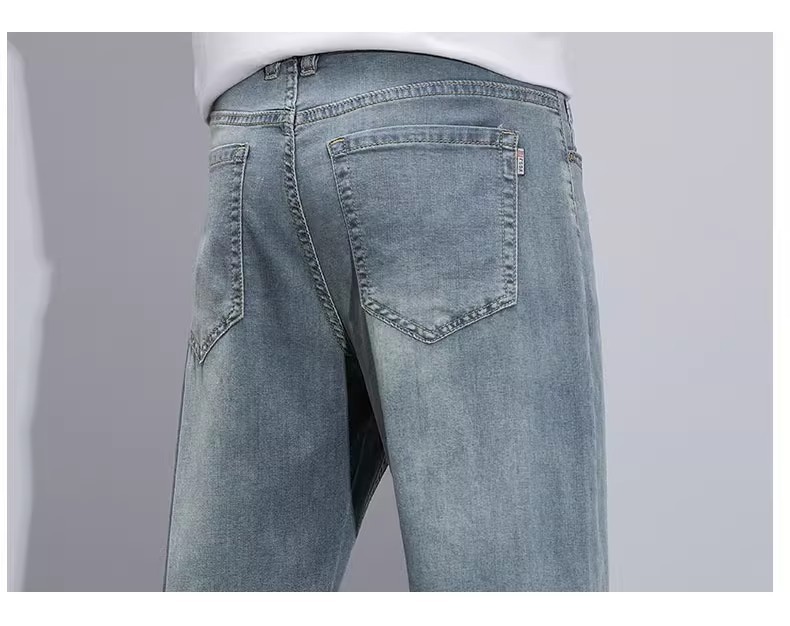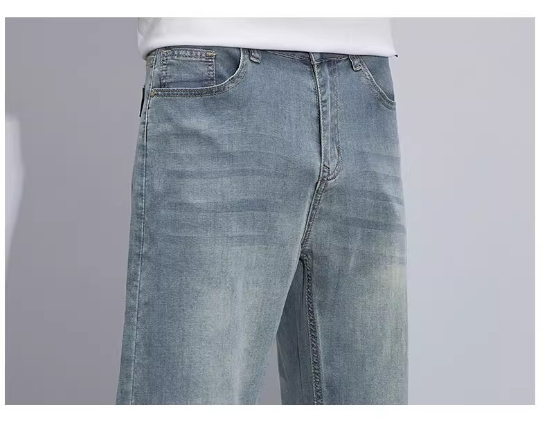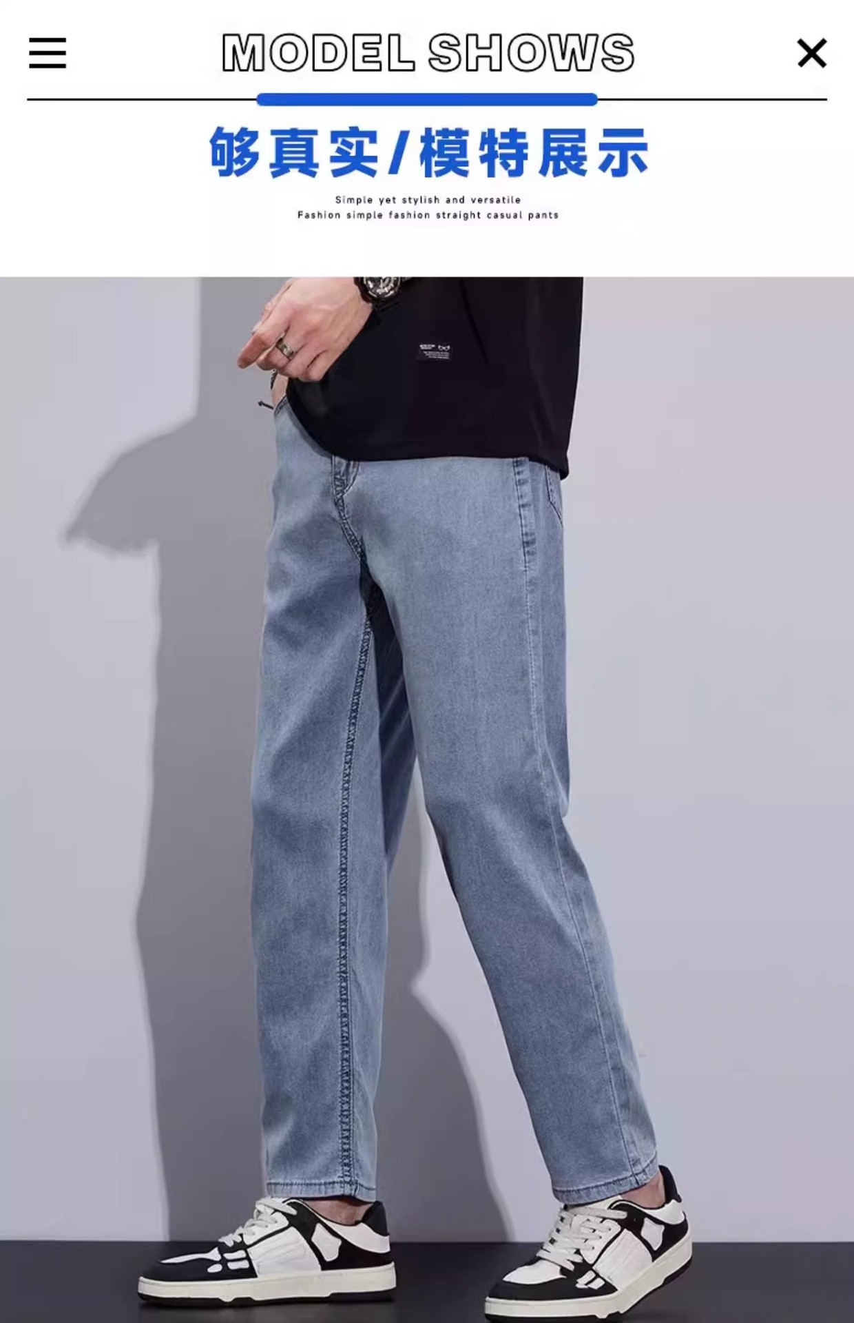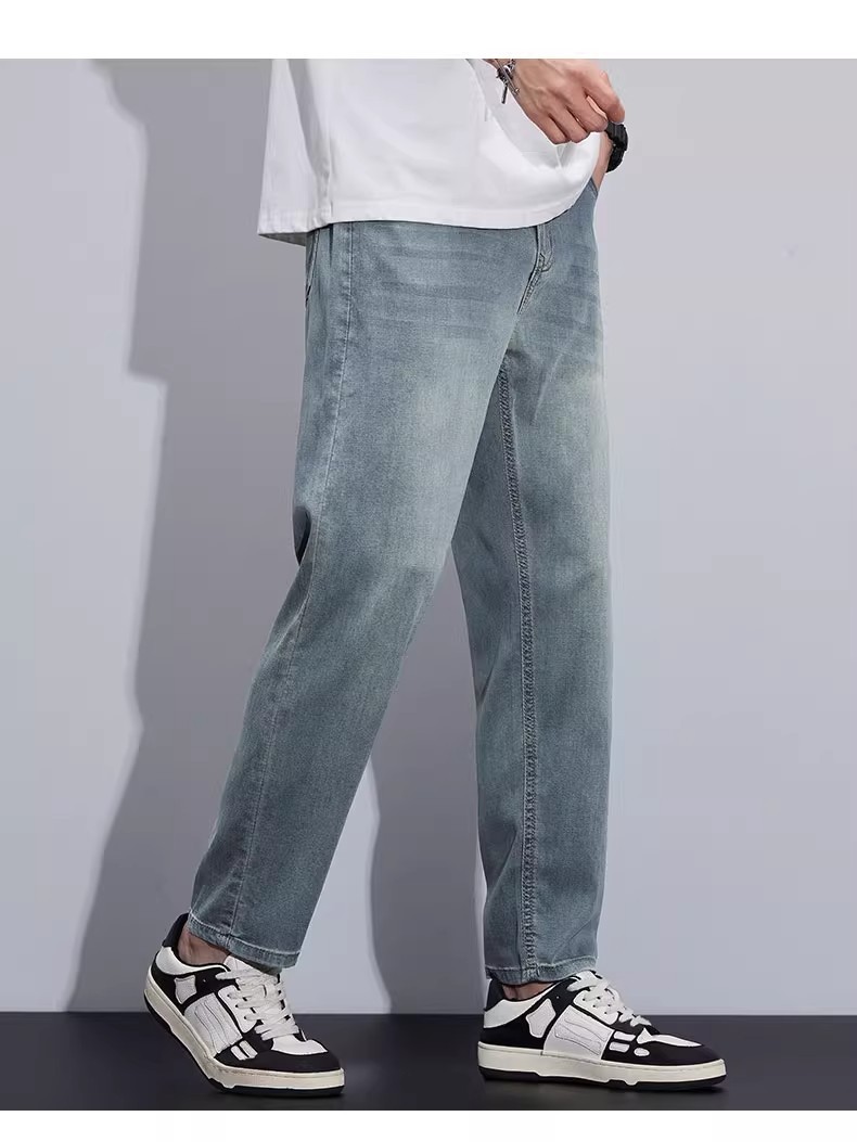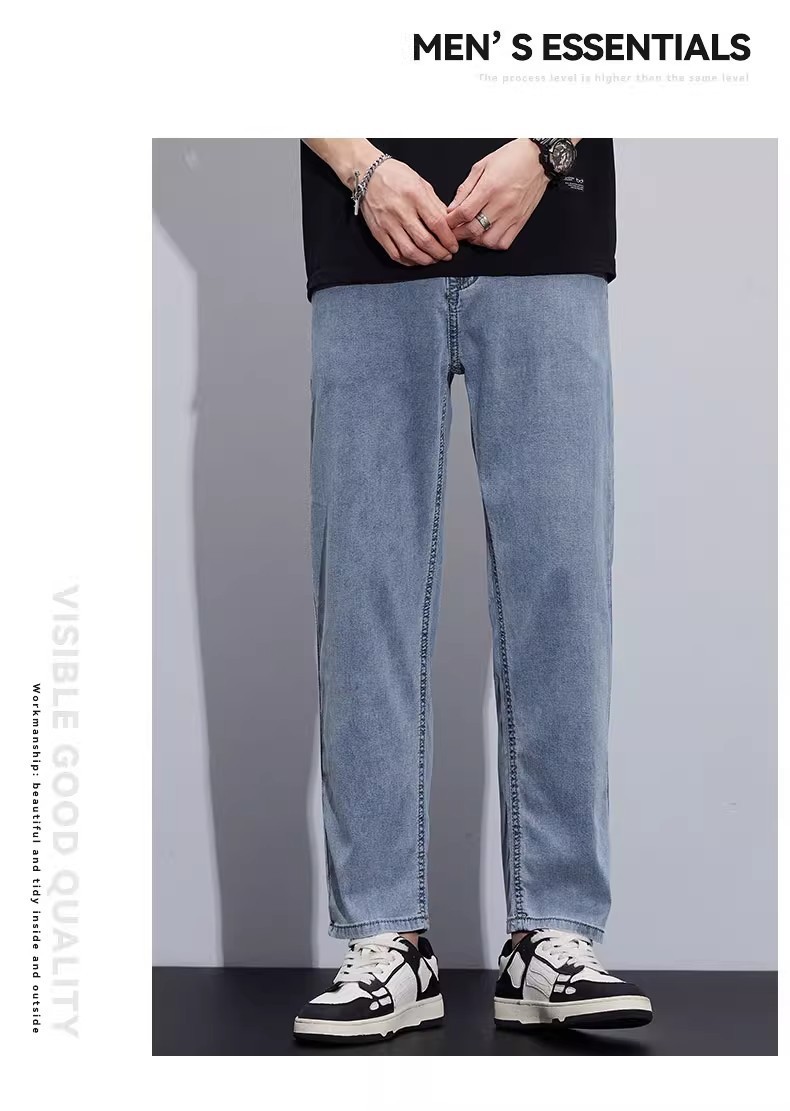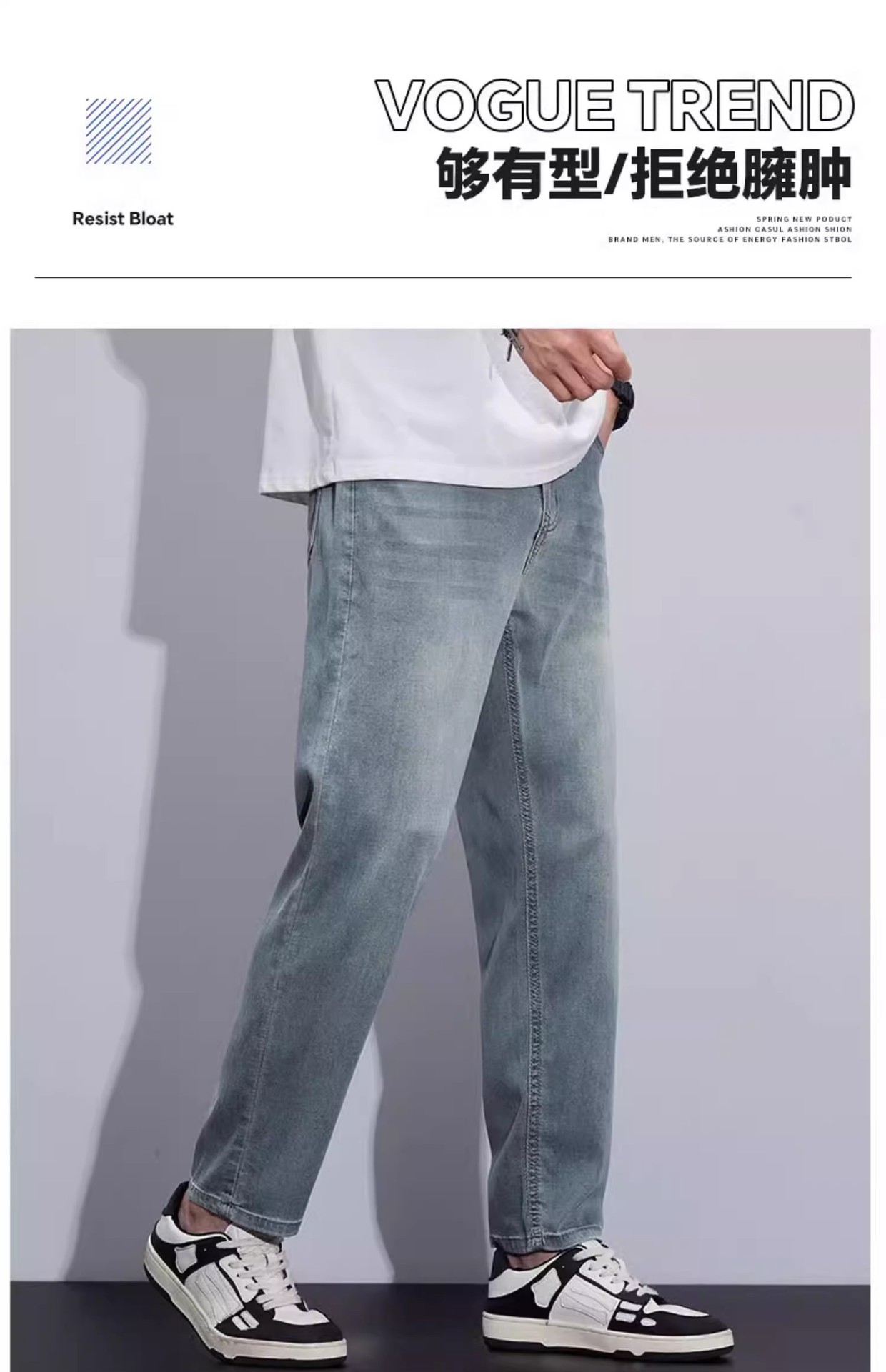 아이스 실크 청바지 남성용 아메리칸 스타일 스트레이트 느슨한 여름 얇은 텐셀 캐주얼 긴 바지 남자 2024 새로운 유행스토어 가기