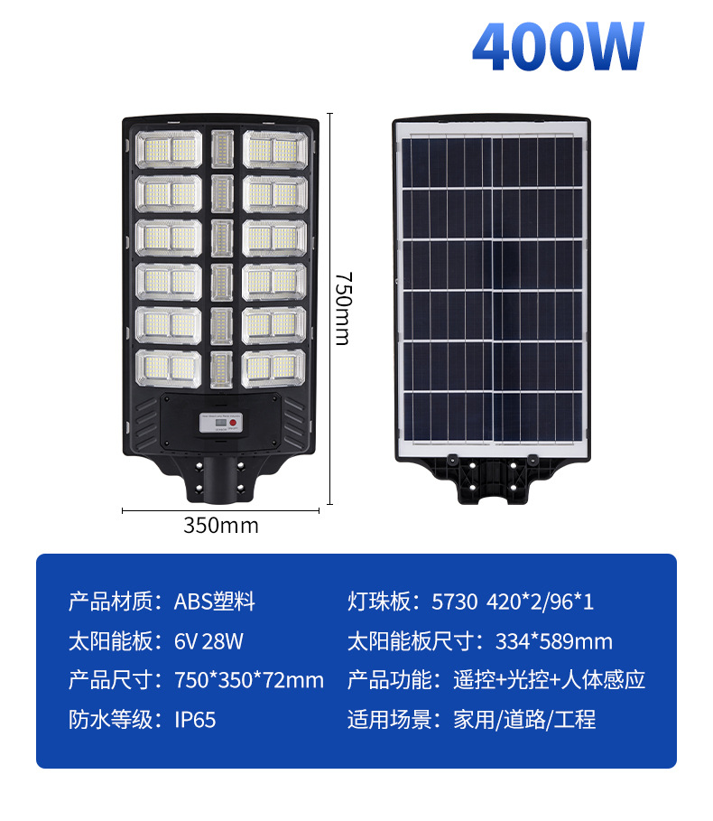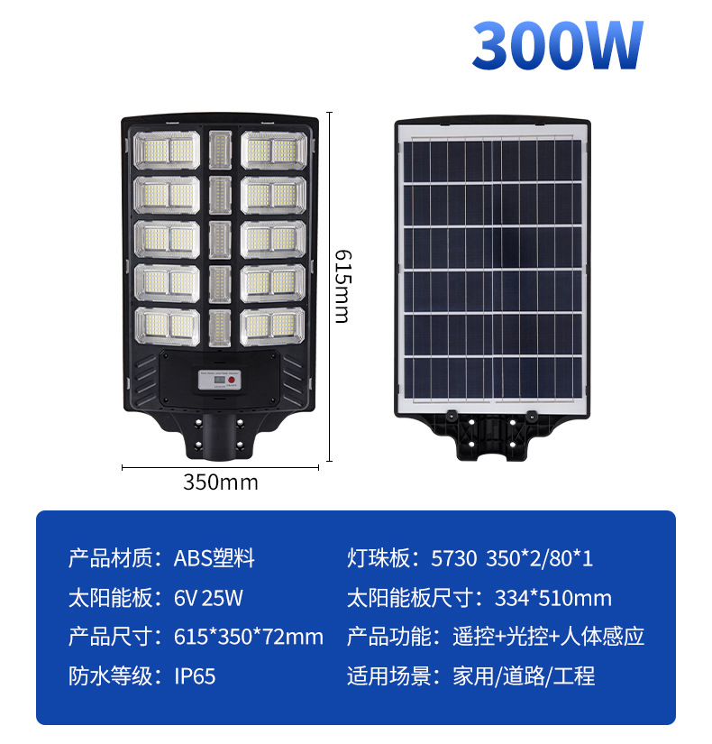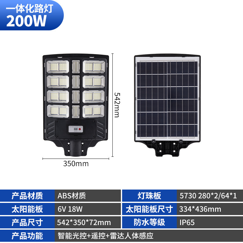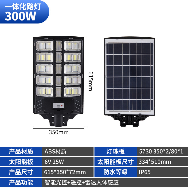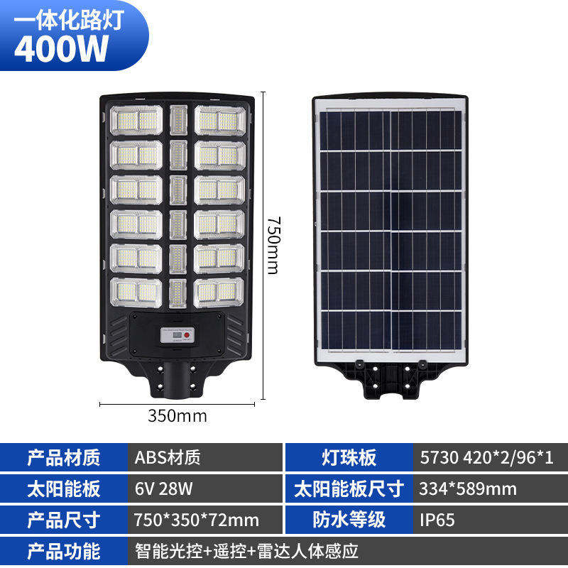 태양 안뜰 야외 라이트 레이더 유도 슈퍼 밝은 LED 높은 전원 방수 조명 통합 가로등