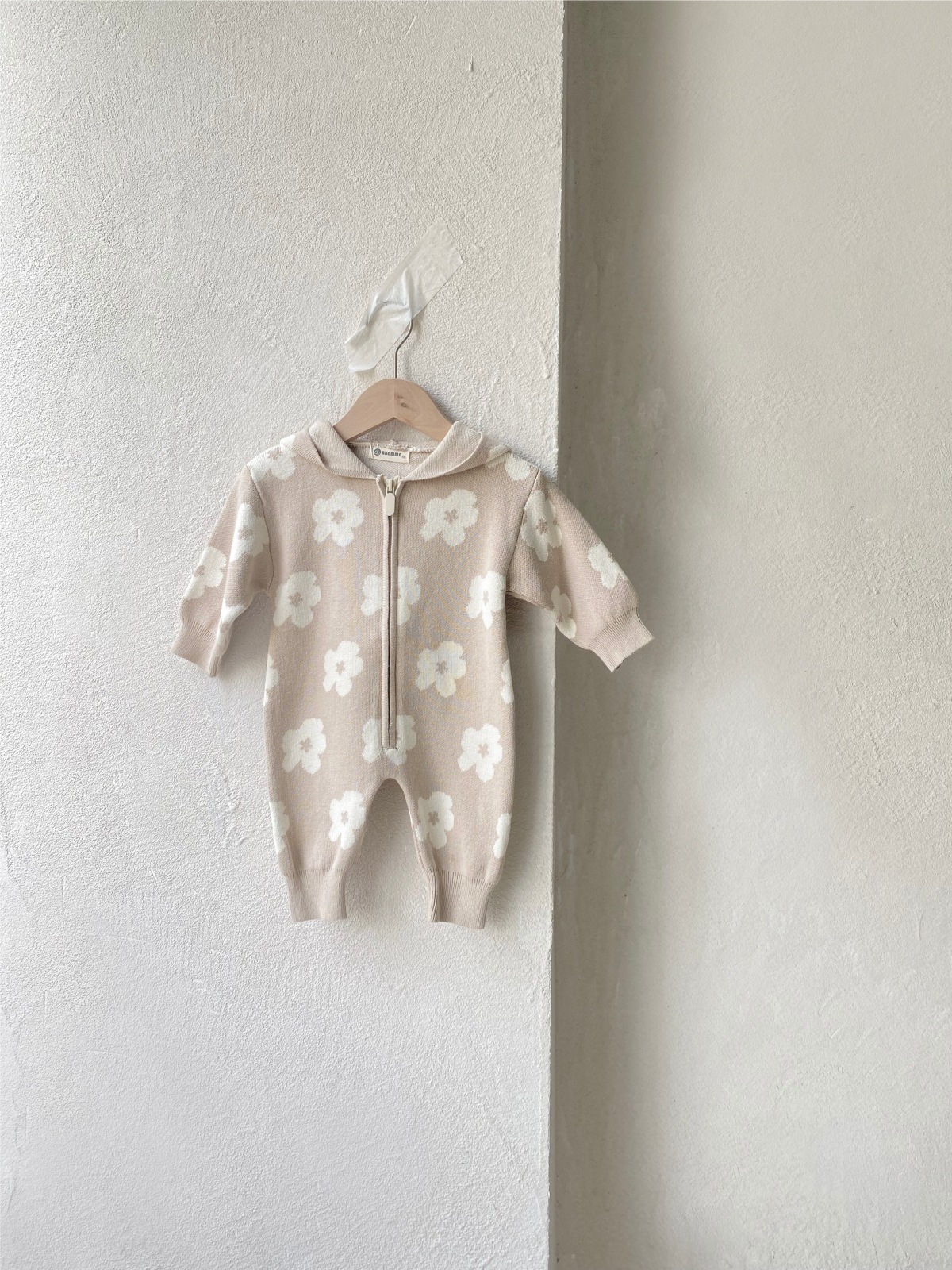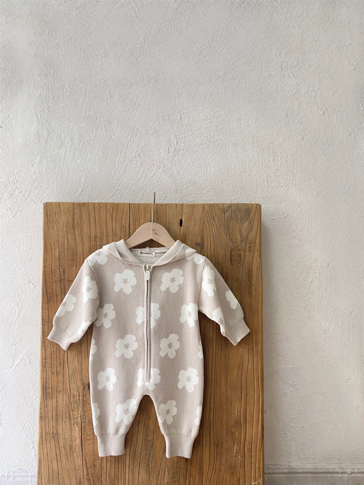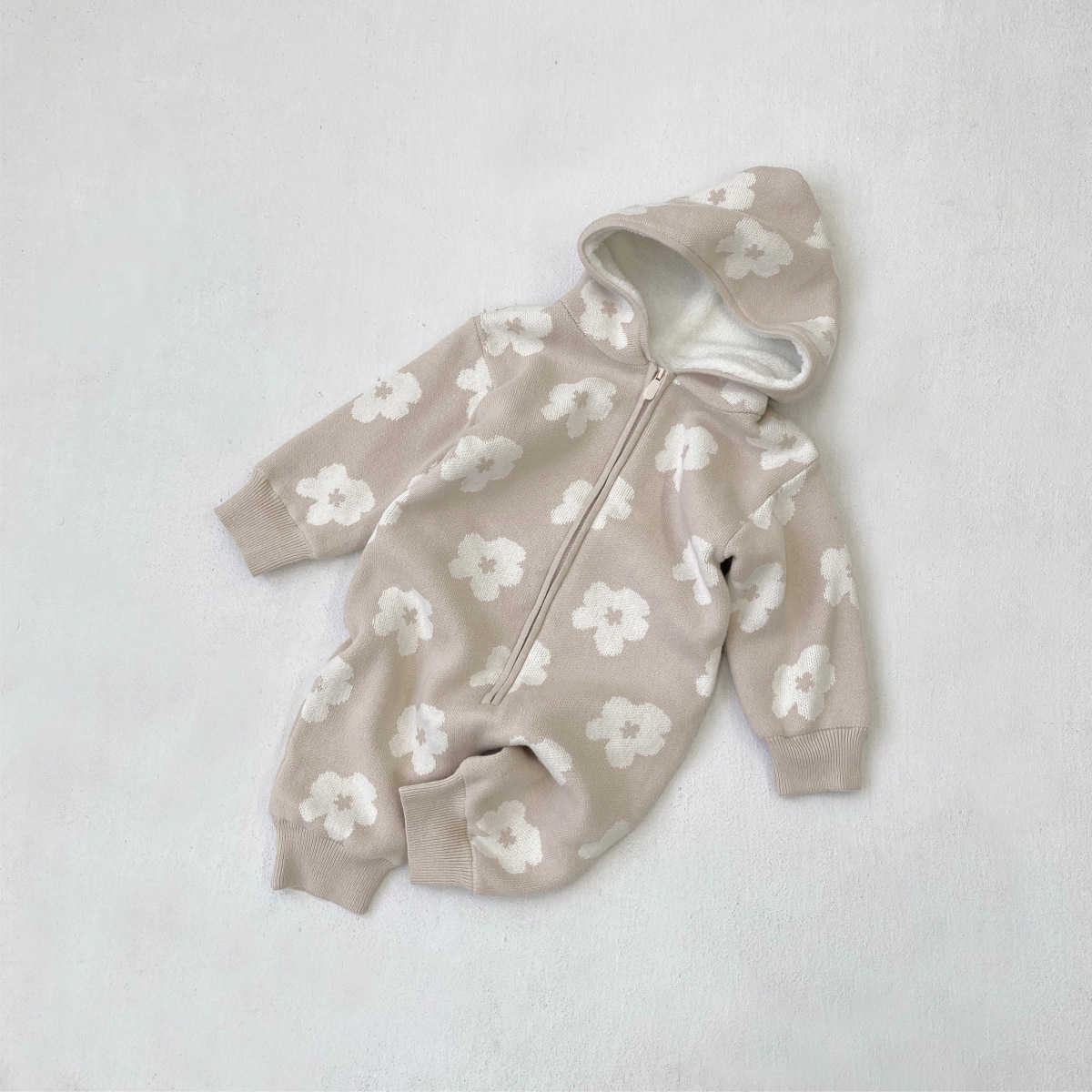 소년 소녀를위한 아기 가을과 겨울 스웨터 점프 수트 아기 꽃 지퍼 후드 긴 소매 긴 등반 가방 의류 니트 스웨터