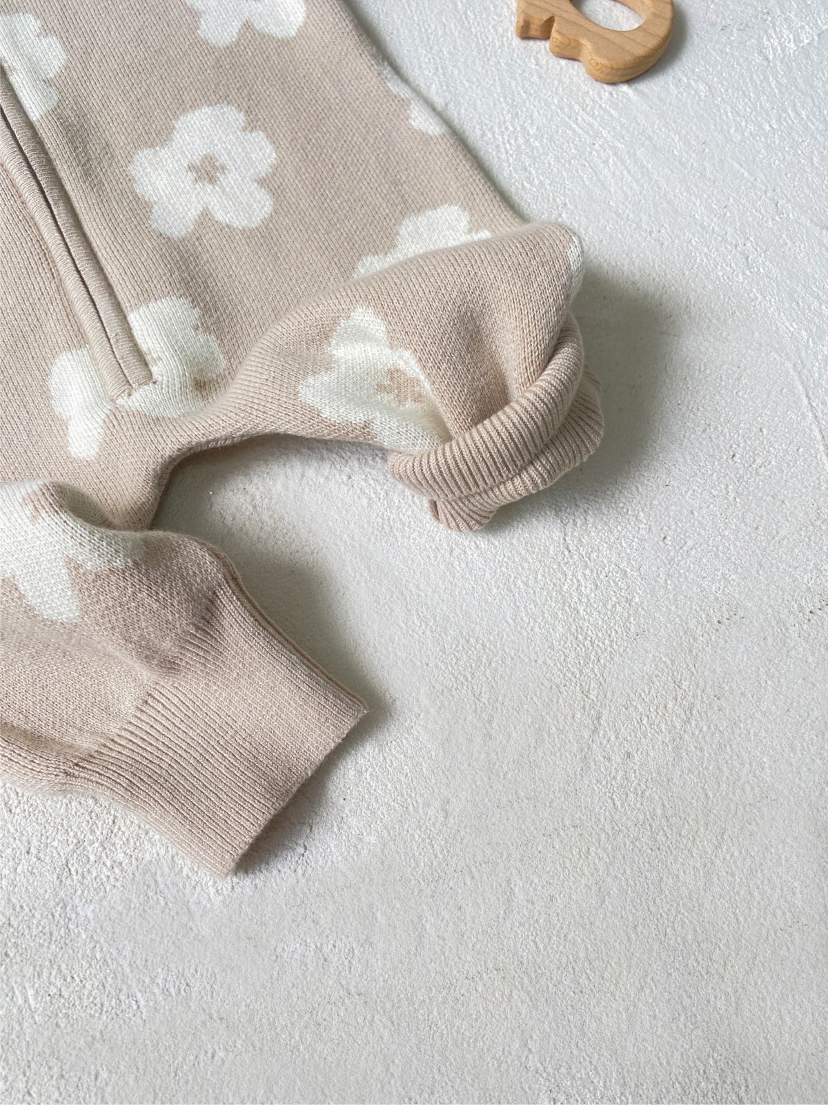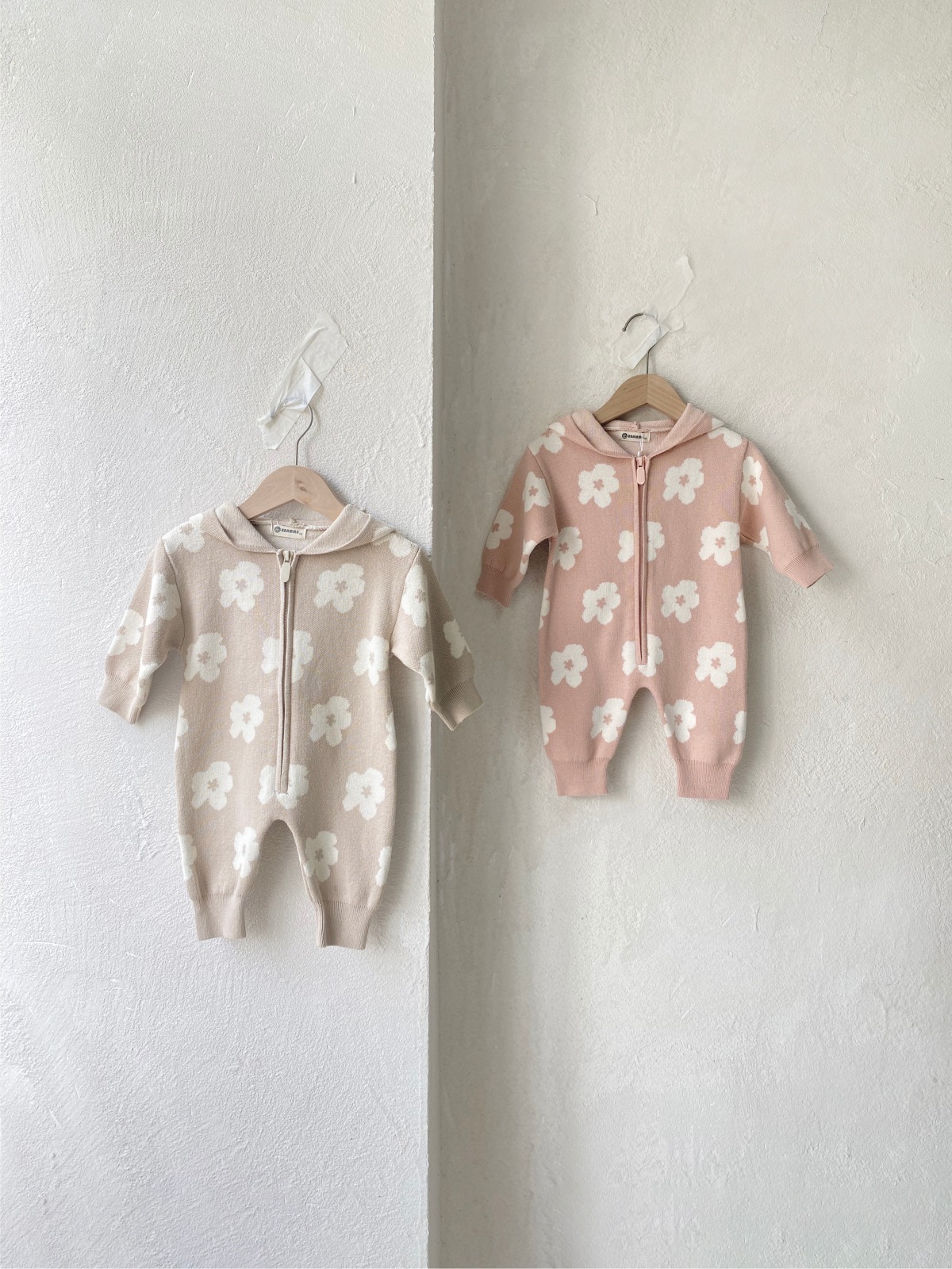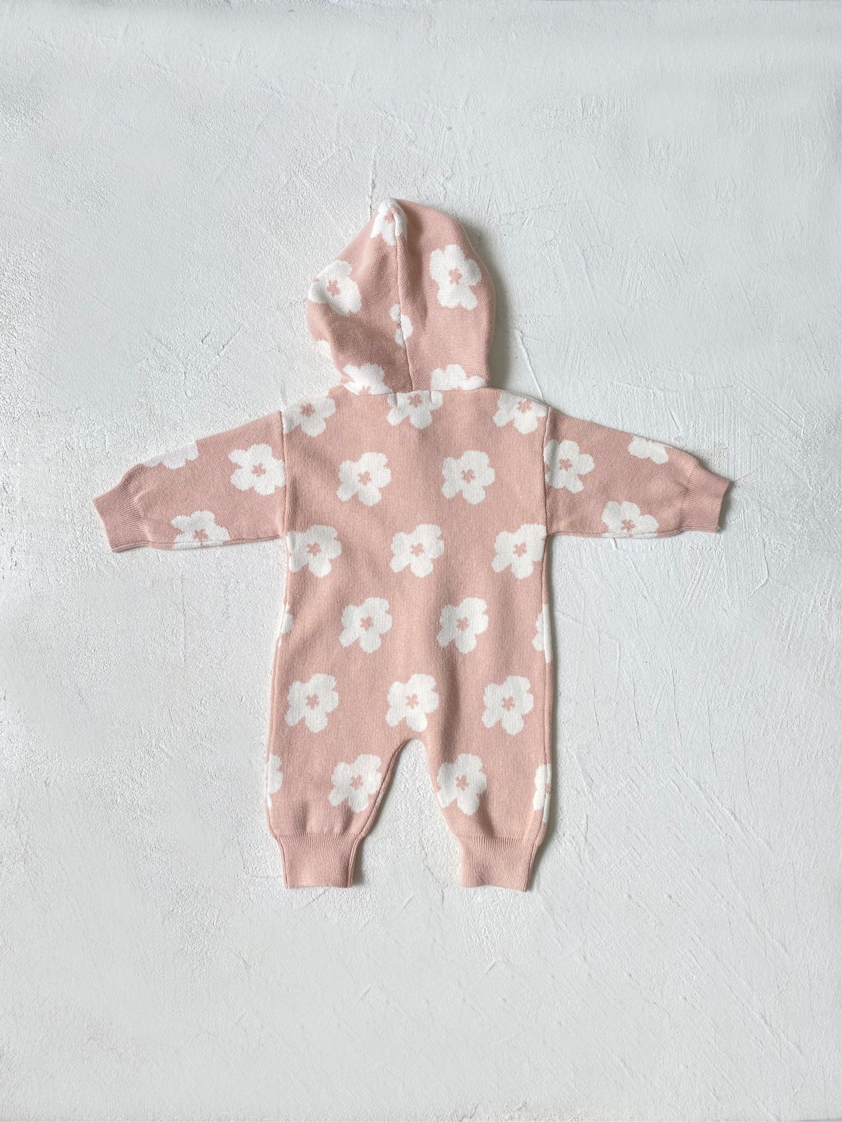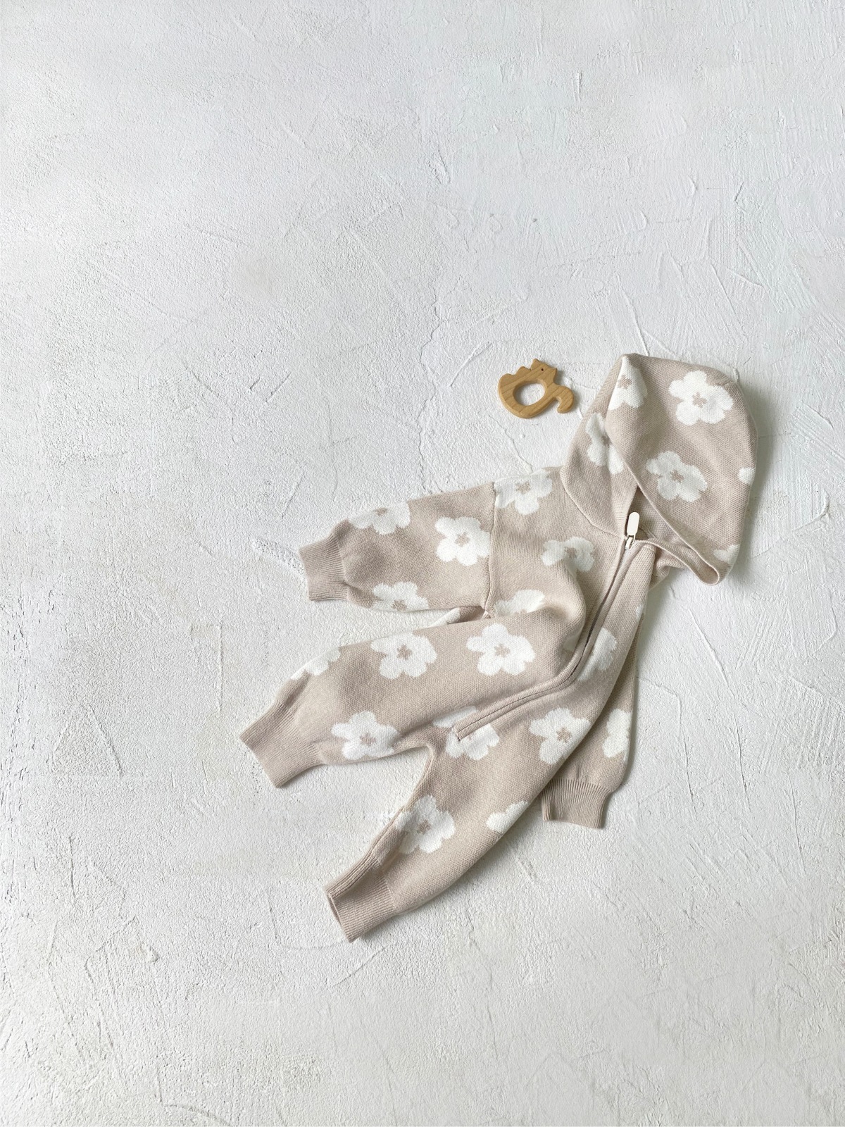 소년 소녀를위한 아기 가을과 겨울 스웨터 점프 수트 아기 꽃 지퍼 후드 긴 소매 긴 등반 가방 의류 니트 스웨터