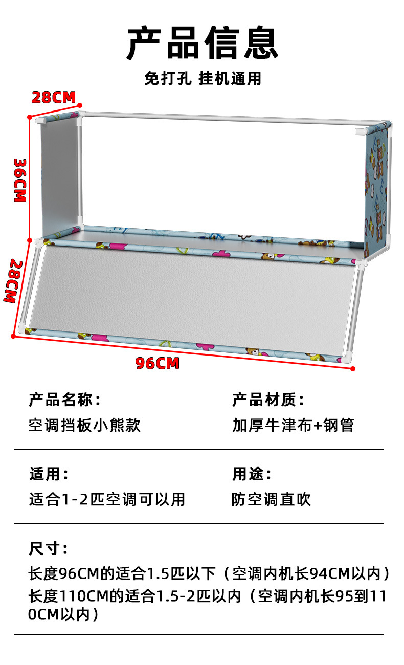 문 스타일 벽걸이 형 확장 및 안티 다이렉트 블로잉 유니버설을위한 침실 에어컨 앞 유리