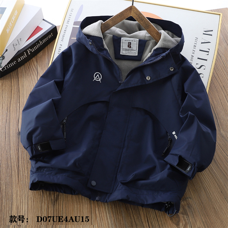 아동 코트 가을, 겨울 벨벳 두꺼운 후드 더블 레이어 카디건 소년용 단색 아웃도어 재킷 청소년용스토어 가기