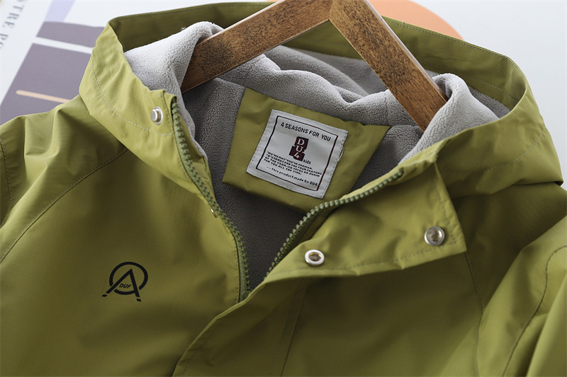 아동 코트 가을, 겨울 벨벳 두꺼운 후드 더블 레이어 카디건 소년용 단색 아웃도어 재킷 청소년용