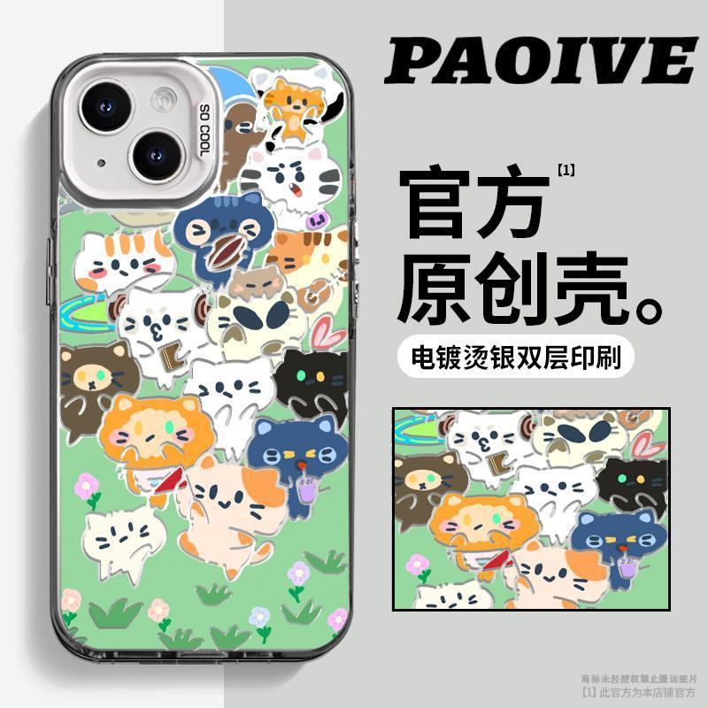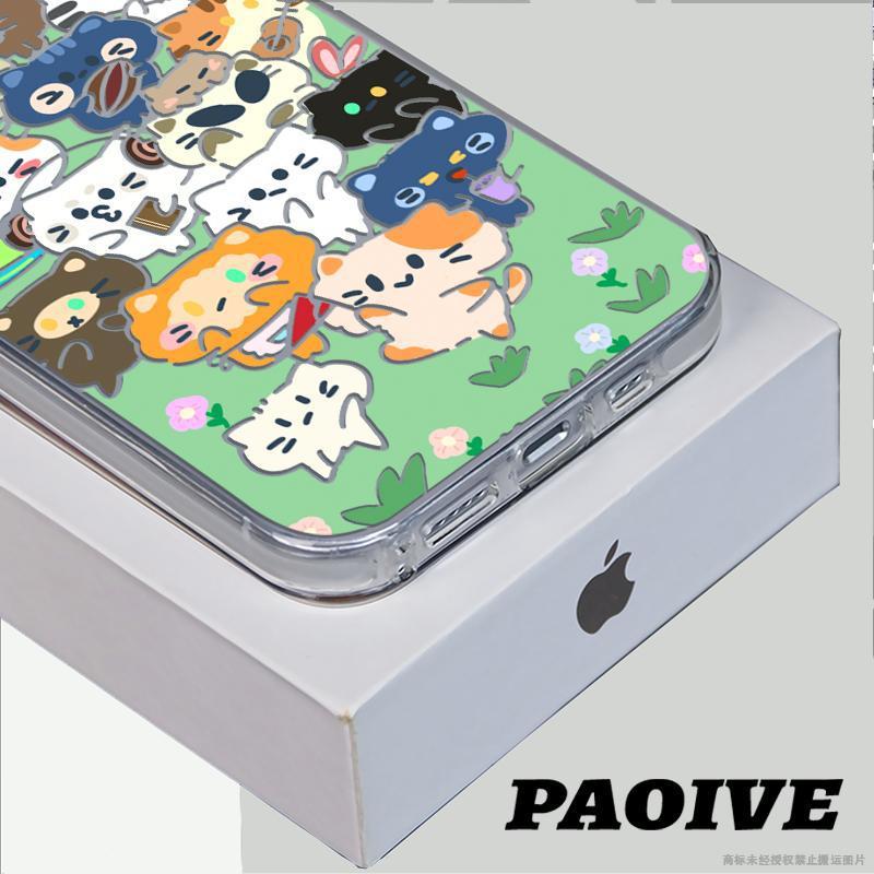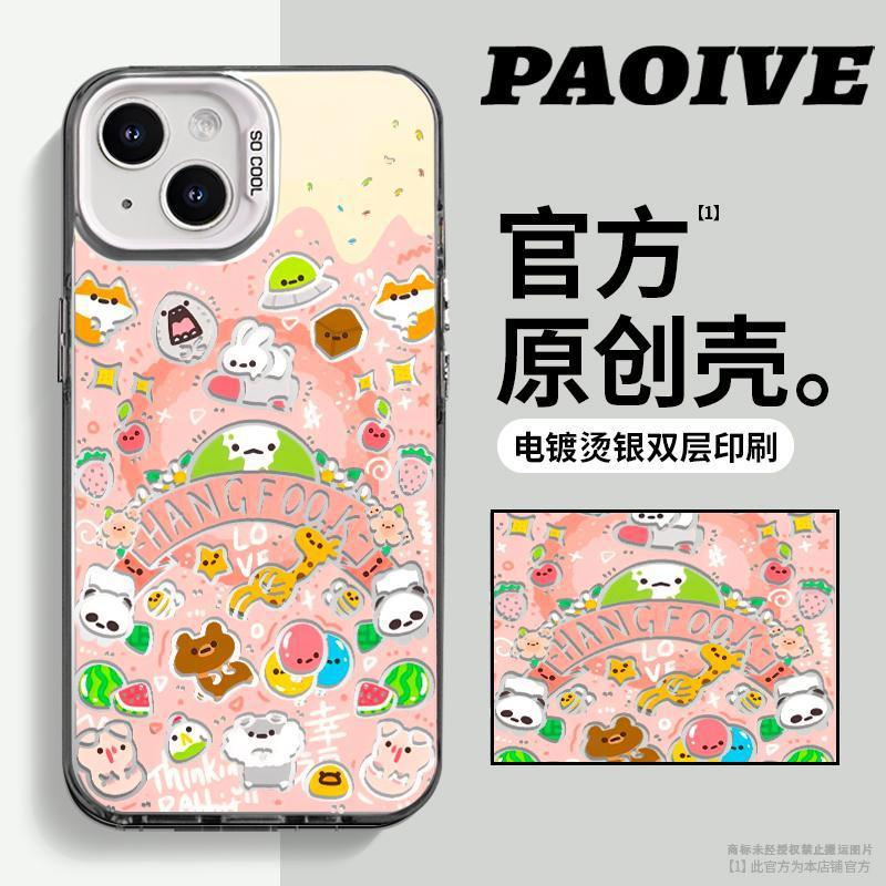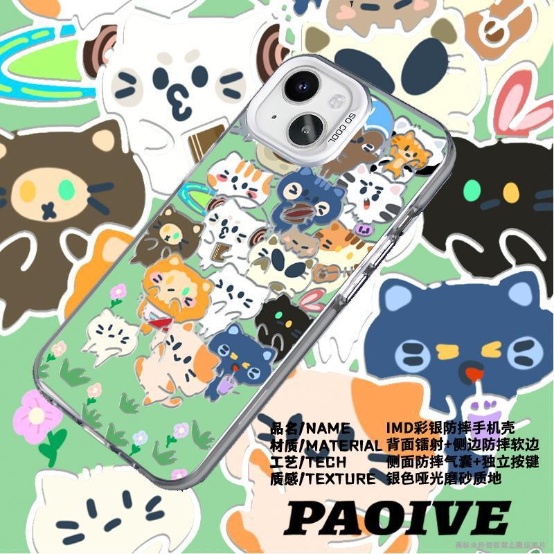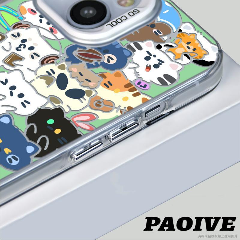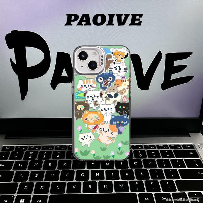 애플 15Promax 컬러 실버 14/13/12 새로운 간단한 동물 회의 컬러 실버 드롭 방지 휴대 전화 쉘스토어 가기