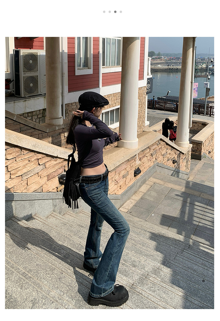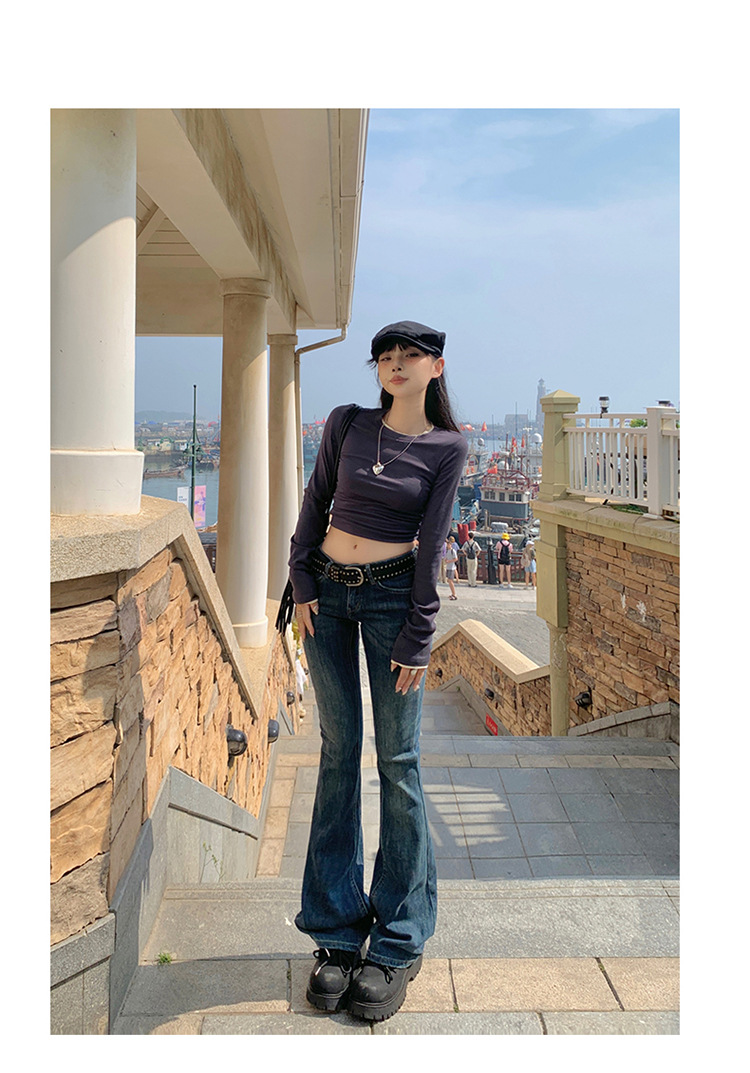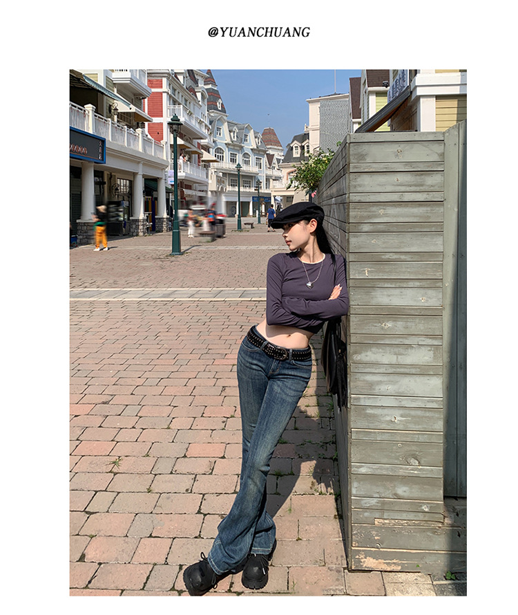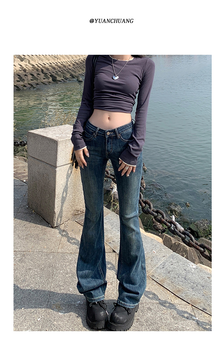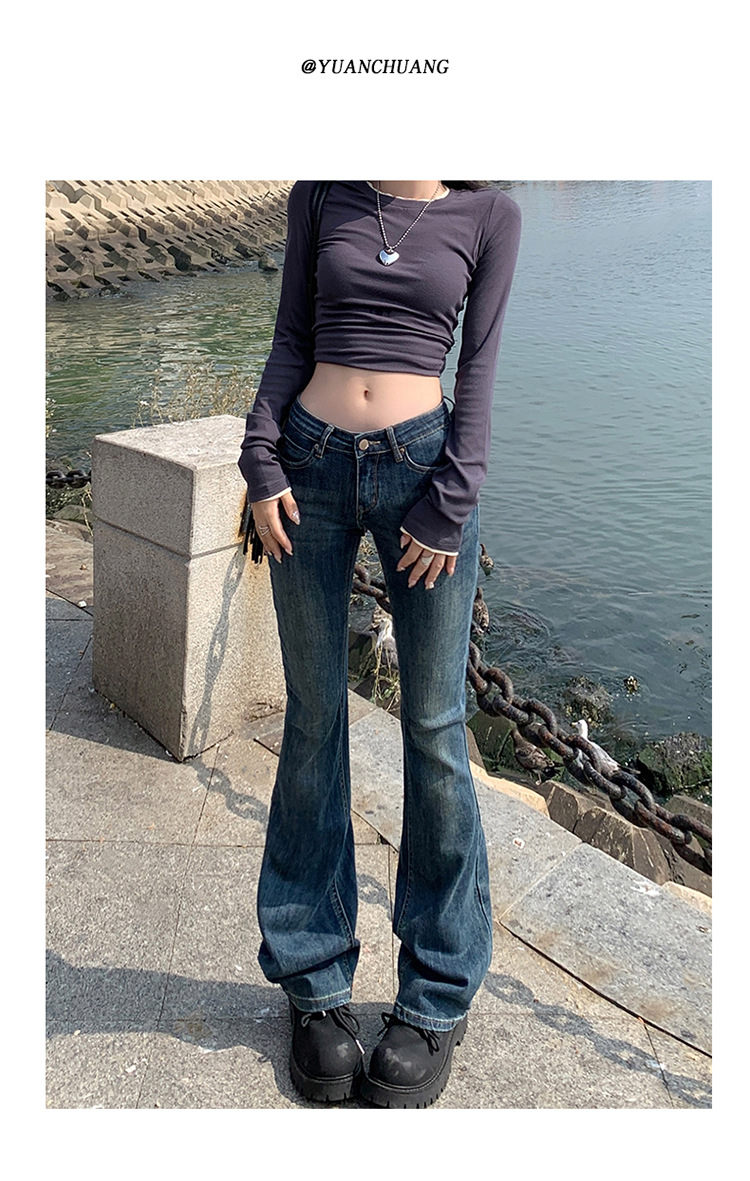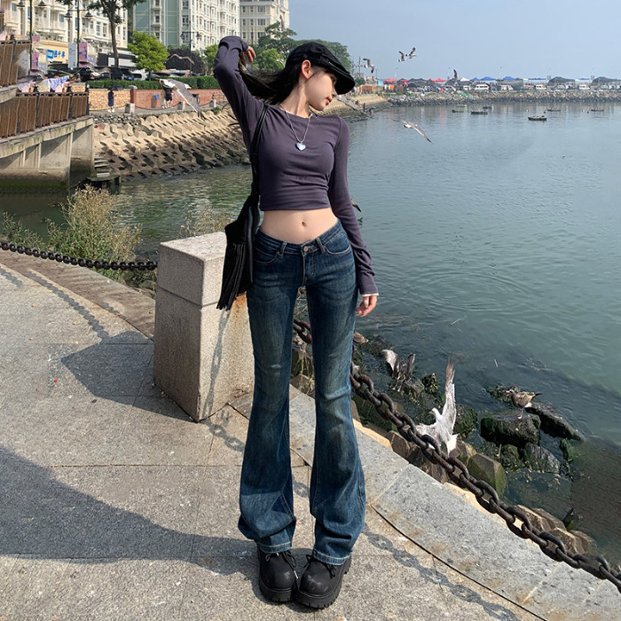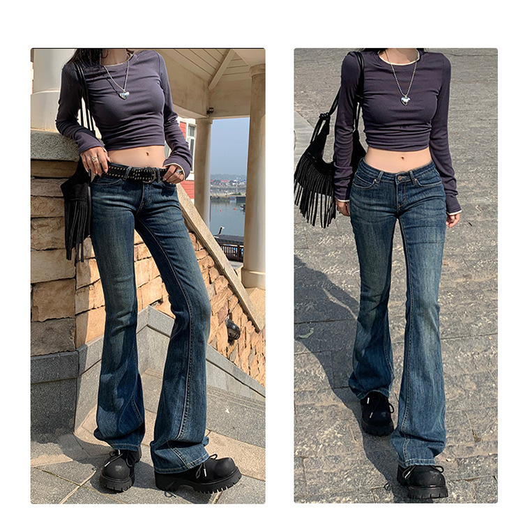 미국 스타일 복고풍 오래 된 낮은 허리 뜨거운 소녀 스트레치 슬림 핏 슬리밍 올 매치 혼 데님 도핑 바지