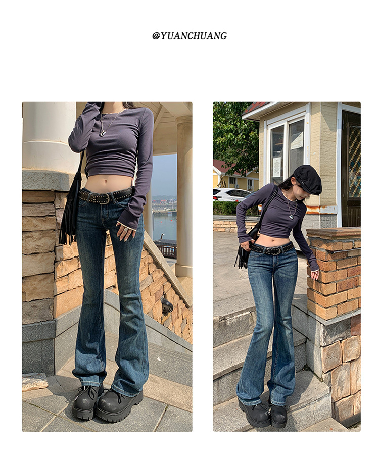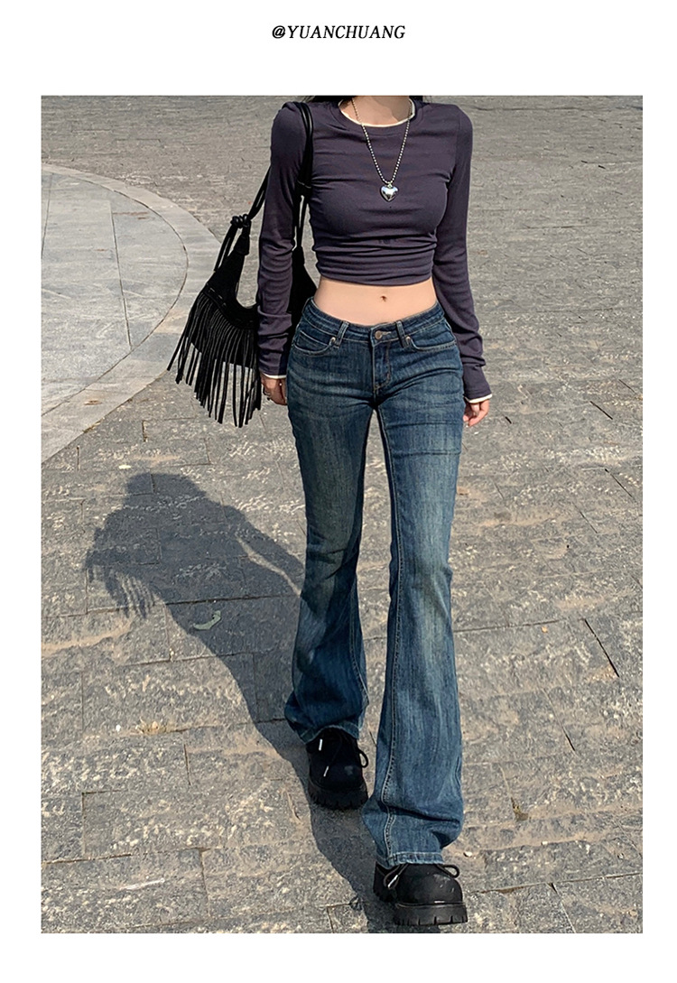미국 스타일 복고풍 오래 된 낮은 허리 뜨거운 소녀 스트레치 슬림 핏 슬리밍 올 매치 혼 데님 도핑 바지스토어 가기