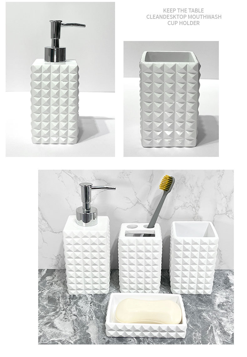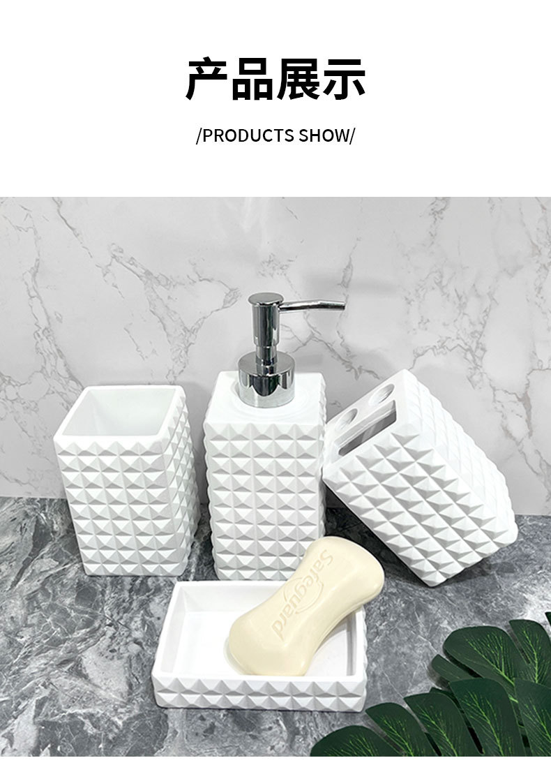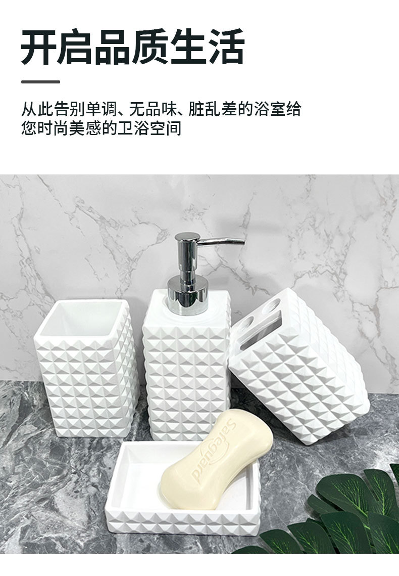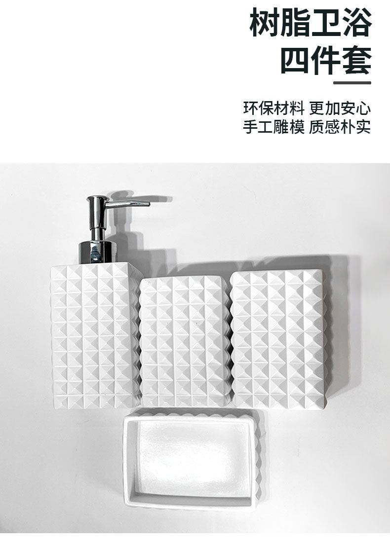 현대 수지 욕실 용품 순수한 흰색 4 조각 욕실 모델 룸 장식 호텔 욕실 세척 세트