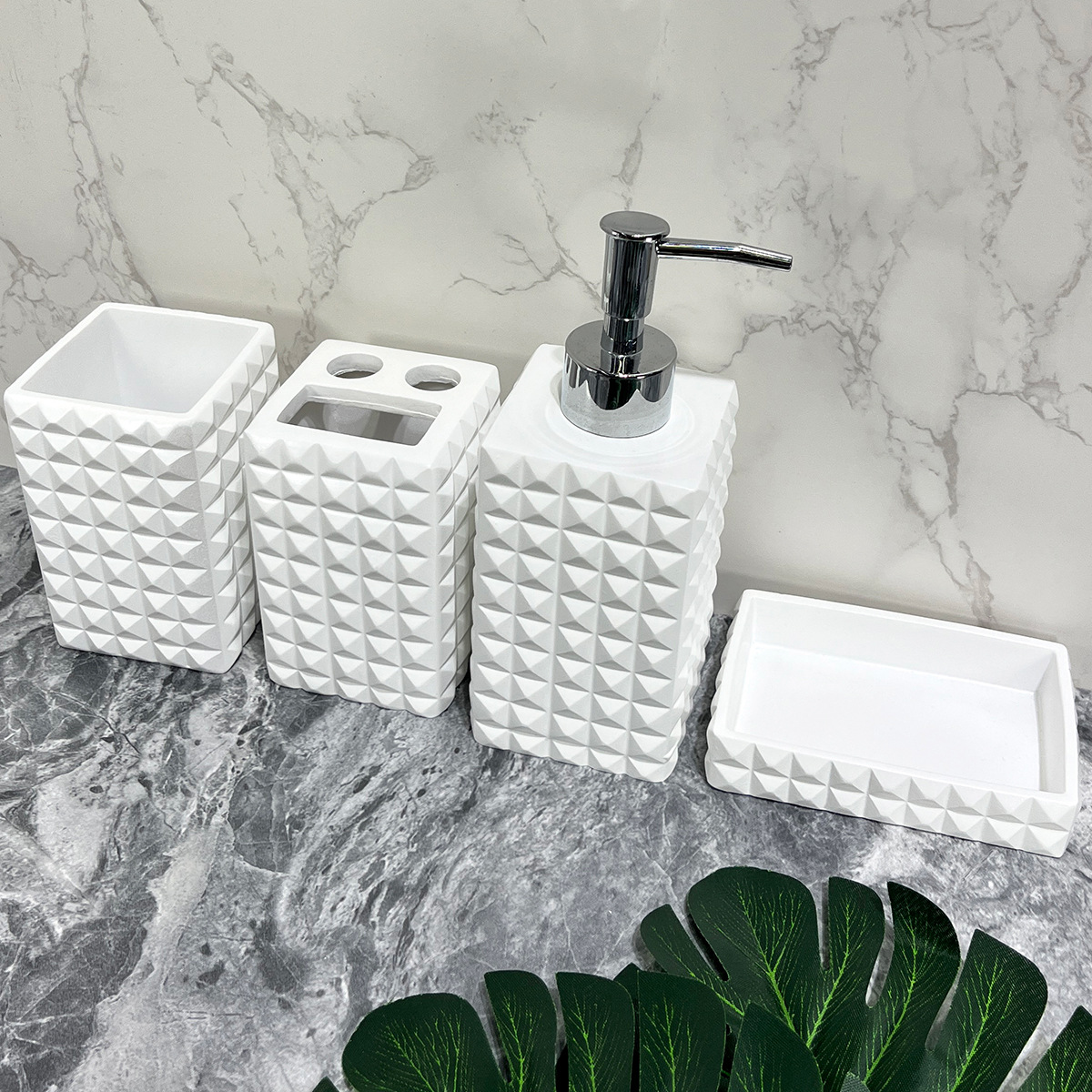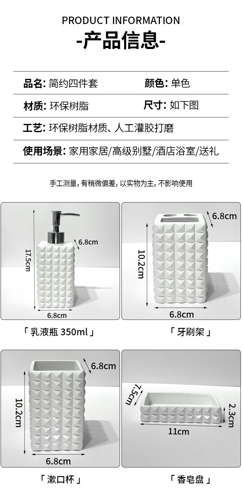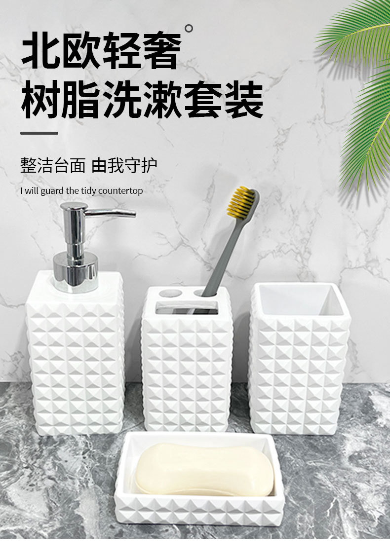 현대 수지 욕실 용품 순수한 흰색 4 조각 욕실 모델 룸 장식 호텔 욕실 세척 세트