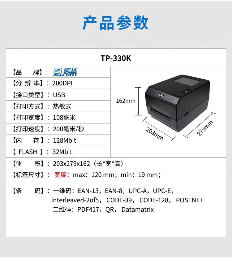 Shida TP-330K 슈퍼 소매 2 차원 코드 전자 얼굴 단일 프린터 열 라벨 물류 고속