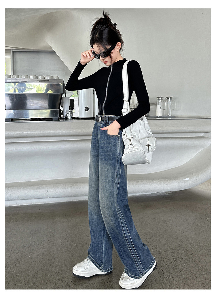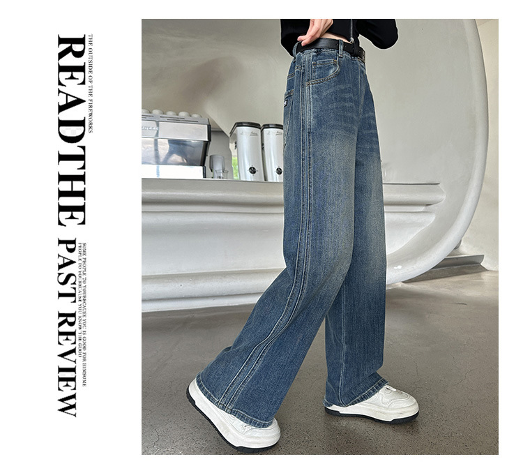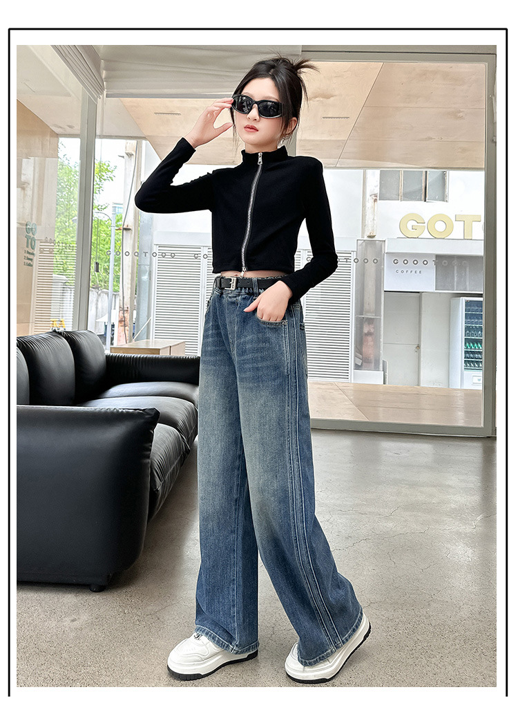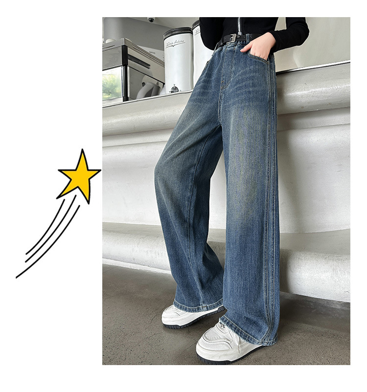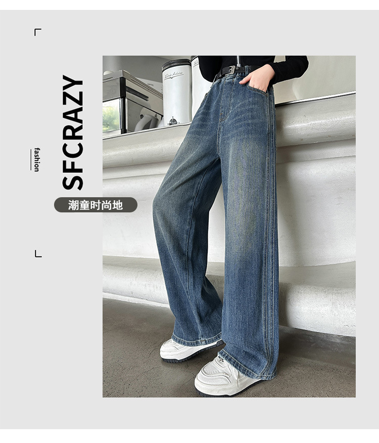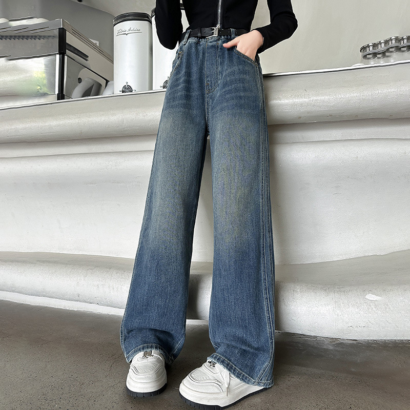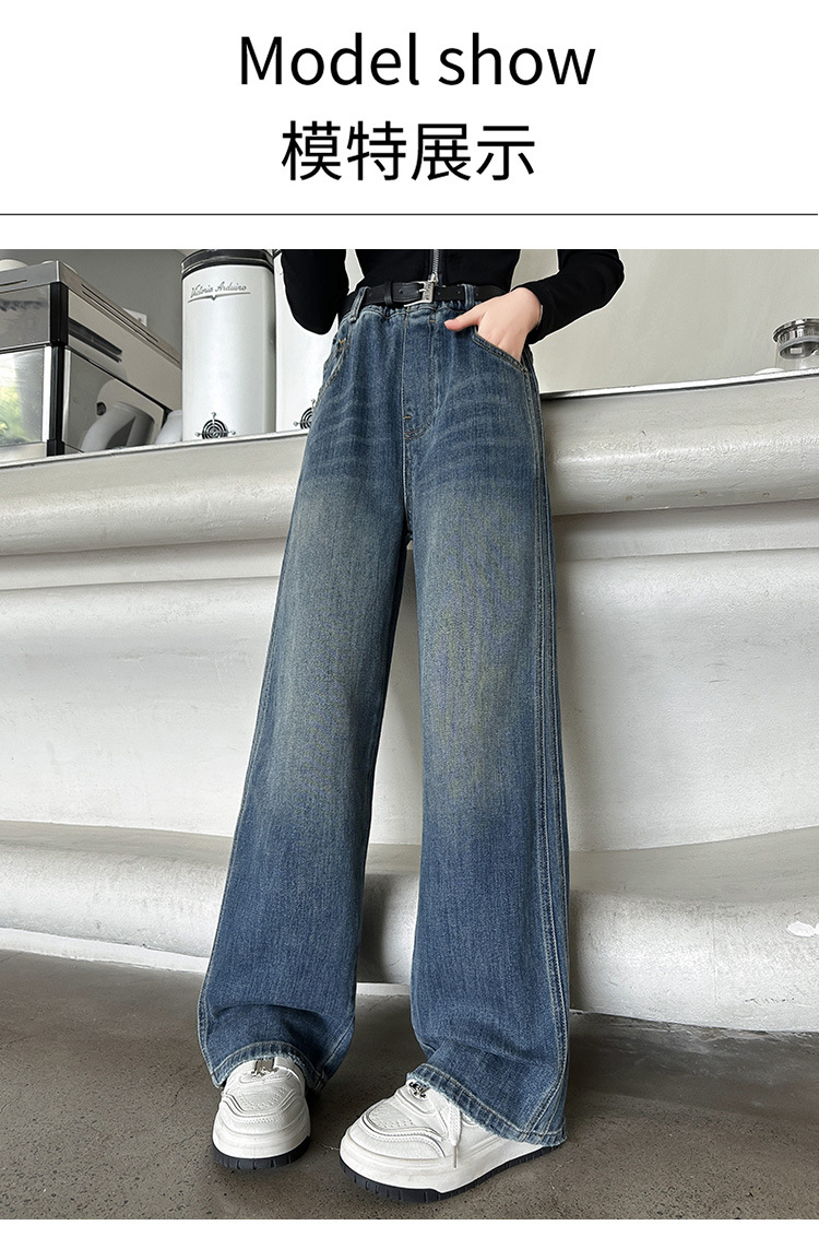 소녀 가을 바지 외부 착용 어린이 서양식 올매치 스트레이트 와이드 레그 바지 가을 큰 어린이 느슨한 청바지 봄과 가을스토어 가기