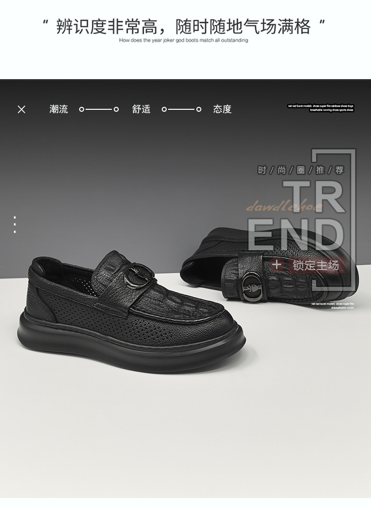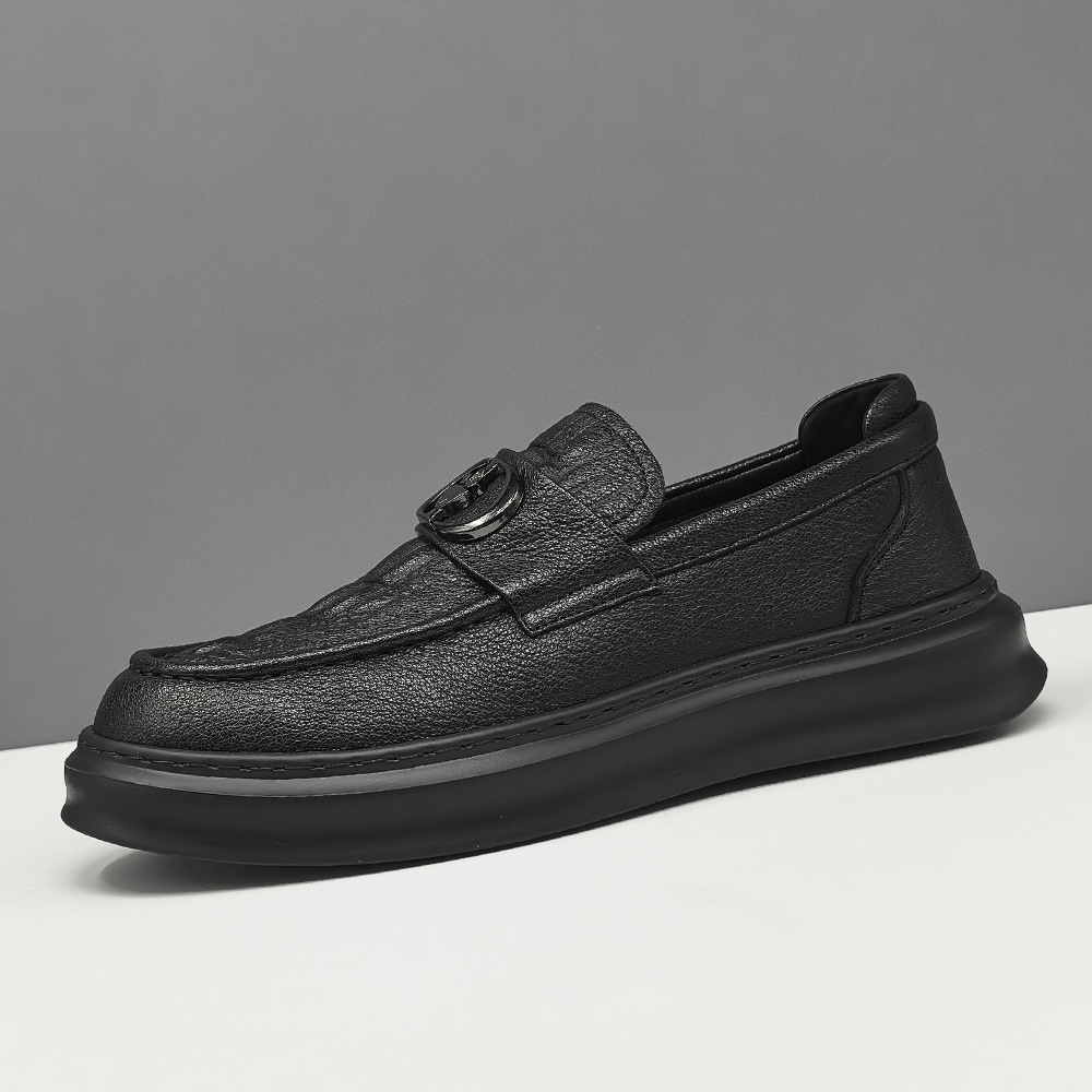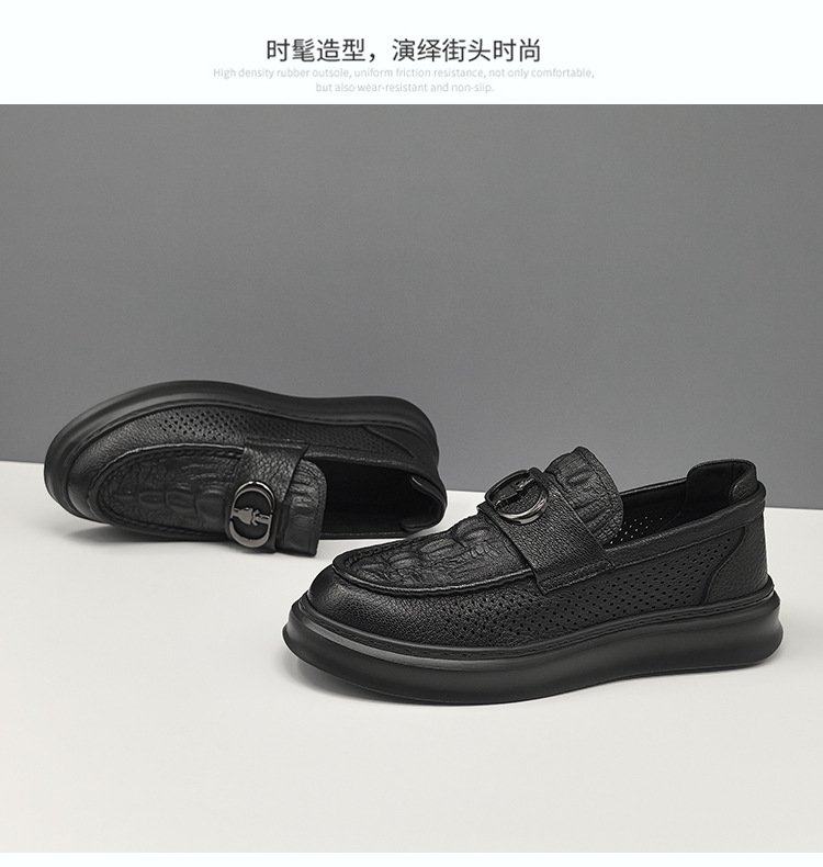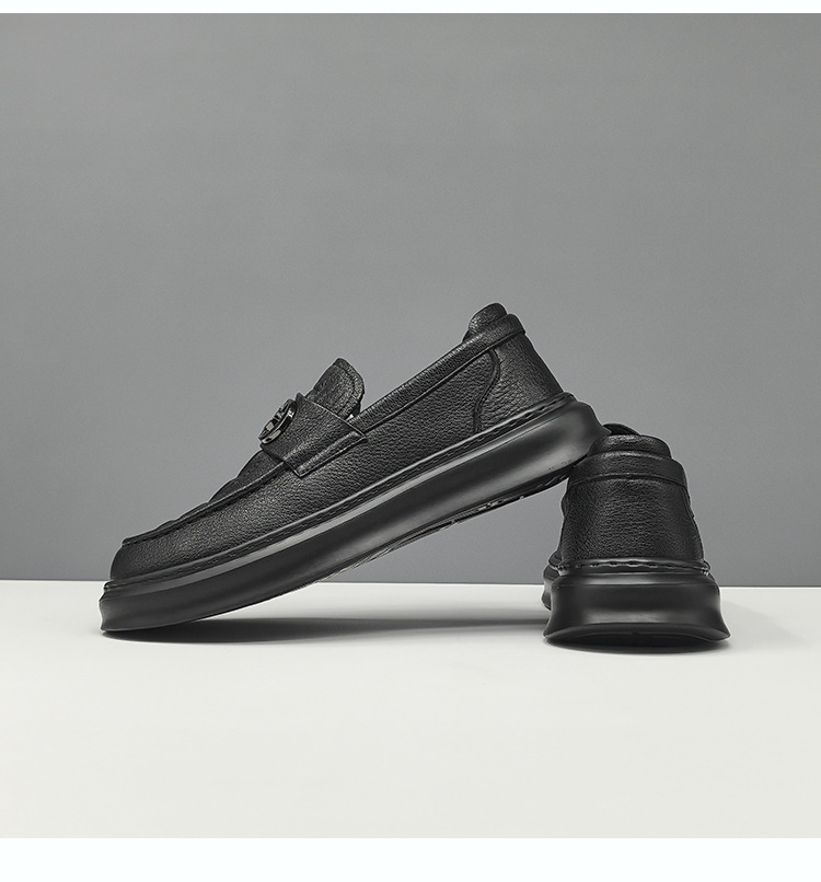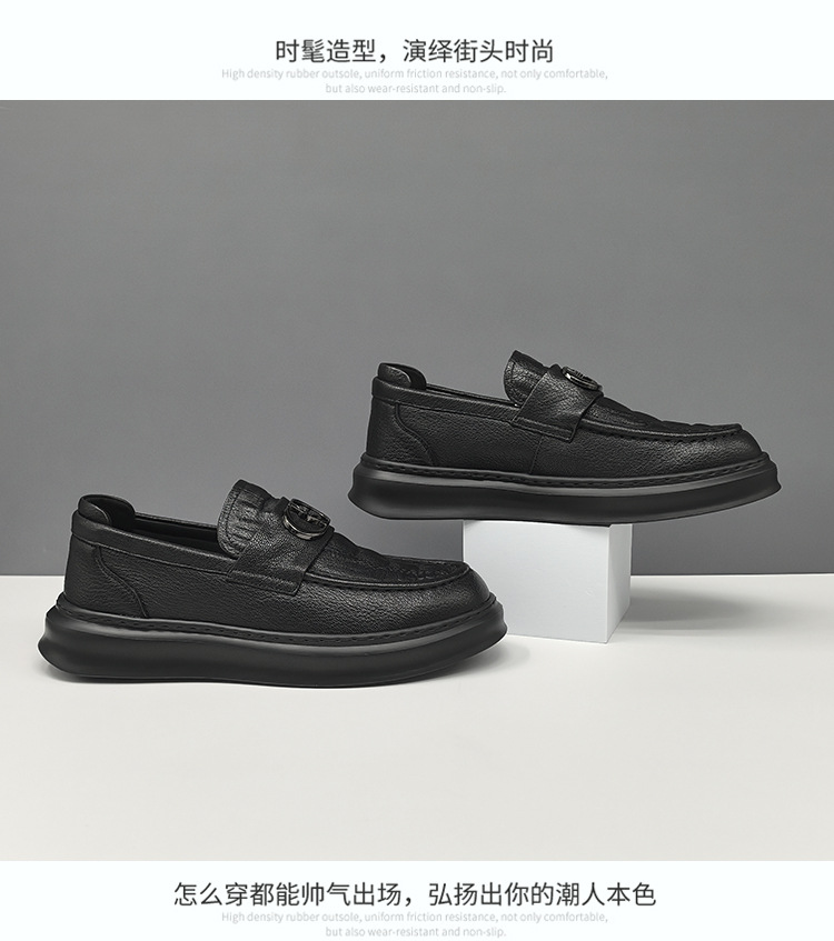 남자 올 매치 블랙 캐주얼 신발 통기성 두꺼운 단독 싱글 신발 유럽 역 유행 신발 가죽 캐주얼 신발스토어 가기