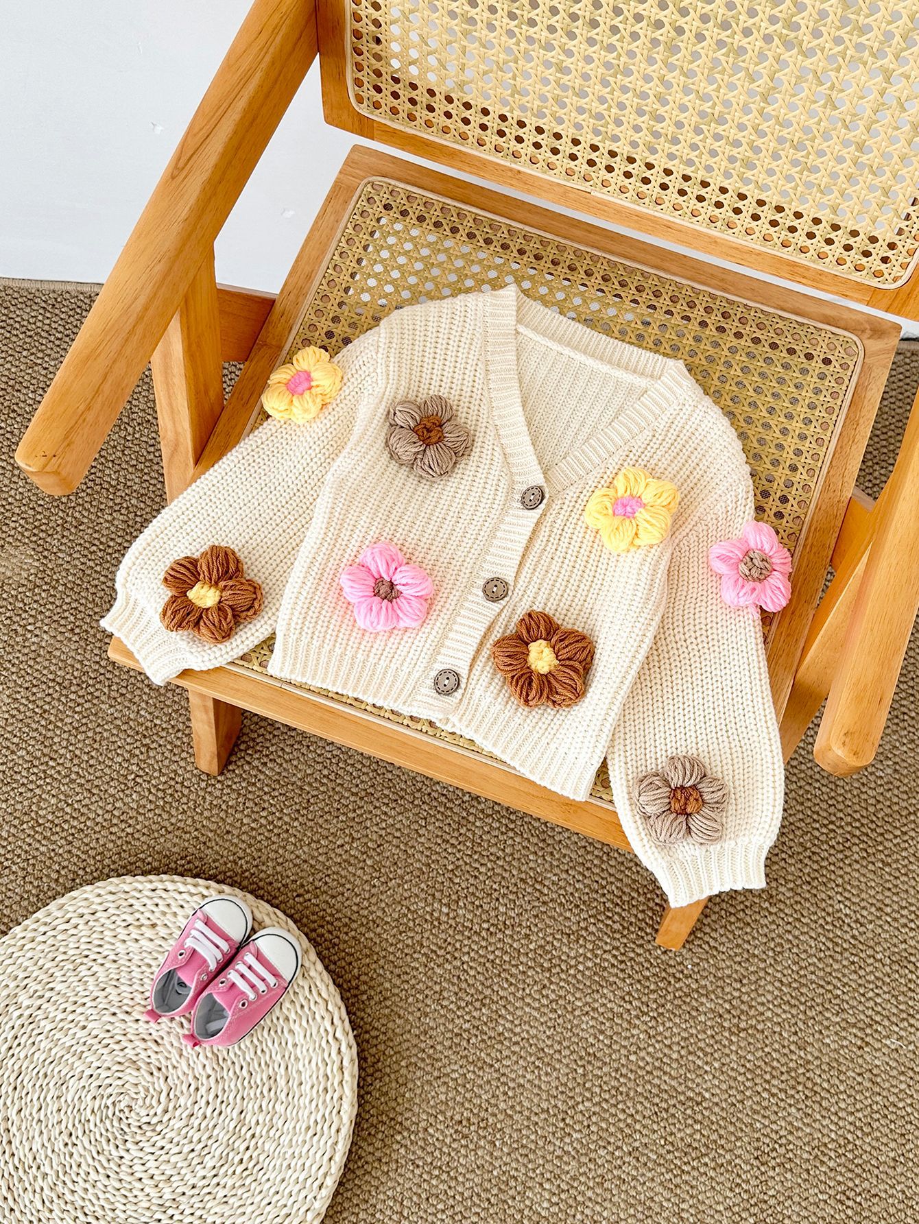 가을과 겨울 아기 소녀 대학 스타일 꽃 스웨터 카디건 크로스 국경 어린이 100 면 스웨터 코트 한국판스토어 가기