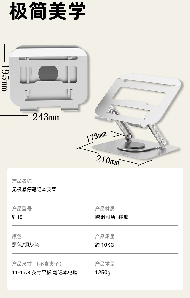 • [12-실버] 태블릿/노트북용 범용 + 풀메탈 + 360도 회전(중국 포장)