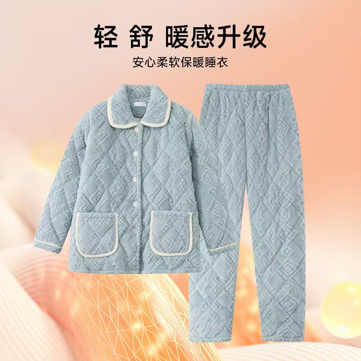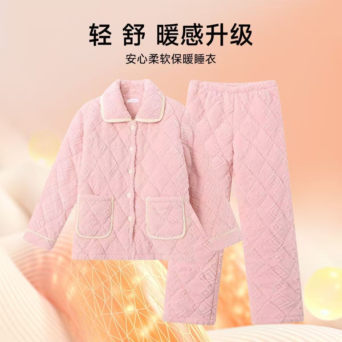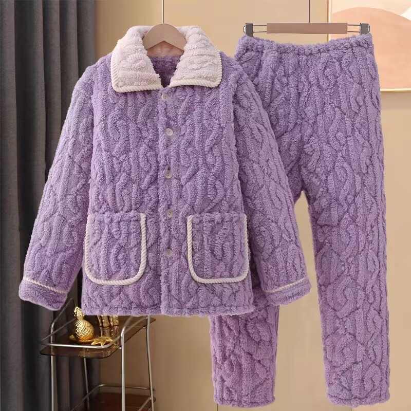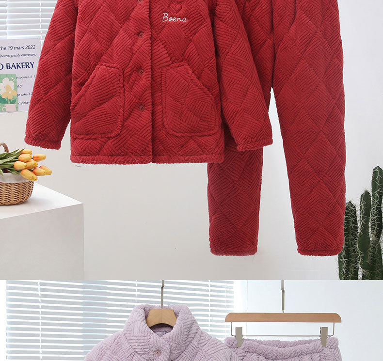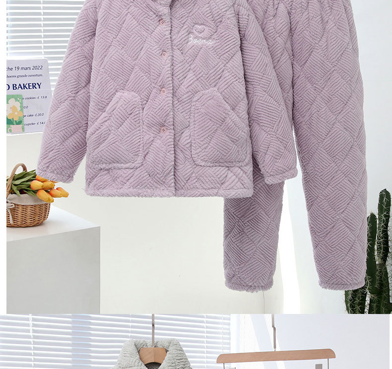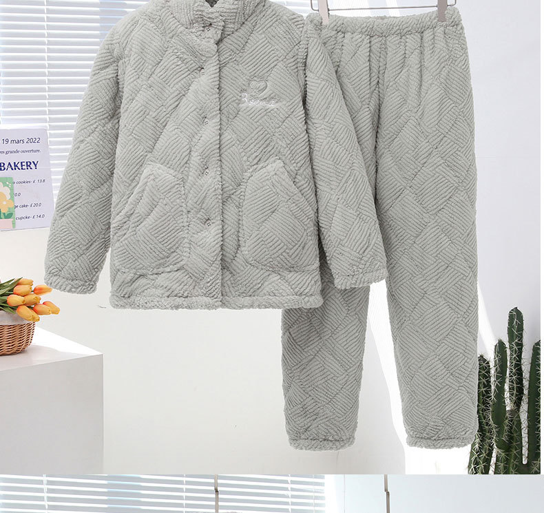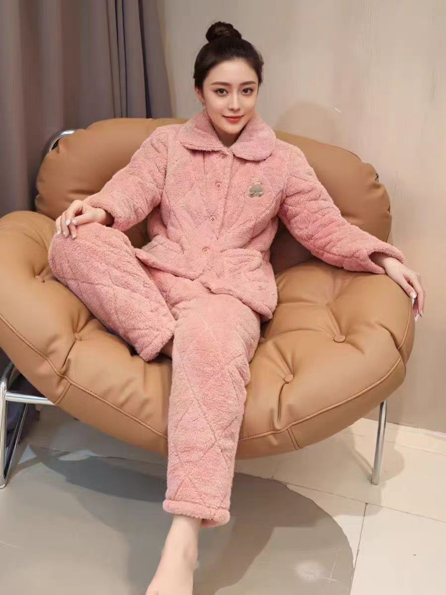 중국 스타일 중국 스타일 세로 칼라가 달린 3 층 퀼트 파자마 여성의 두꺼운 자수는 겨울 따뜻한 집 옷을 입을 수 세트스토어 가기