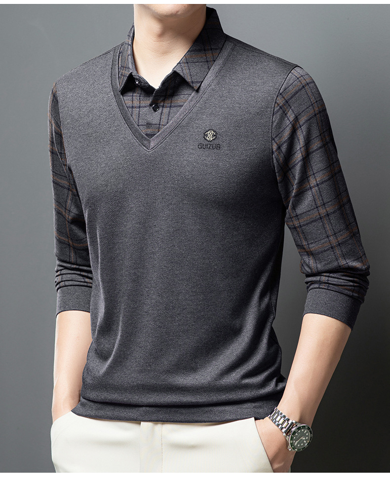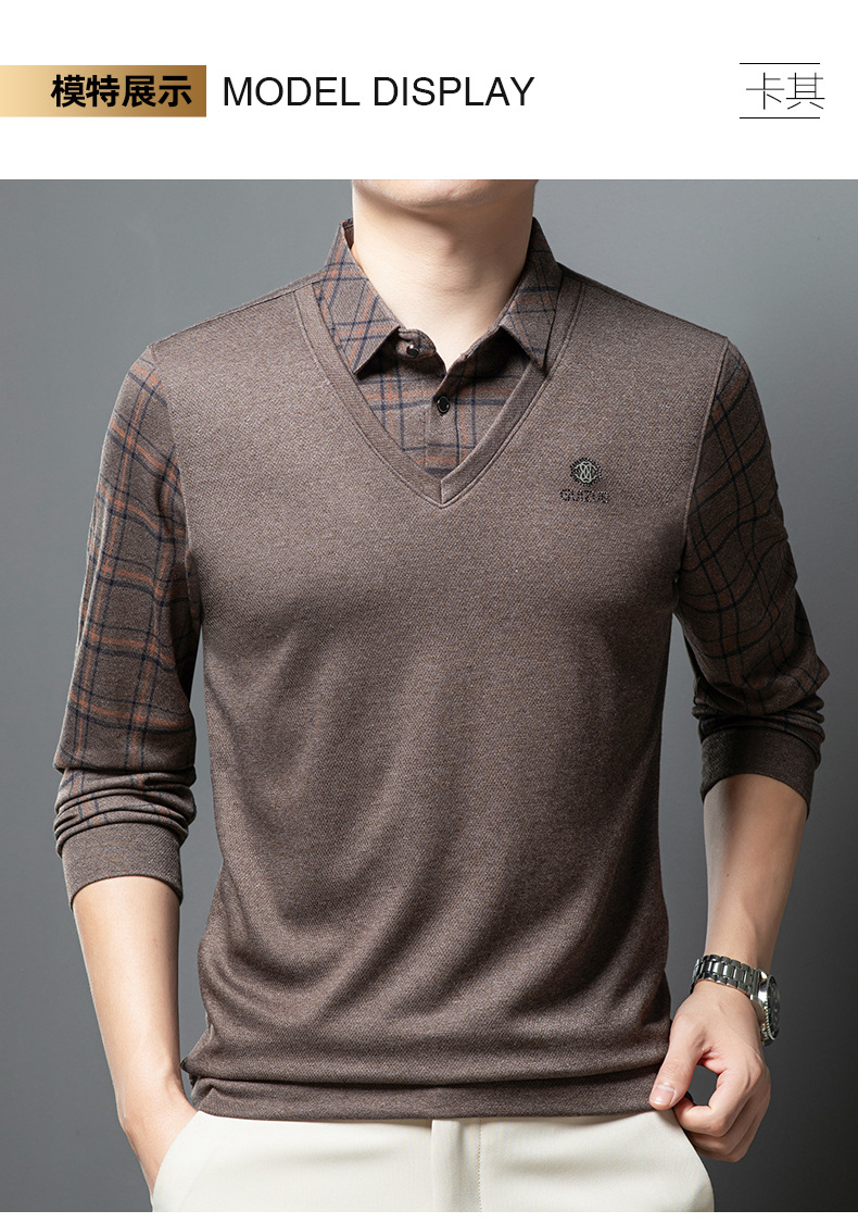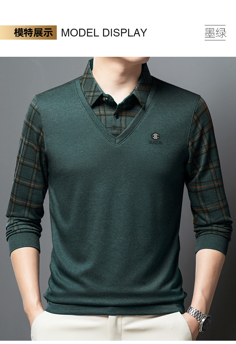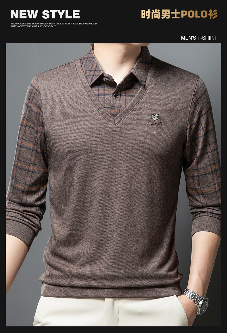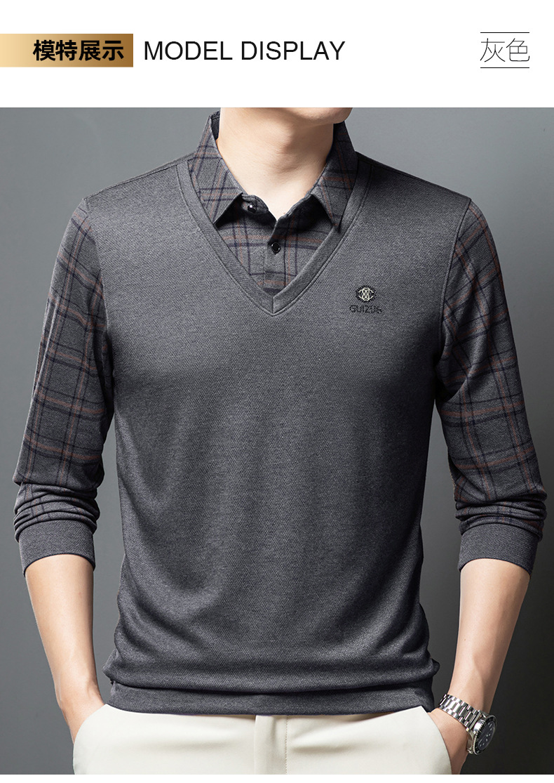 중년 남성 가짜 투피스 긴팔 폴로 셔츠 봄과 가을 셔츠 칼라 탑 티셔츠 캐주얼 아빠베이스 셔츠