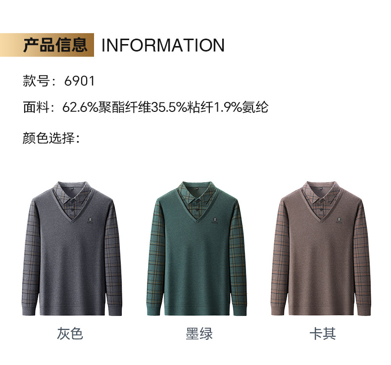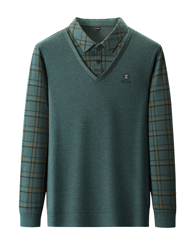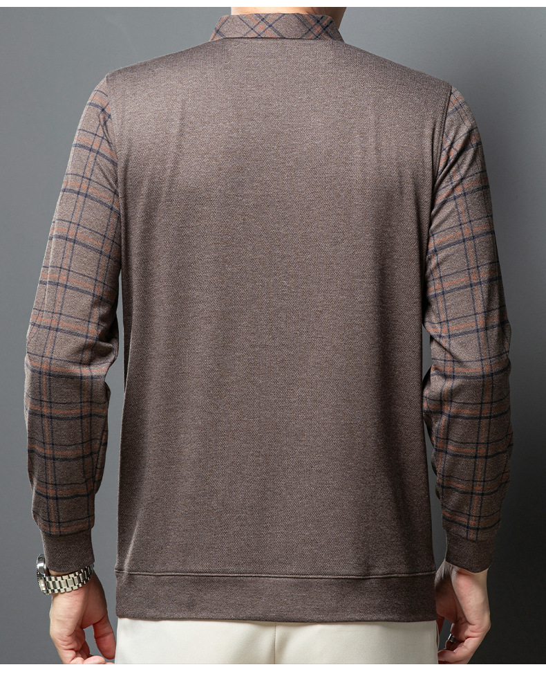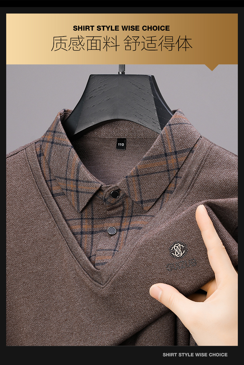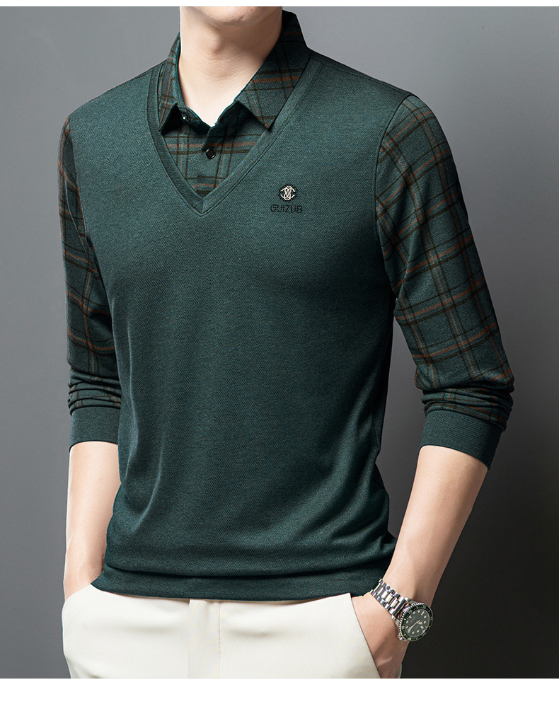 중년 남성 가짜 투피스 긴팔 폴로 셔츠 봄과 가을 셔츠 칼라 탑 티셔츠 캐주얼 아빠베이스 셔츠