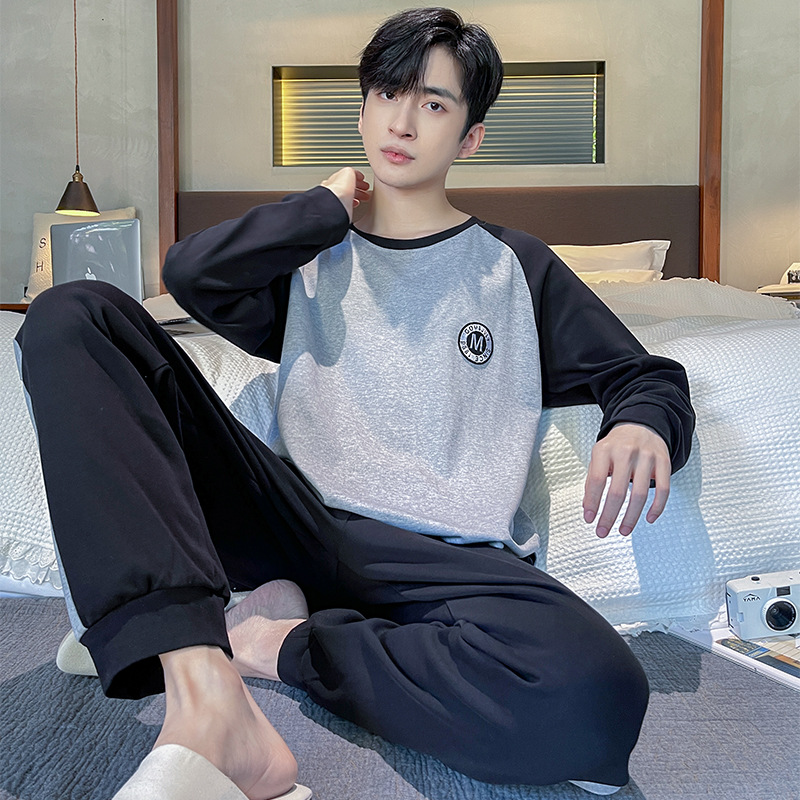 잠옷 남자의 봄과 가을 순면 긴 소매 십대 코튼 소년 사계절 플러스 사이즈 캐주얼 홈 의류 세트스토어 가기